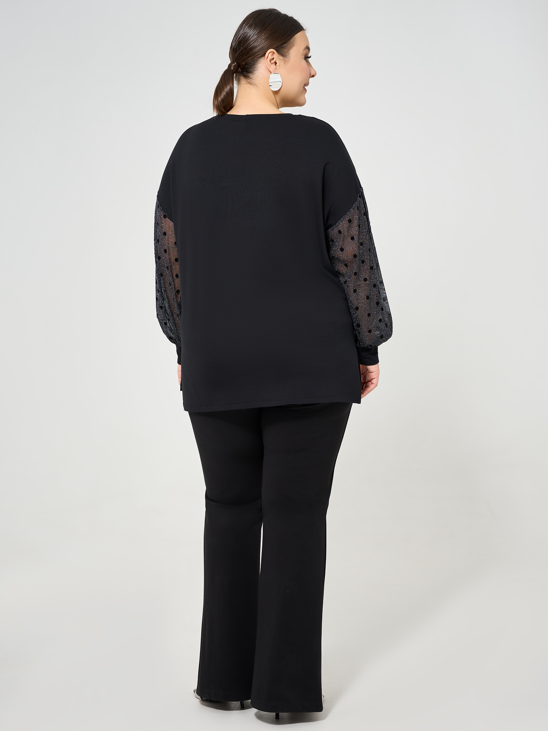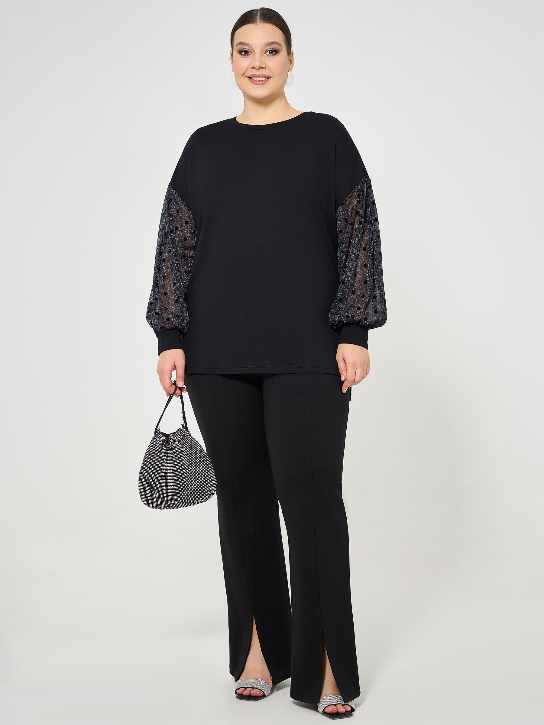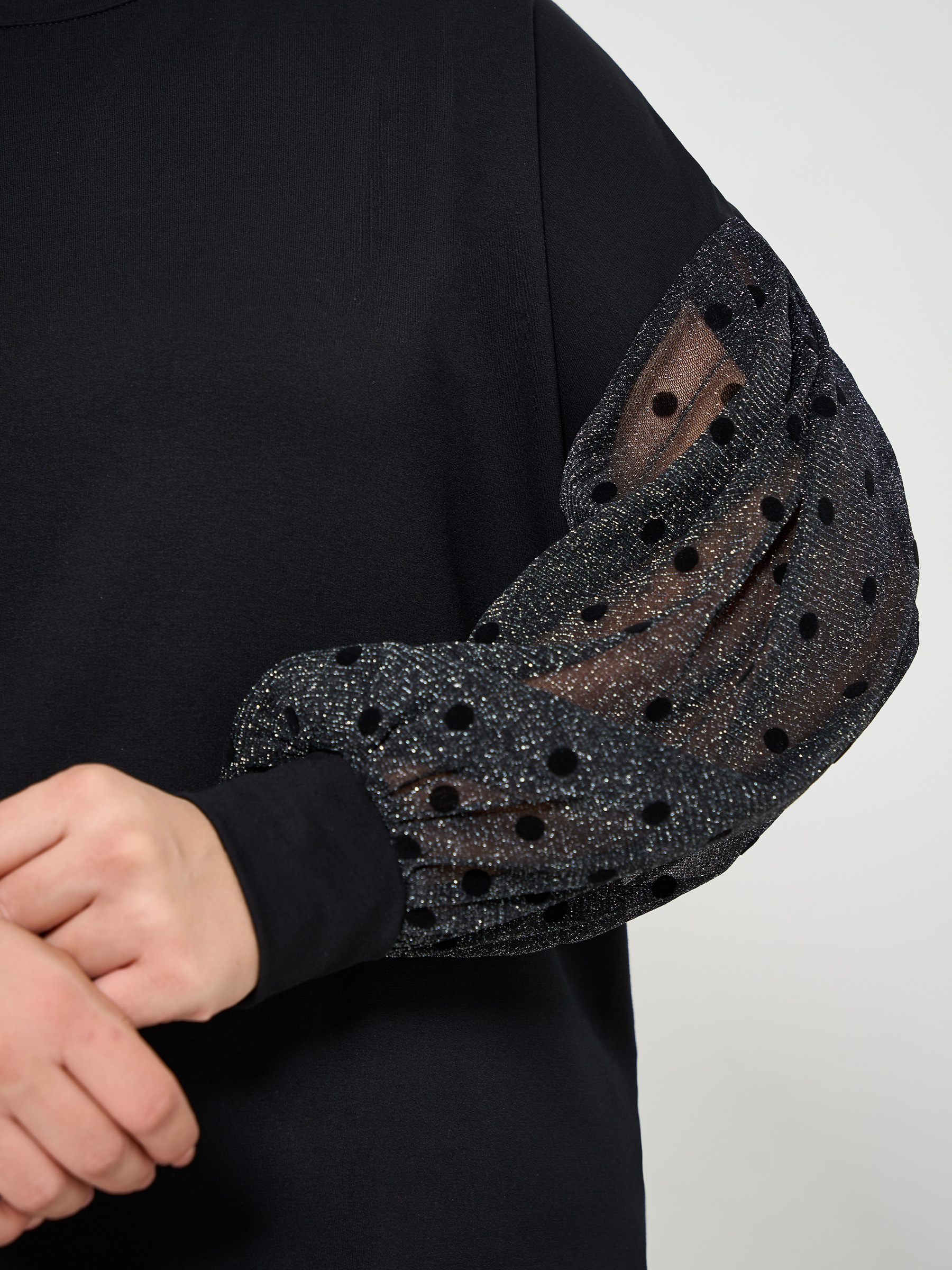 Джемпер чёрный с объёмными рукавами из сетки