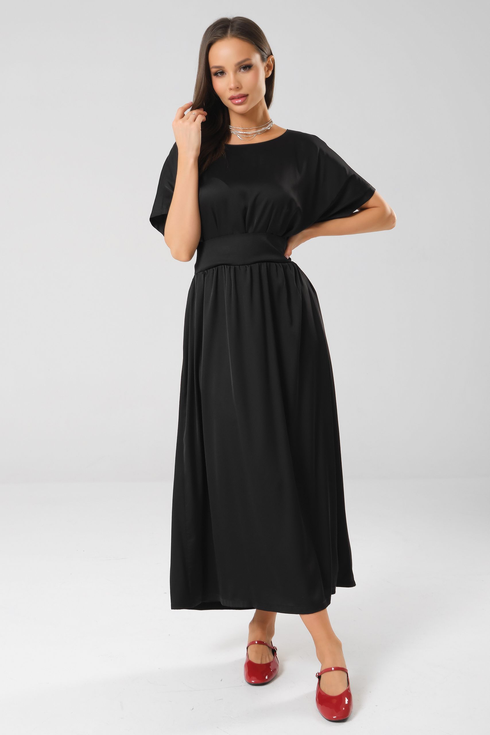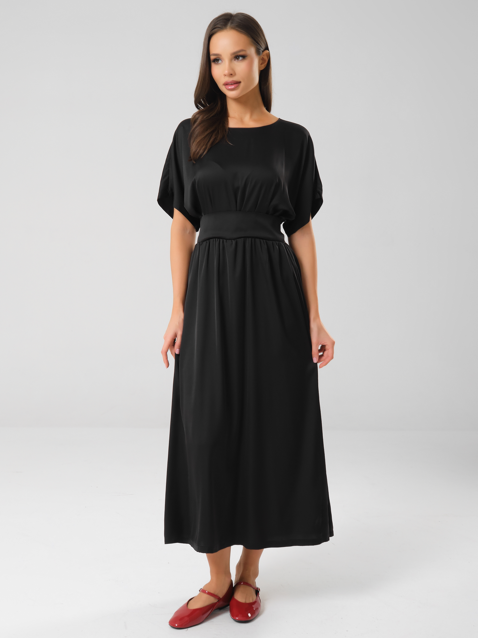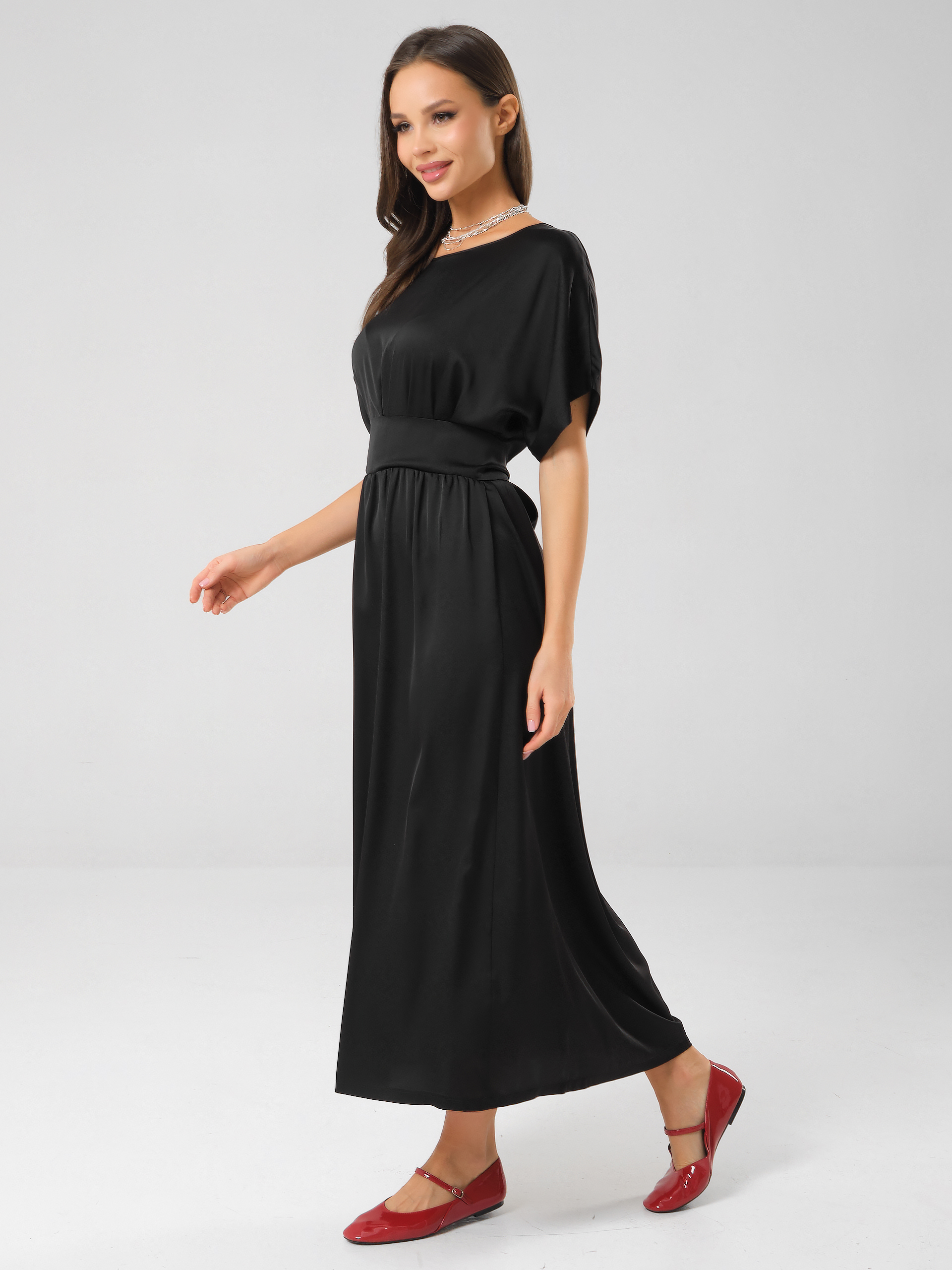 Платье нарядное чёрное с широким поясом