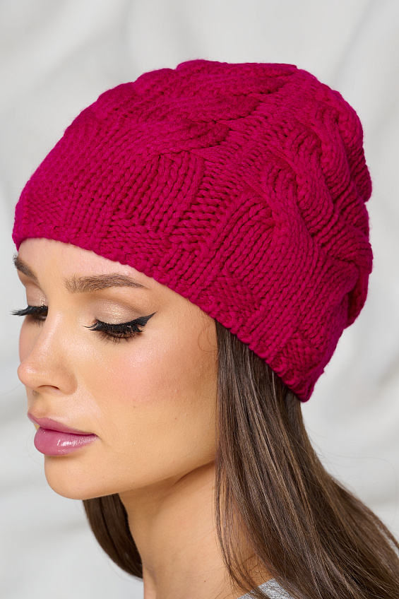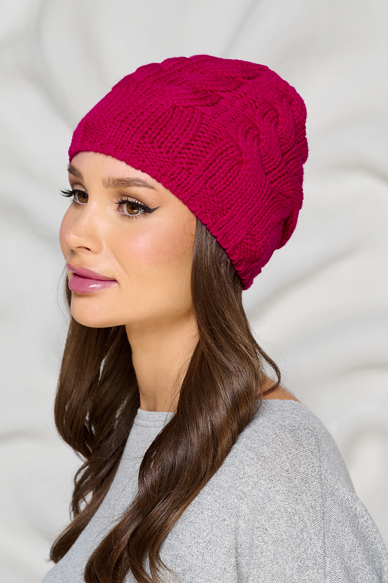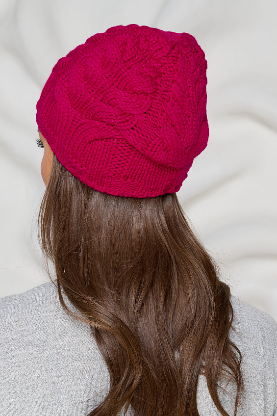 Шапка демисезонная цвета фуксия от производителя Bellovera. Фиксированный защип сзади, фигурная вязка. Идеальный вариант под любой образ и настроение.