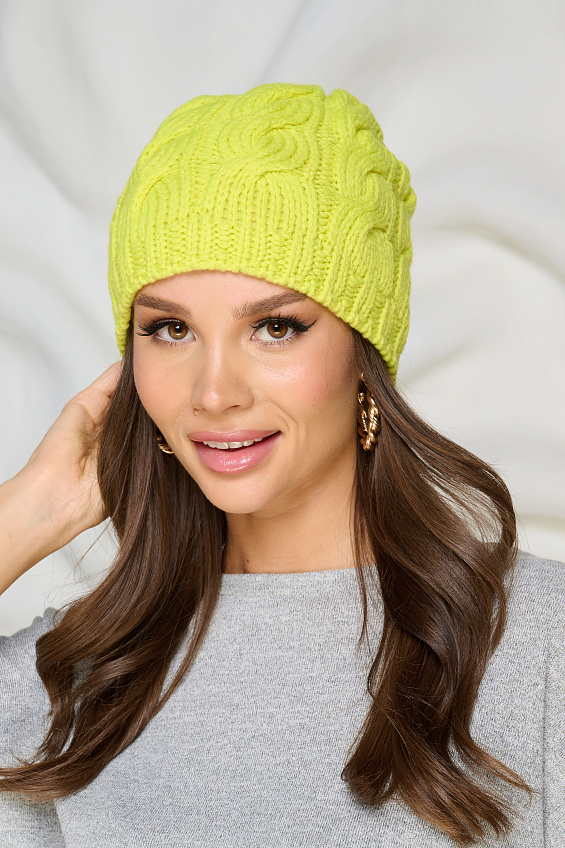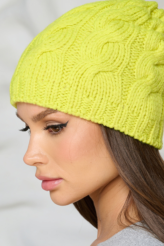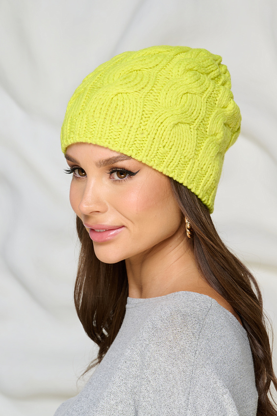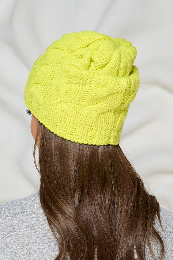 Шапка тёплая жёлтого цвета от производителя Bellovera. Шапка на флисовом подкладе, фигурная вязка – косичка. Форма шапки позволяет заправить ее внутрь, тем самым сделав ваш образ более расслабленным и повседневным.