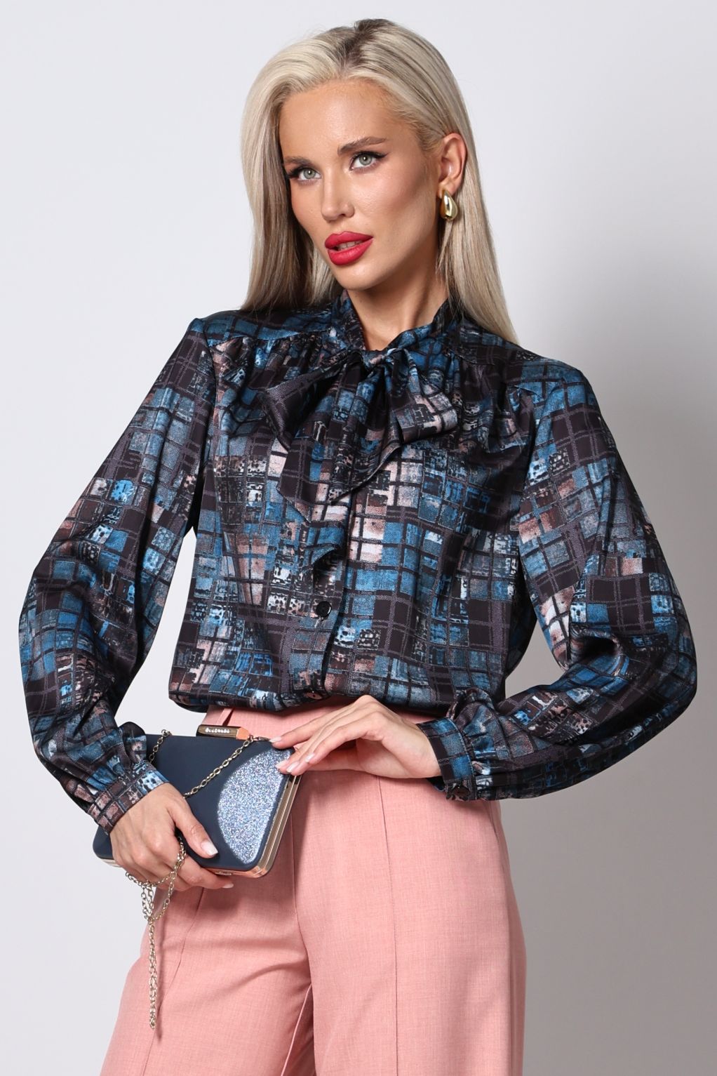 Блузка бирюзово-синяя с воротником-галстуком на любой случай от бренда DStrend. Пышные рукава и возможность завязывать галстук бантом придают образу романтическую основу. Подчеркивает стиль и выбор ткани. Функциональная застежка на пуговицы и манжеты на них же, как в рубашке, отвечают за классику. А удобная длина и оформленный низ с небольшими разрезами по бокам позволяют одинаково успешно сочетать блузку с другими элементами гардероба как навыпуск, так и заправленную.