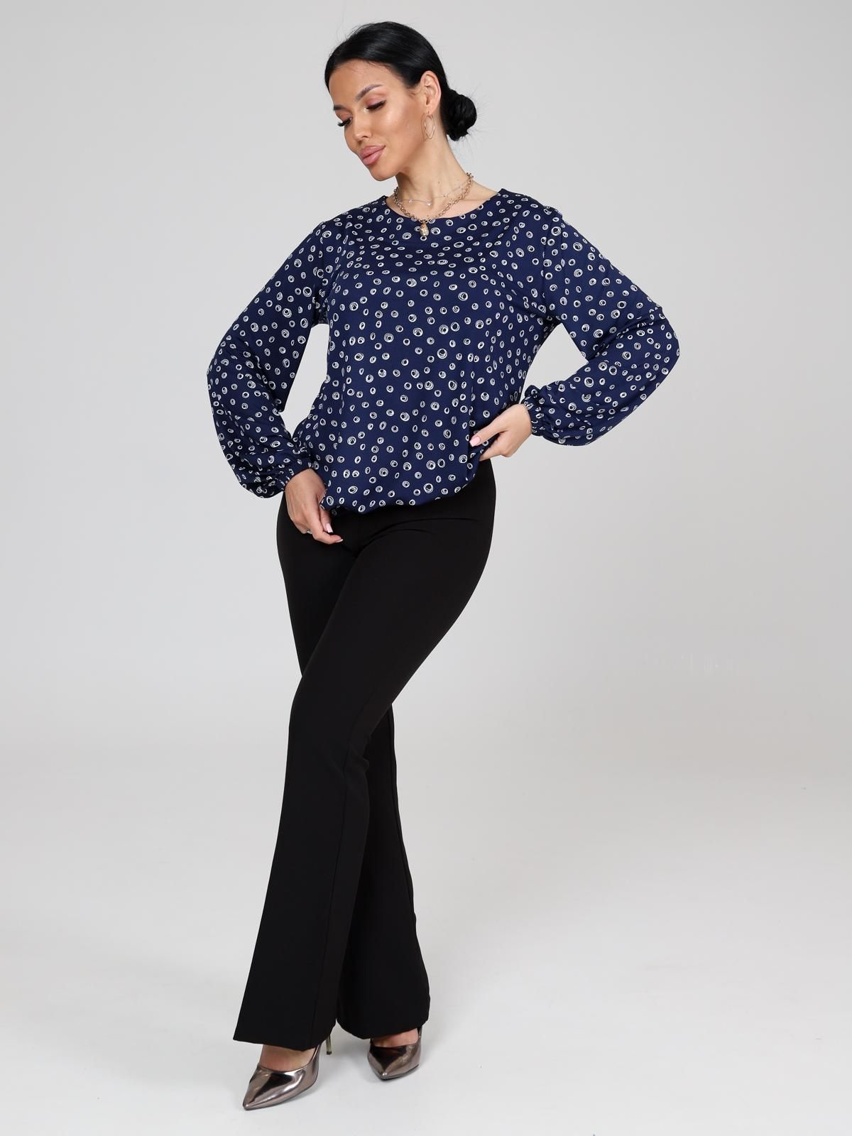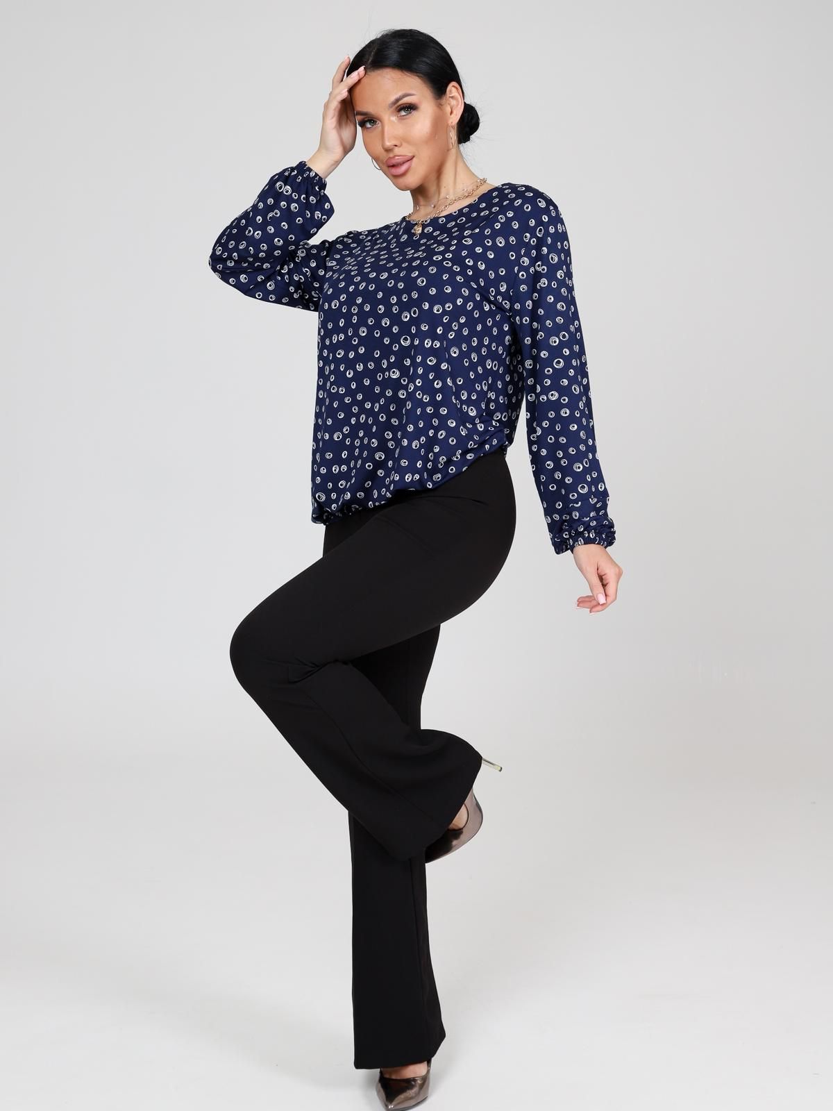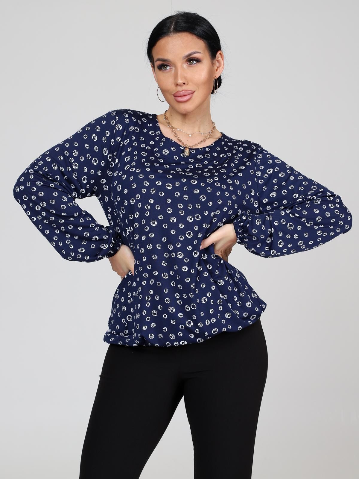 Блузка трикотажная с принтом от бренда Iv-capriz. Модель свободного силуэта, круглый вырез горловины. Рукав втачной длинный оканчивается резинкой. Низ посажен на притачную манжету. Идеальный вариант на каждый день.