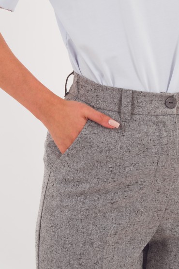 Брюки светло-серые с карманами от бренда Braslava, выполнены из плотной костюмной ткани. По переду застёжка на молнию и пуговицу. Пояс притачной со шлёвками. Резинка в поясе на спинке гарантирует комфортную посадку. Стрелки зрительно удлиняют ноги. Идеальный вариант прямых брюк для составления повседневного комплекта.