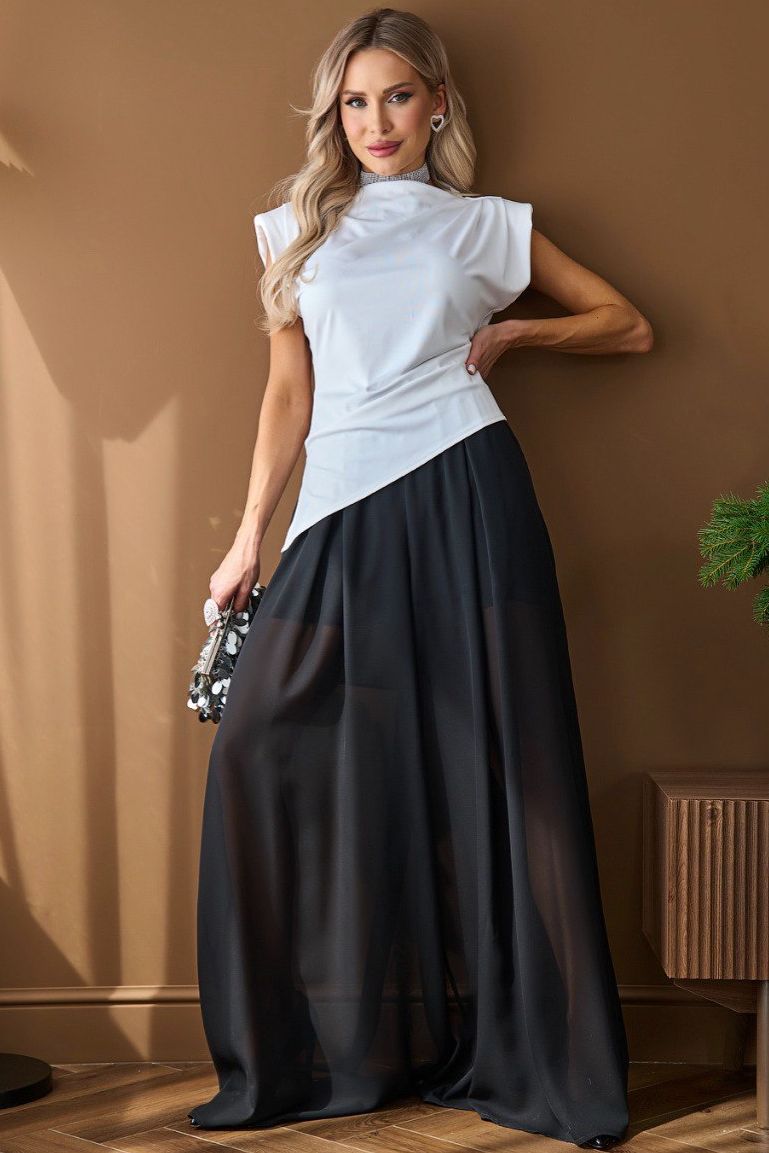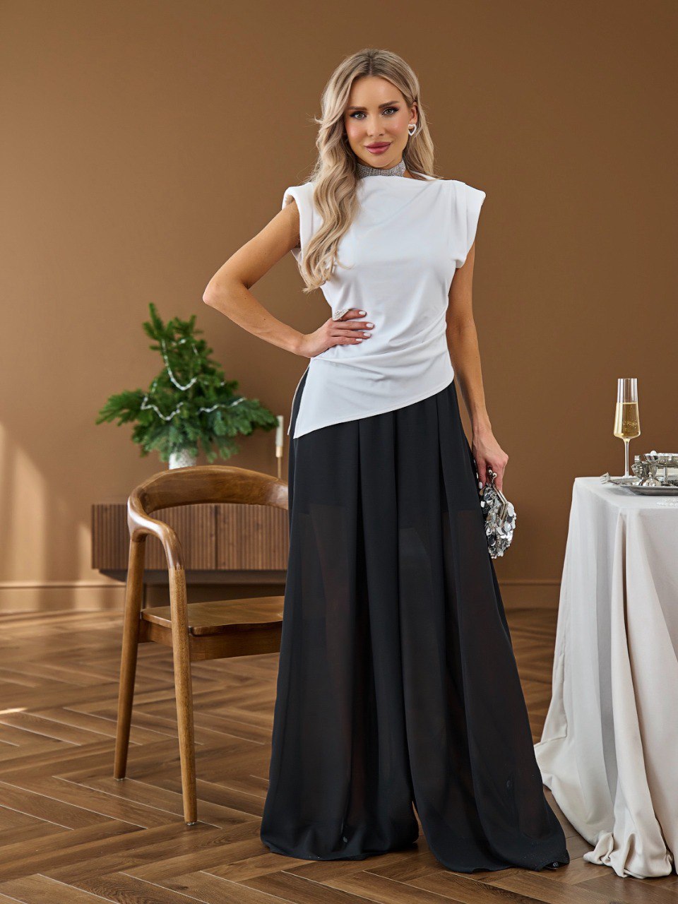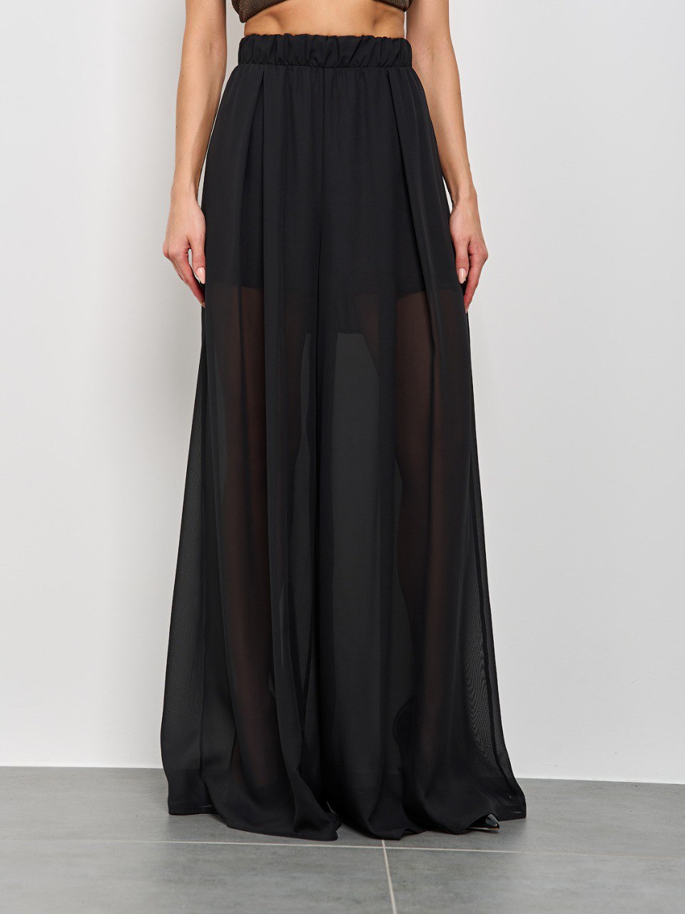 Брюки широкие из шифона чёрные от компании Jetty. Модель на резинке с защипами по переду. Внутри изделия вшиты шортики. Отличный выбор для создания стильного образа.
