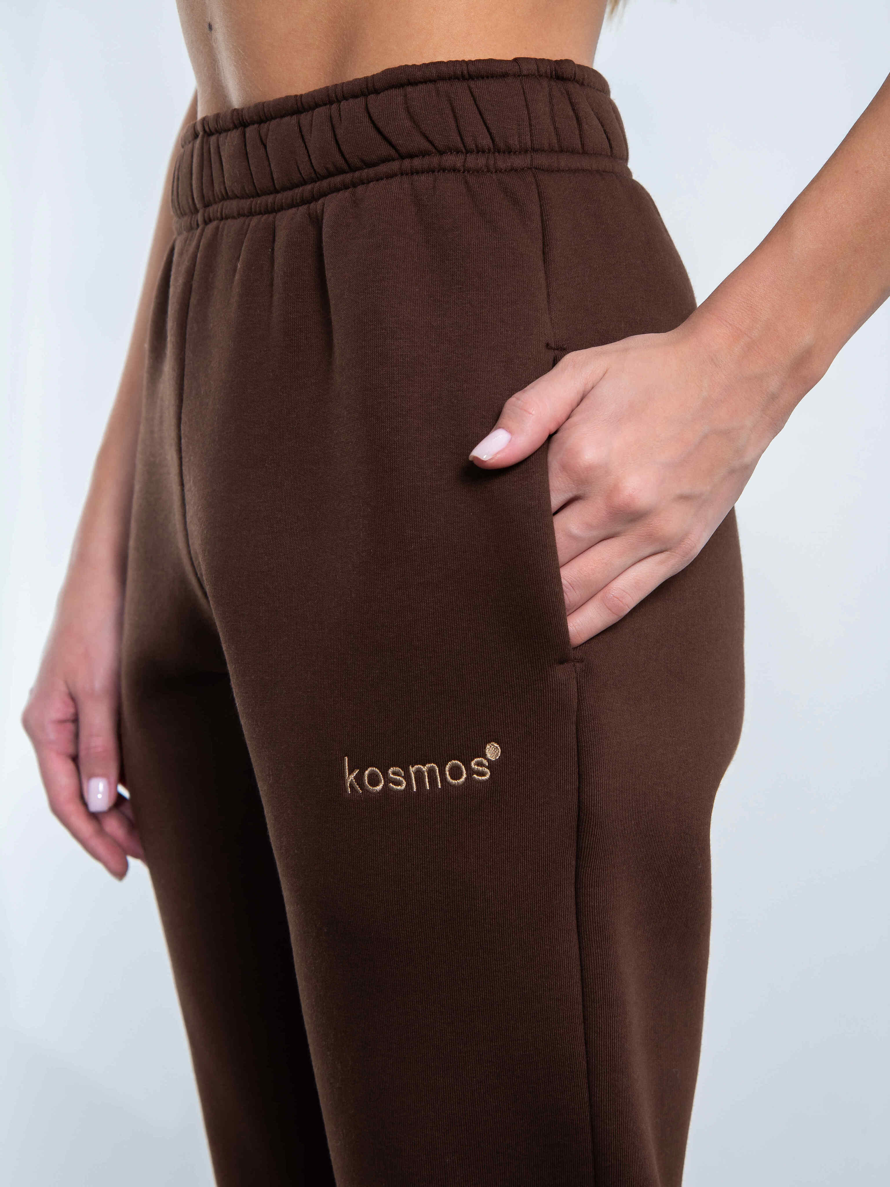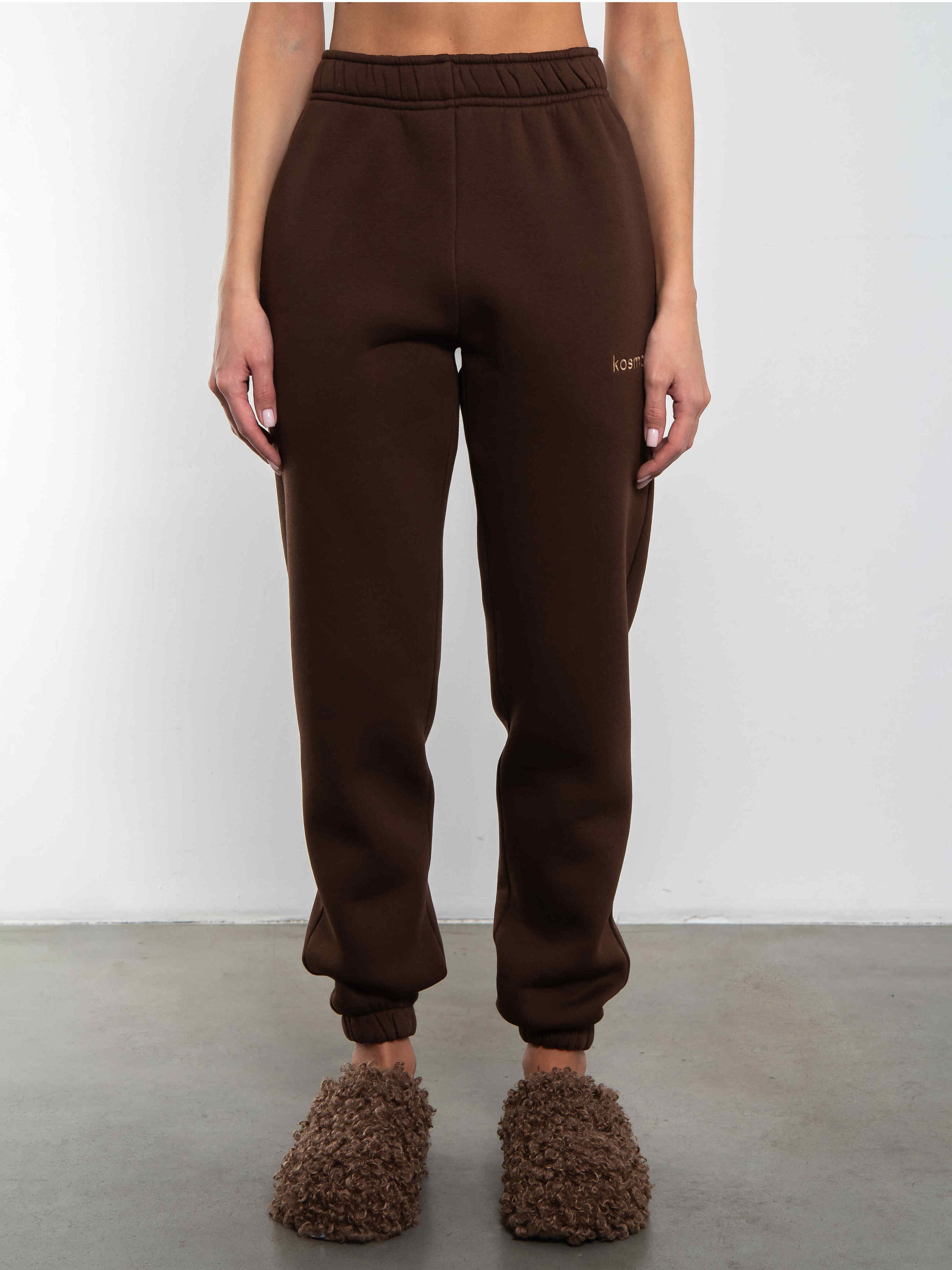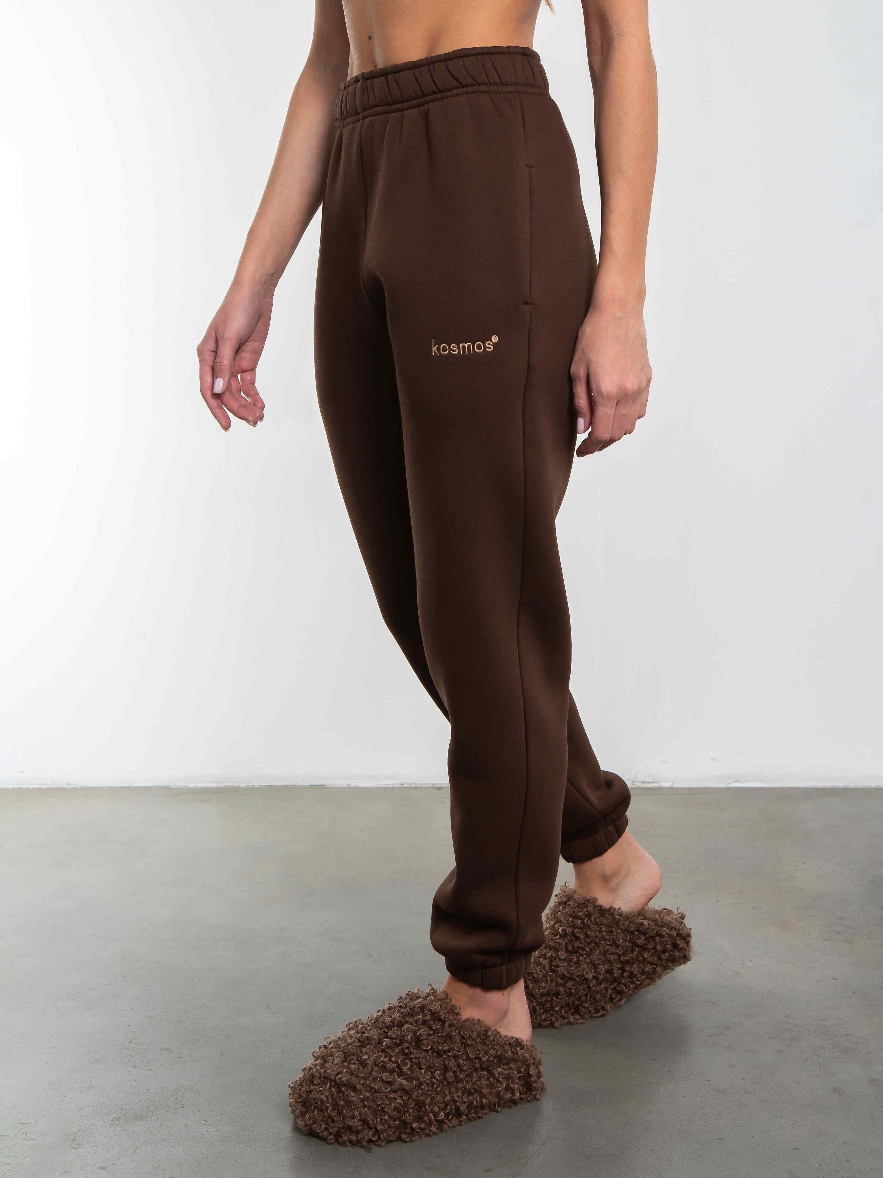 Брюки джоггеры с начёсом в коричневом цвете от бренда Kosmos. Теплый футер сохранит тепло, а удобный крой позволит вам чувствовать себя комфортно весь день. Нейтральный цвет подойдет ко всему вашему гардеробу. Мягкие брюки идеально подходят для повседневных дел или отдыха.
