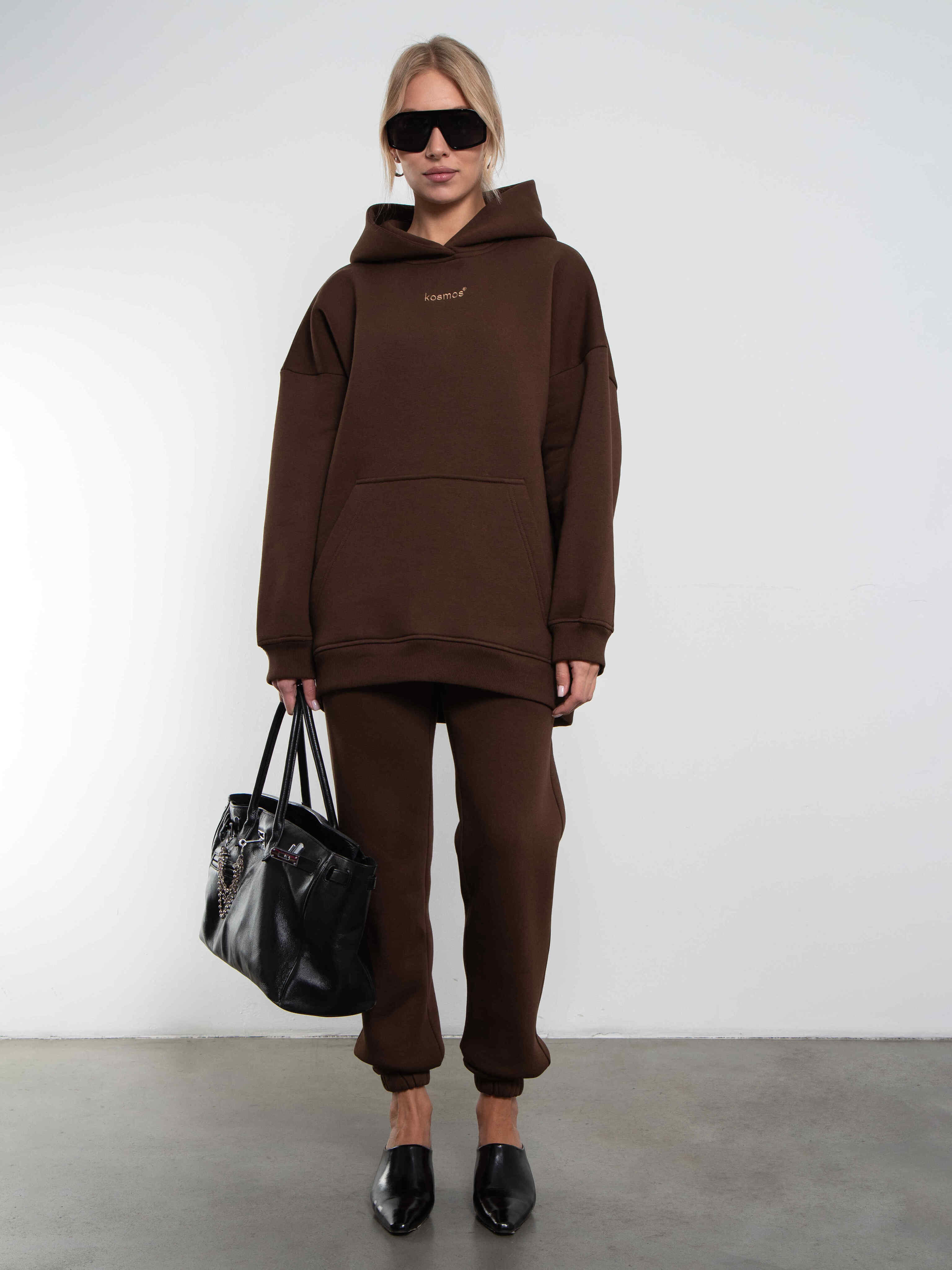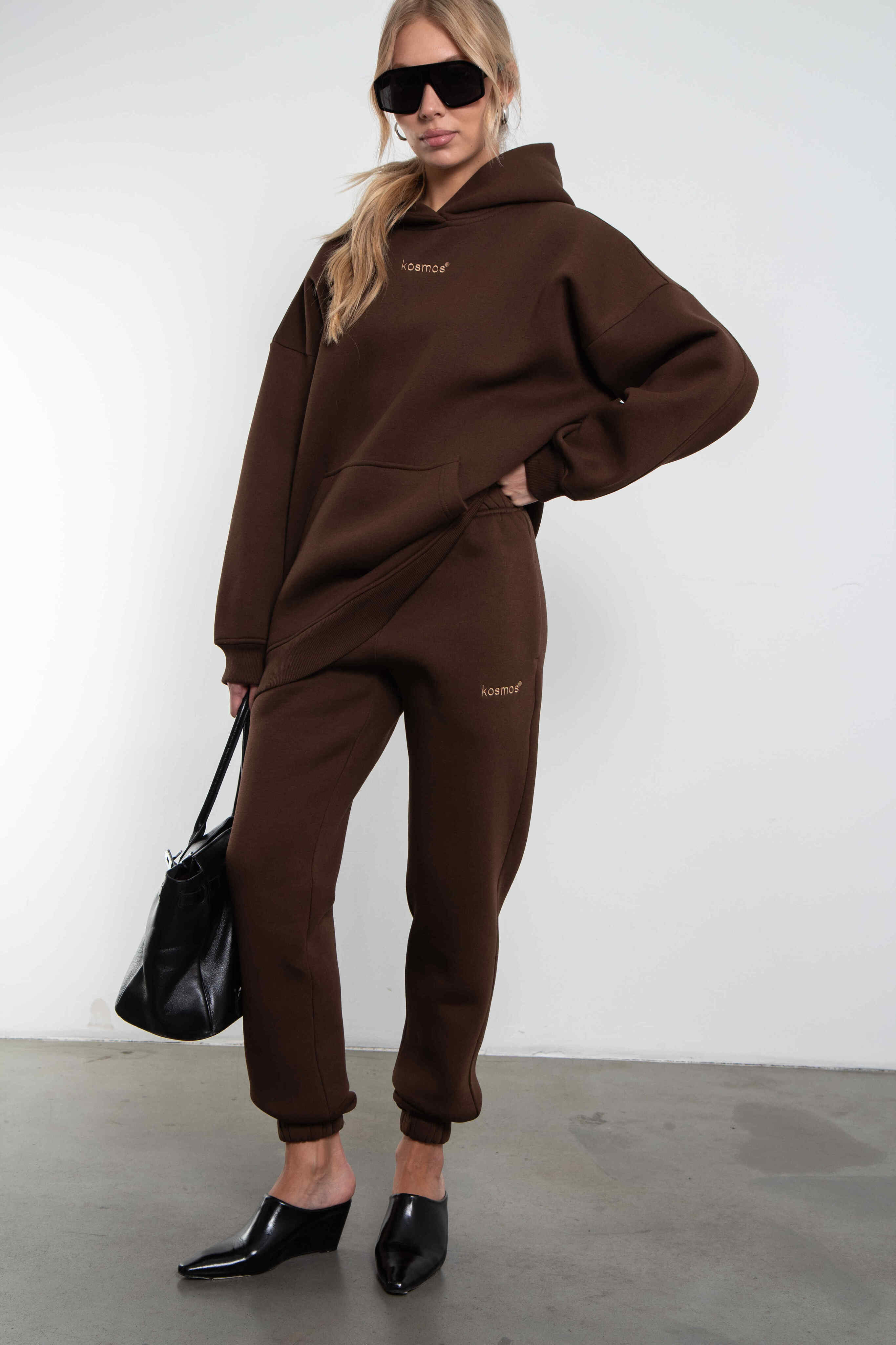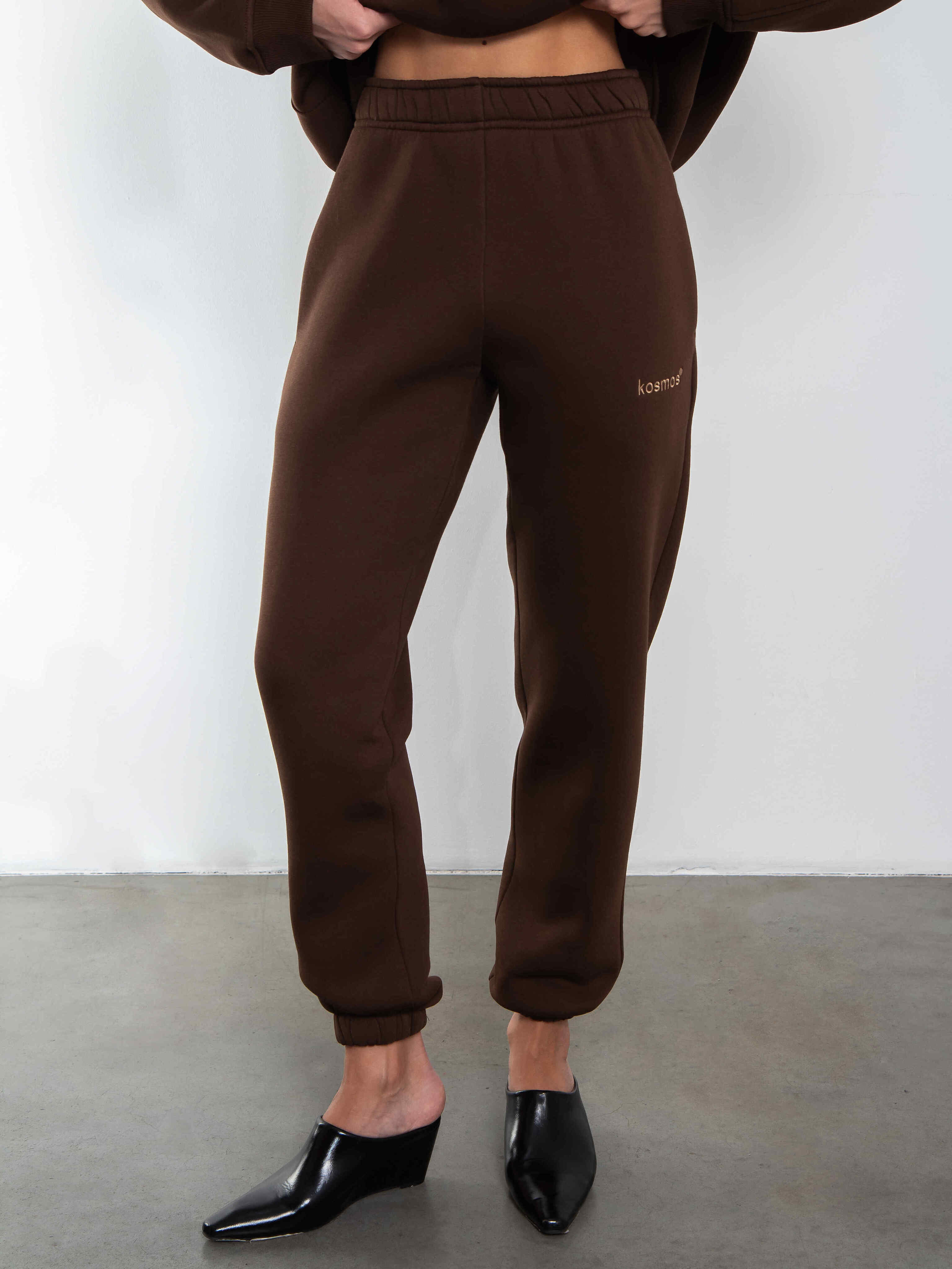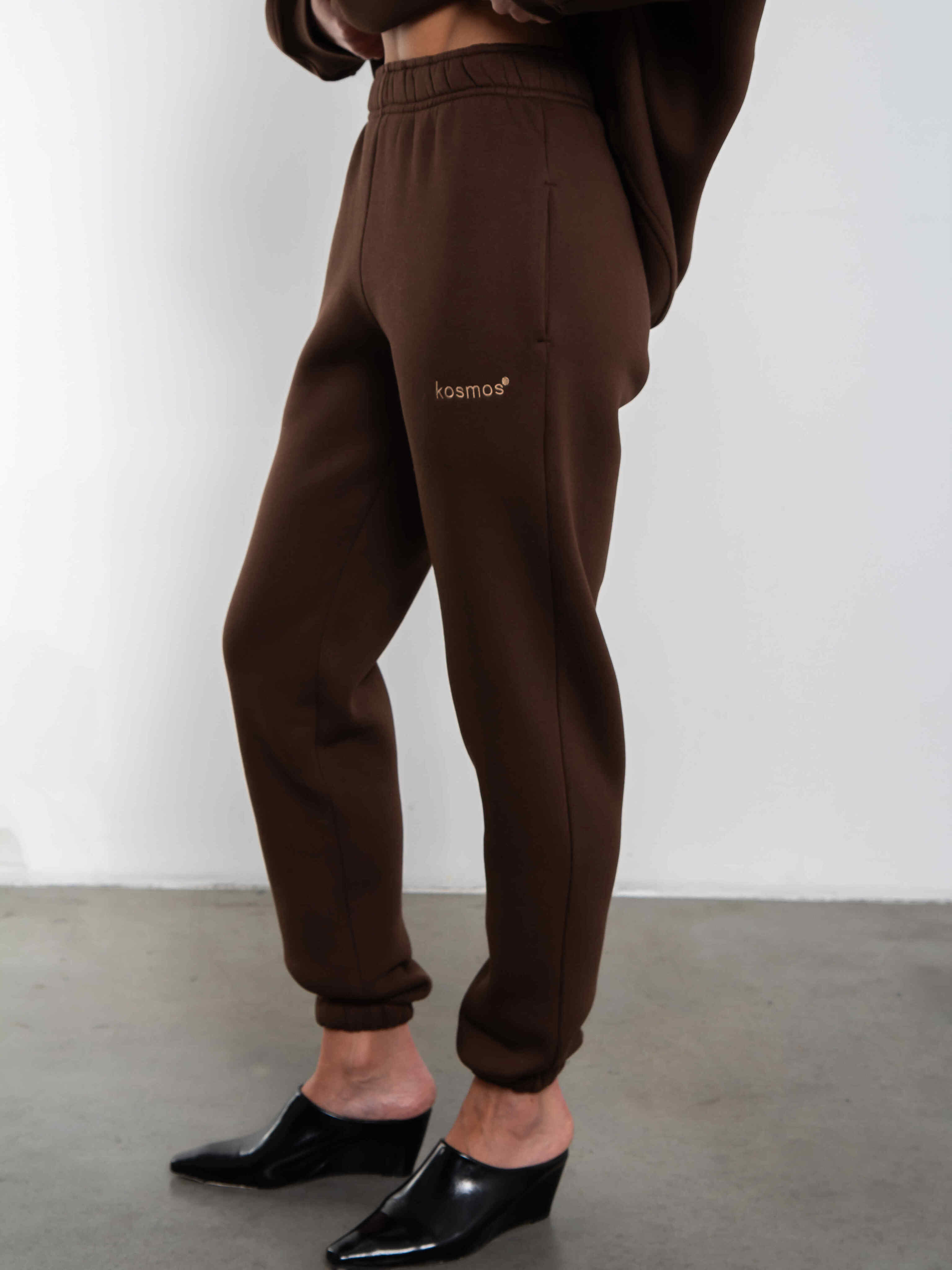 Брюки джоггеры с начёсом в коричневом цвете от бренда Kosmos. Теплый футер сохранит тепло, а удобный крой позволит вам чувствовать себя комфортно весь день. Нейтральный цвет подойдет ко всему вашему гардеробу. Мягкие брюки идеально подходят для повседневных дел или отдыха.