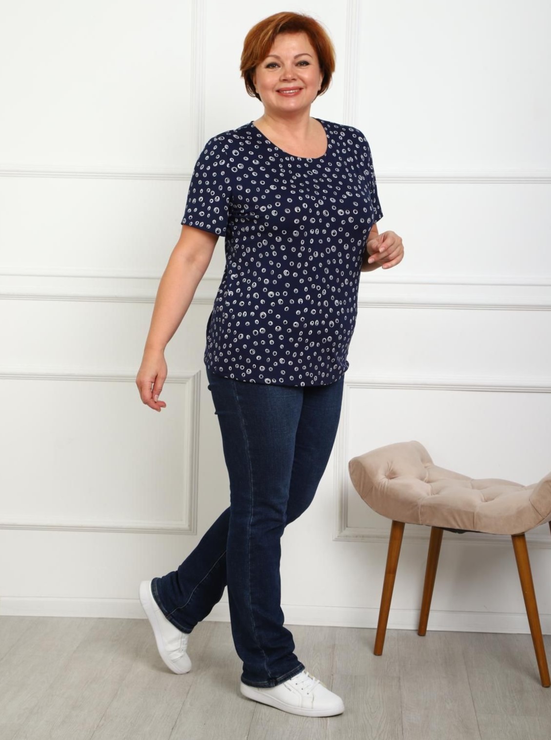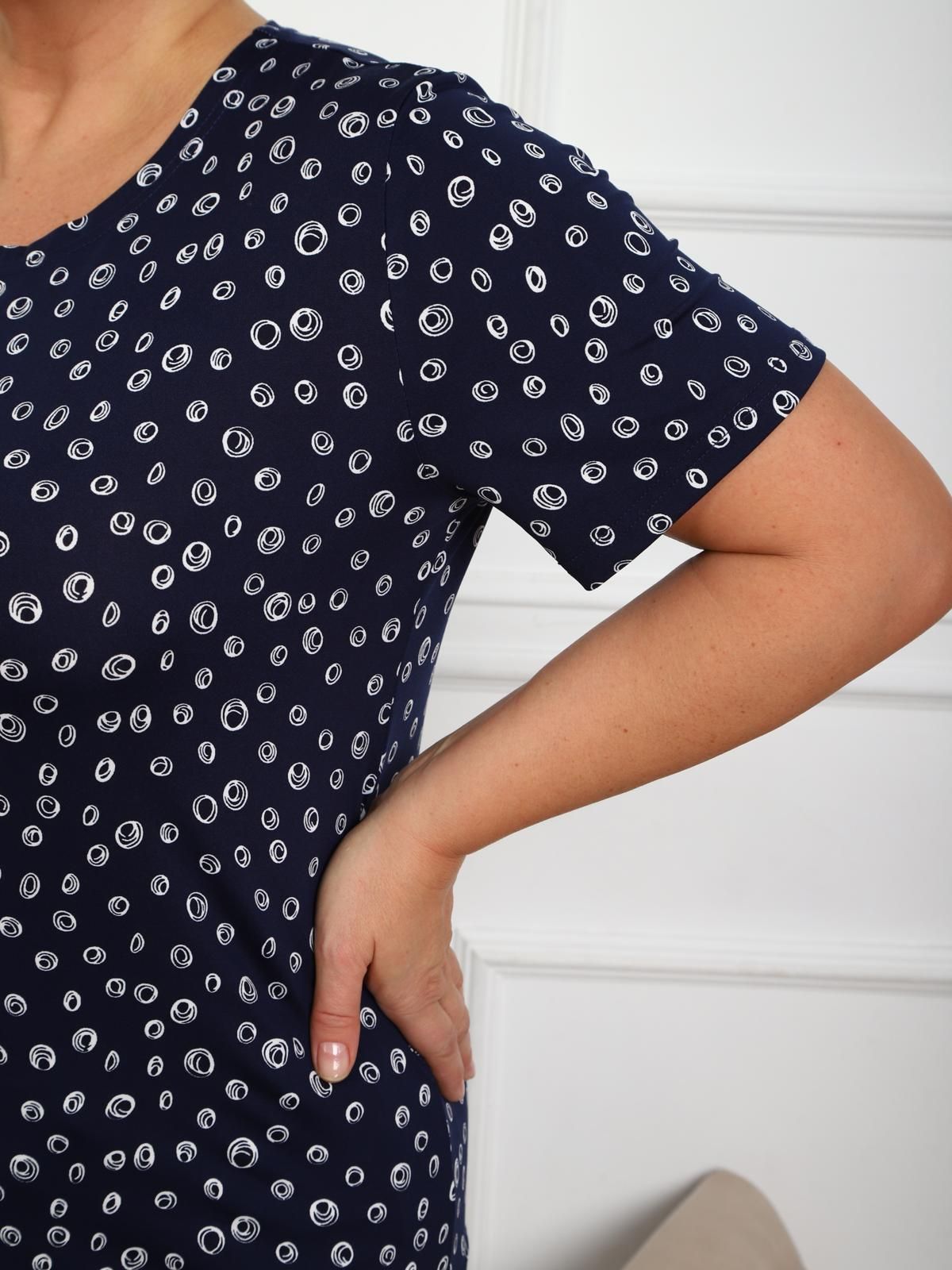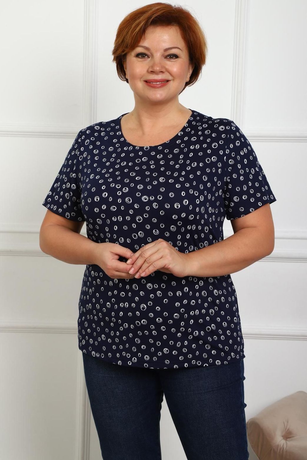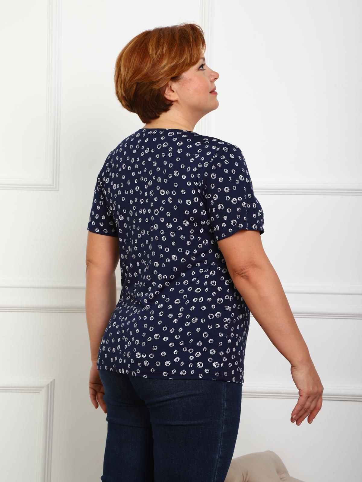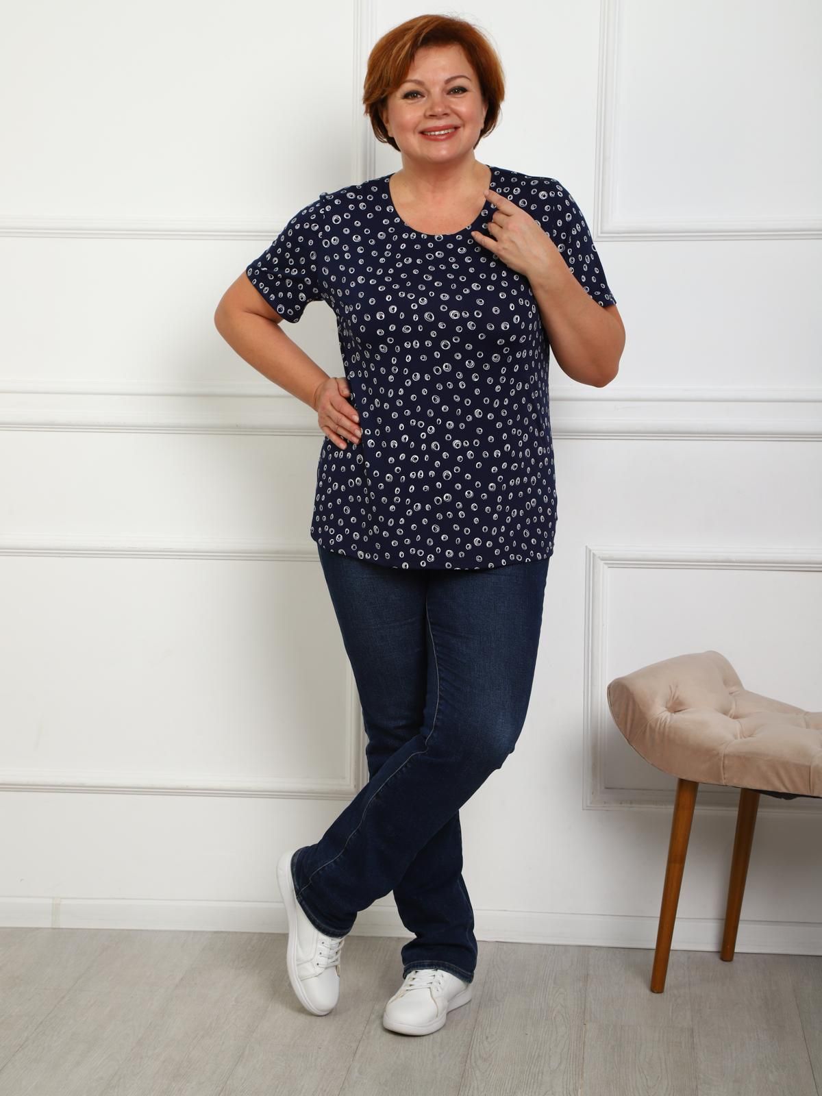 Футболка чёрная трикотажная с принтом от бренда Iv-capriz. Модель прямого покроя, короткими втачными рукавами, горловиной круглой формы. Идеальный вариант для домашних дел.