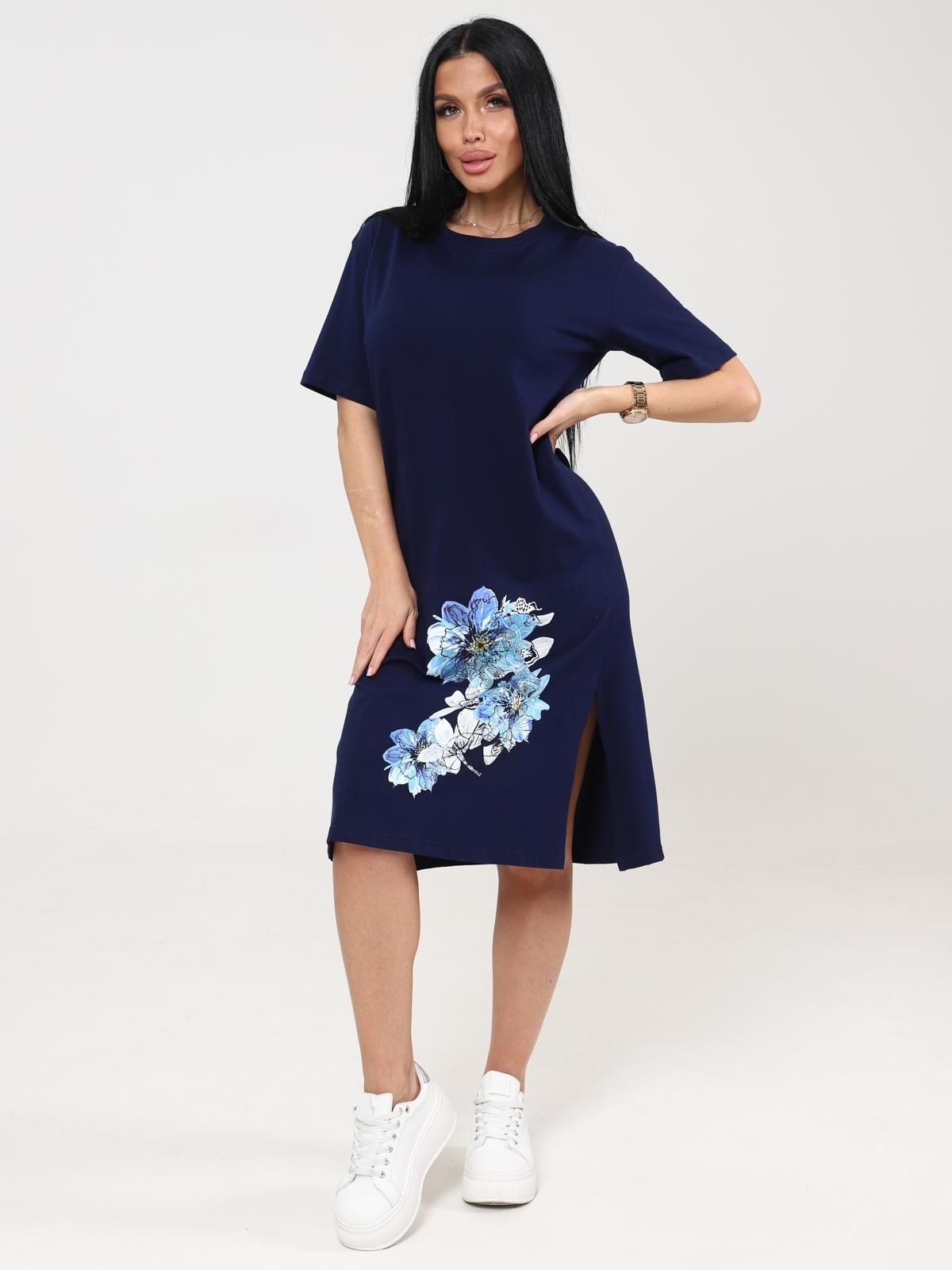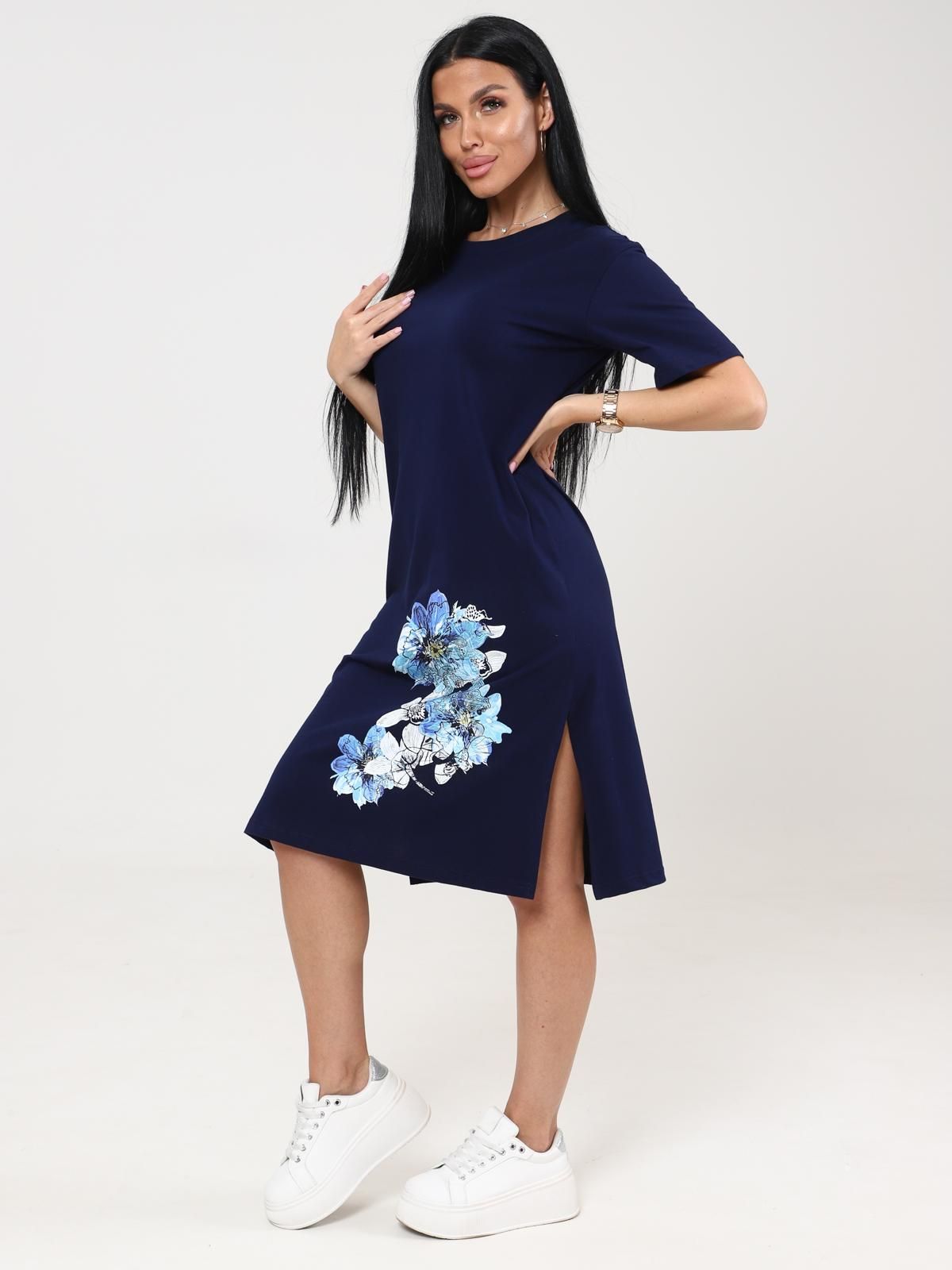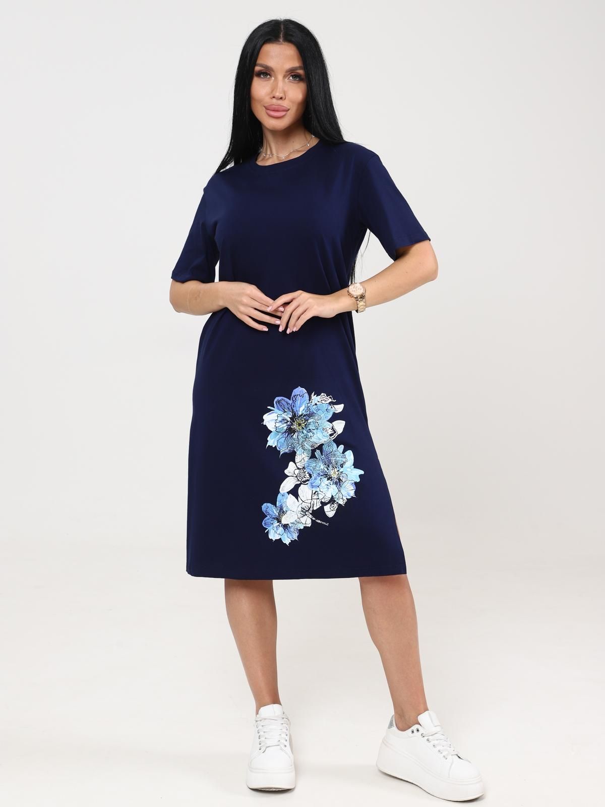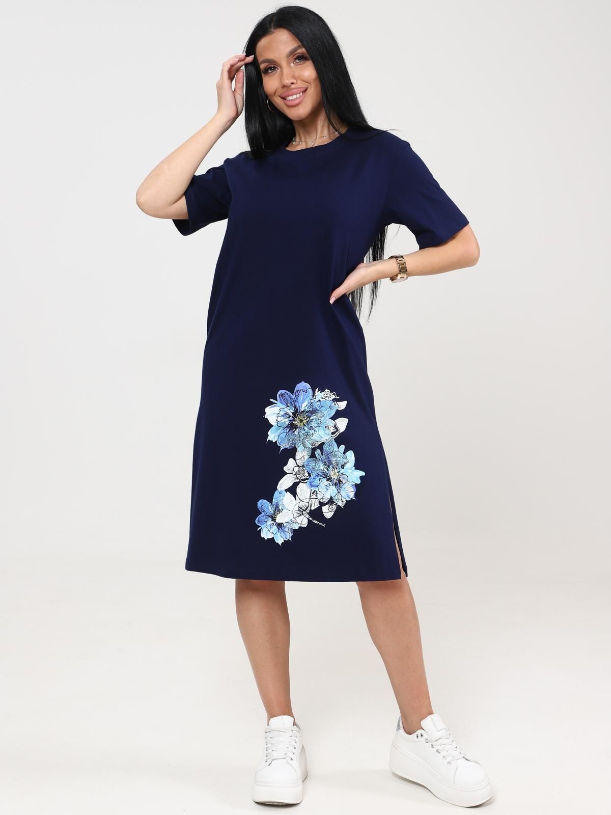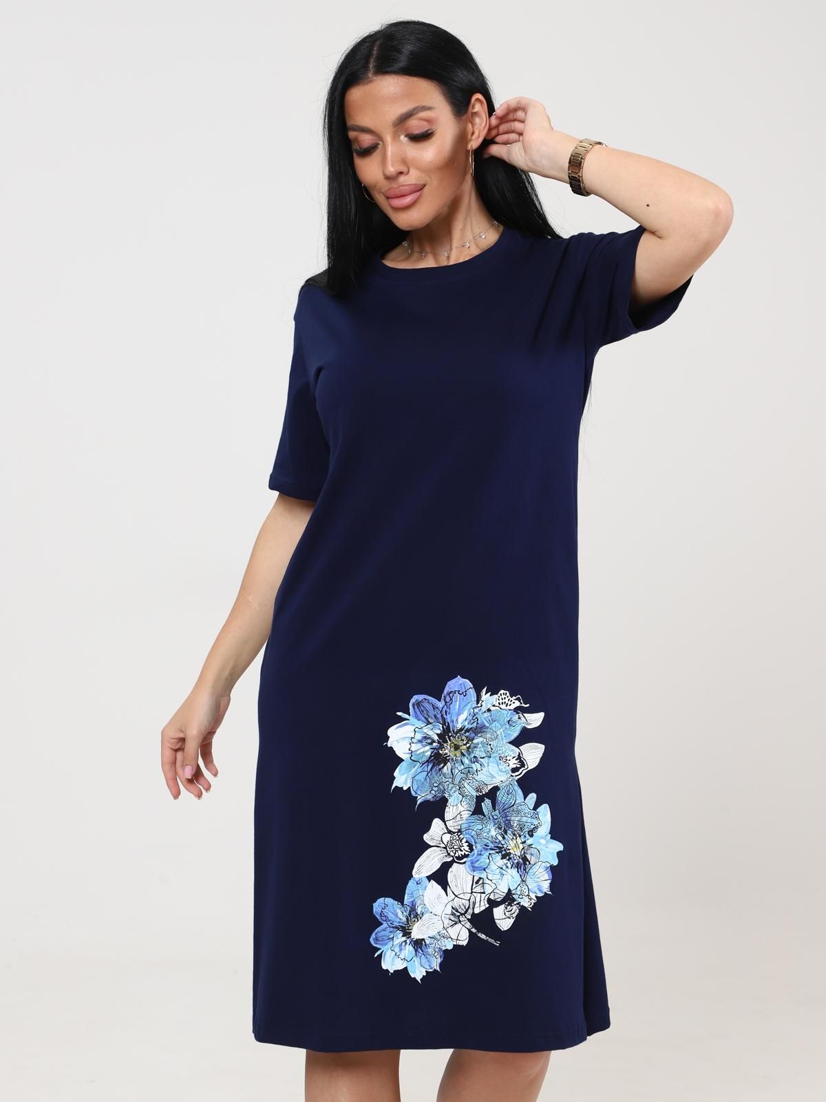 Платье домашнее трикотажное с принтом от бренда IV-Capriz. Модель полуприлегающего кроя выполнена из полотна кулирка. Круглый вырез горловины. Короткие рукава. Идеальный выбор для домашних модниц.