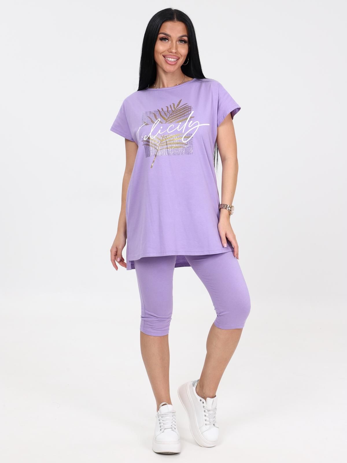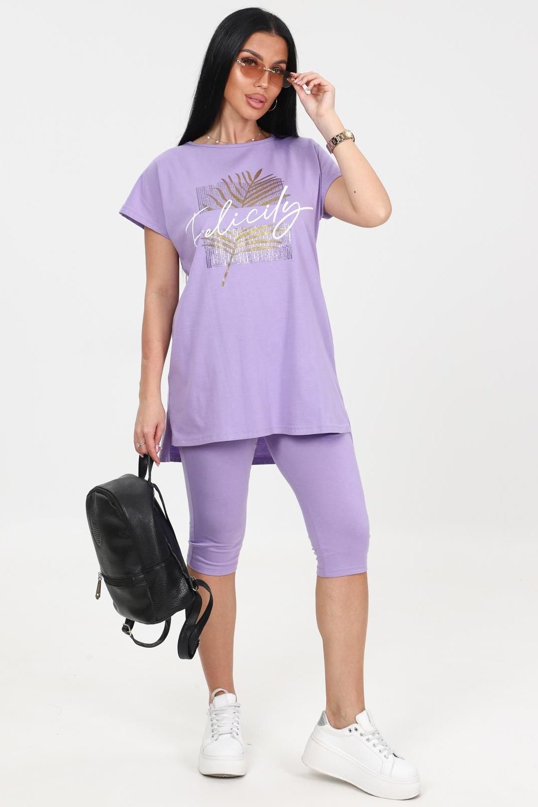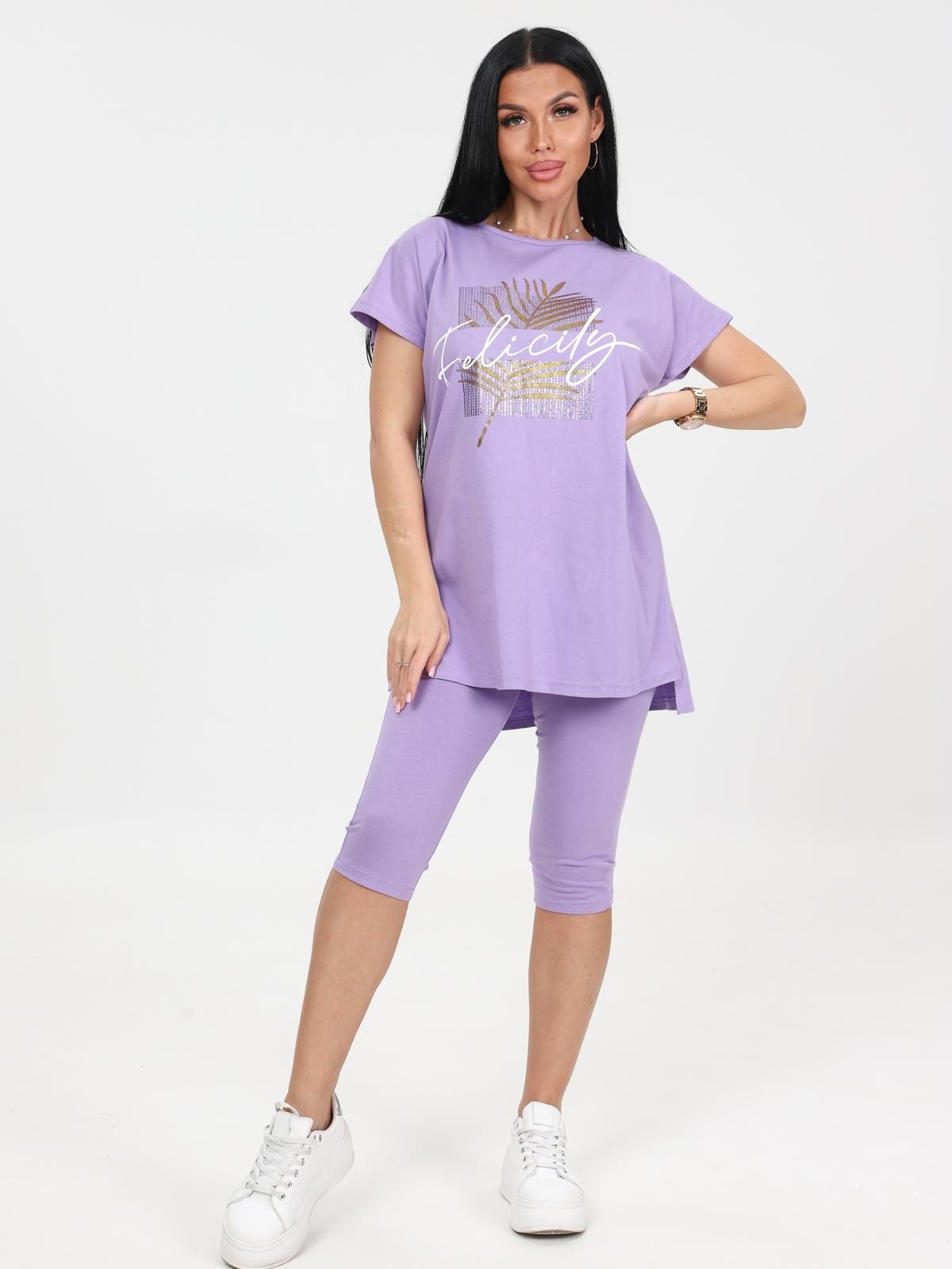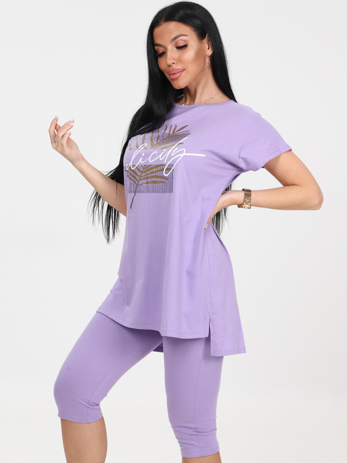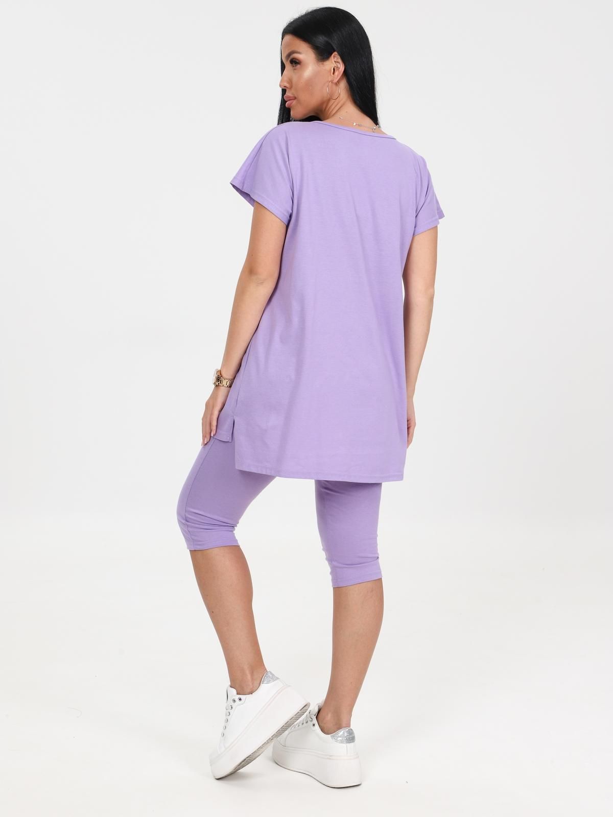 Костюм трикотажный сиреневый с бриджами от бренда Iv-capriz. Футболка с круглым вырезом горловины, короткие рукава. Бриджи с поясом на резинке. Идеальный вариант для домашних дел.