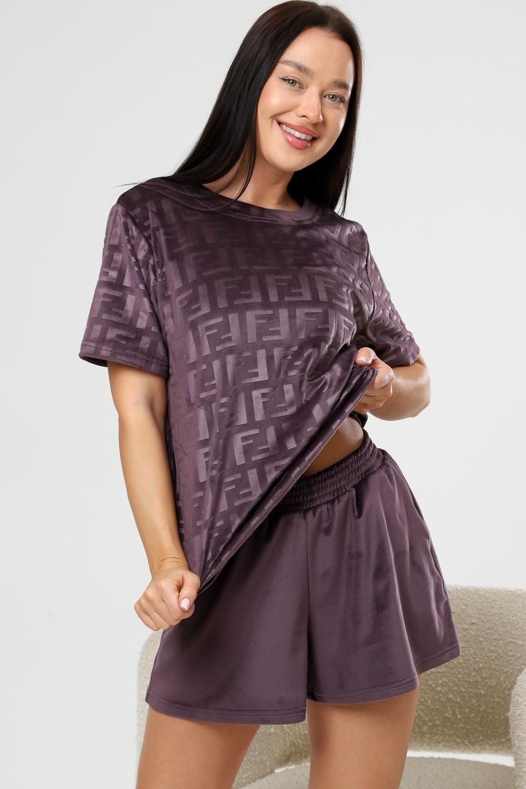 Костюм велюровый с шортами