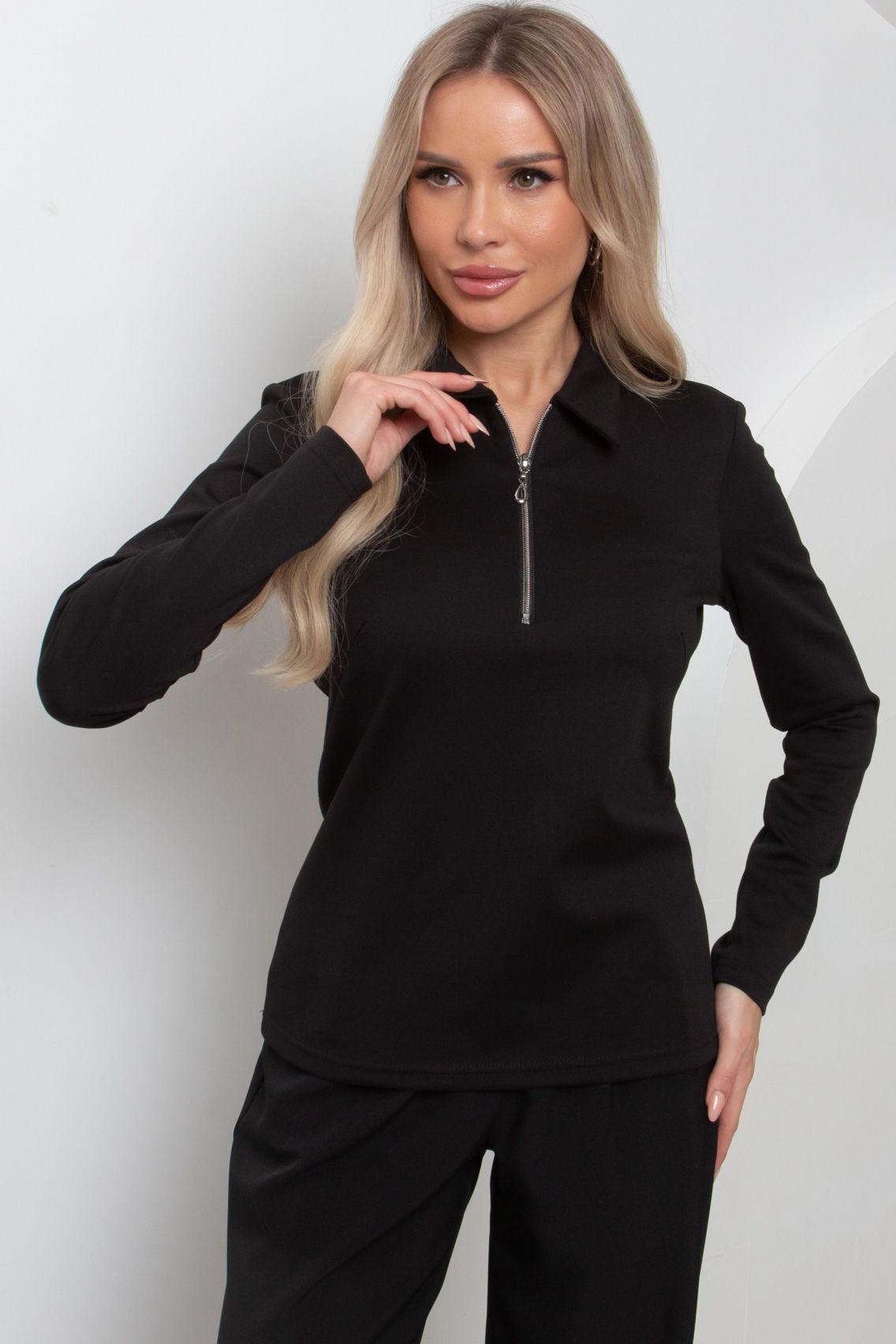 Джемпер трикотажный чёрный от компании Valentina. Модель полуприлегающего силуэта. Длинный втачной рукав. Отложной воротник. Перед оформлен планкой с застежкой на петли и пуговицы. Низ ровный, без разрезов. Отличное решение на каждый день. Рекомендуемая стирка при t не более 30°.