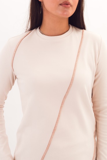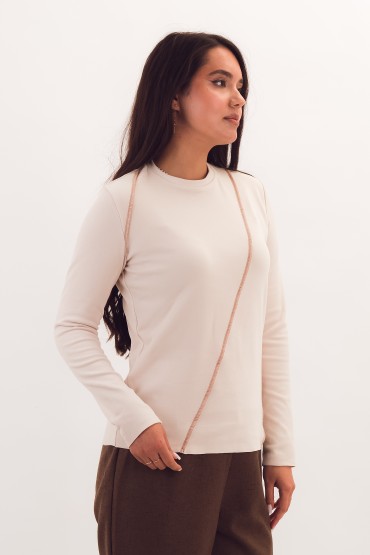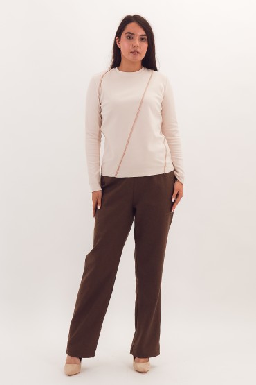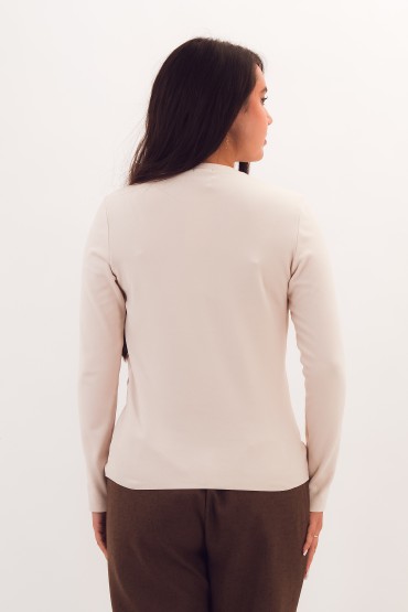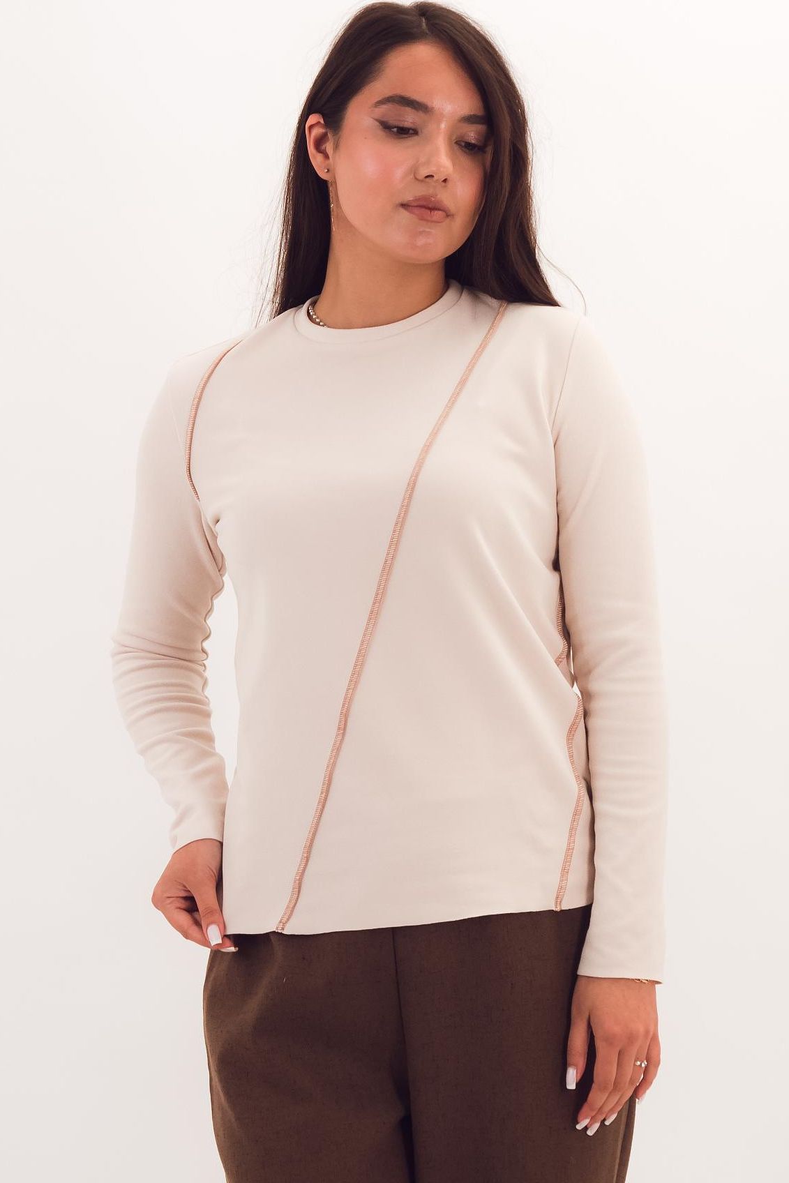 Джемпер трикотажный молочного цвета от бренда Braslava. Модель прямого силуэта с оригинальными резами по преду и круглой горловиной подарит Вам комфортный и стильный образ!