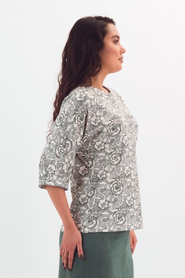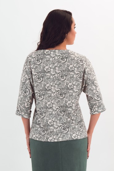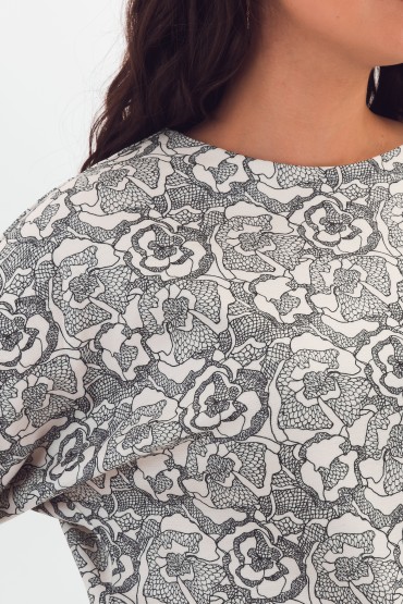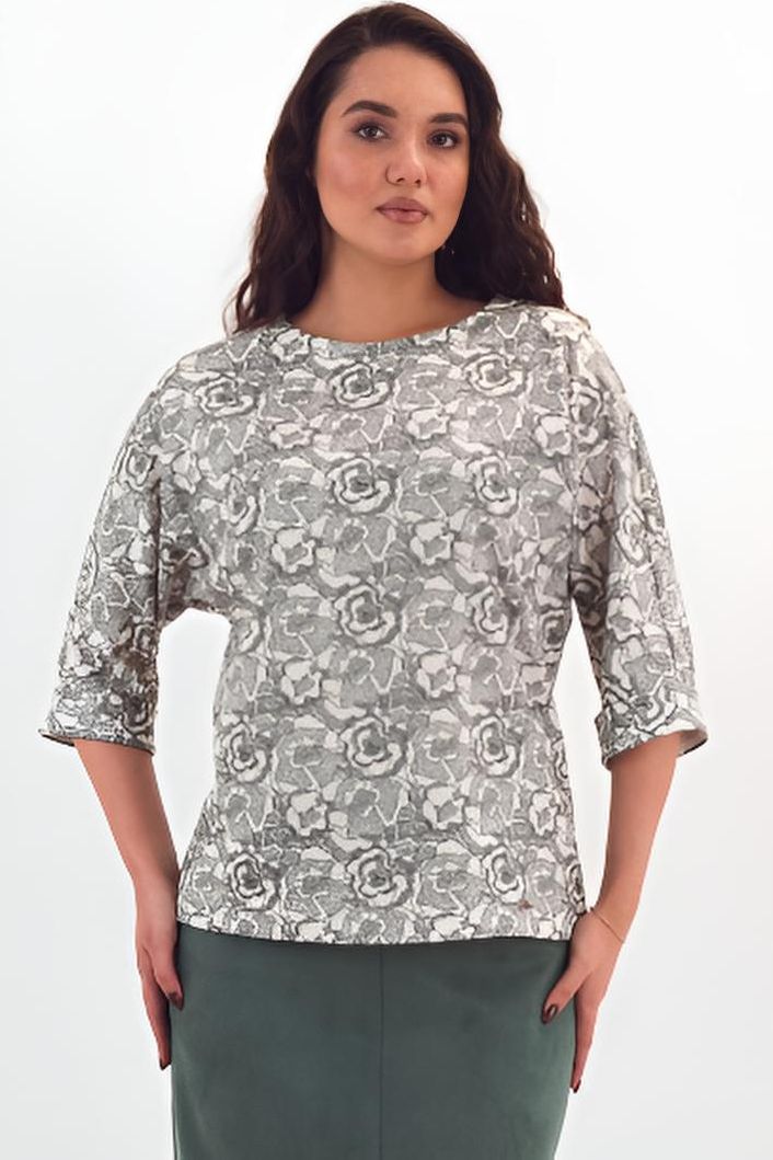Джемпер трикотажный молочного цвета с принтом