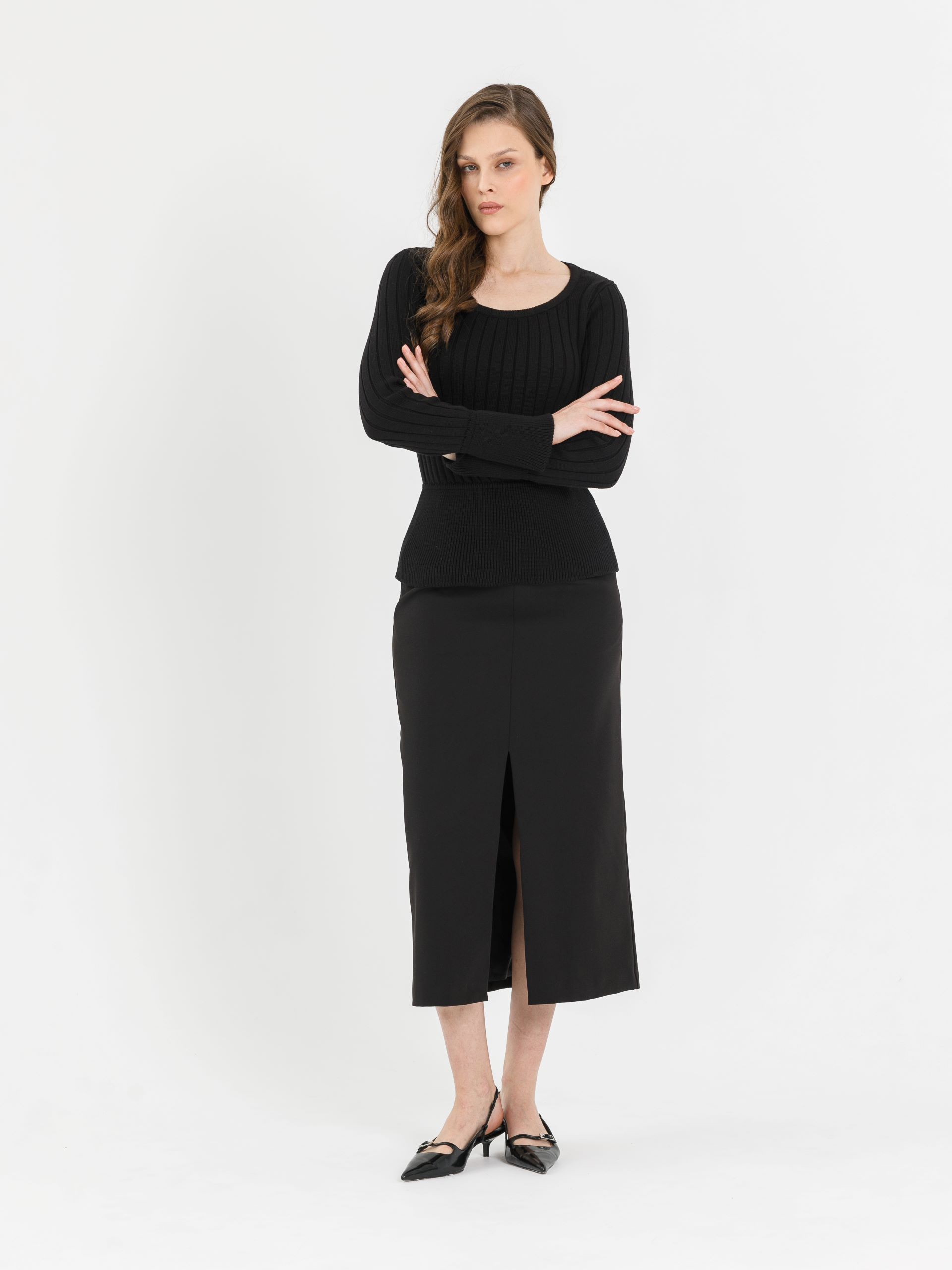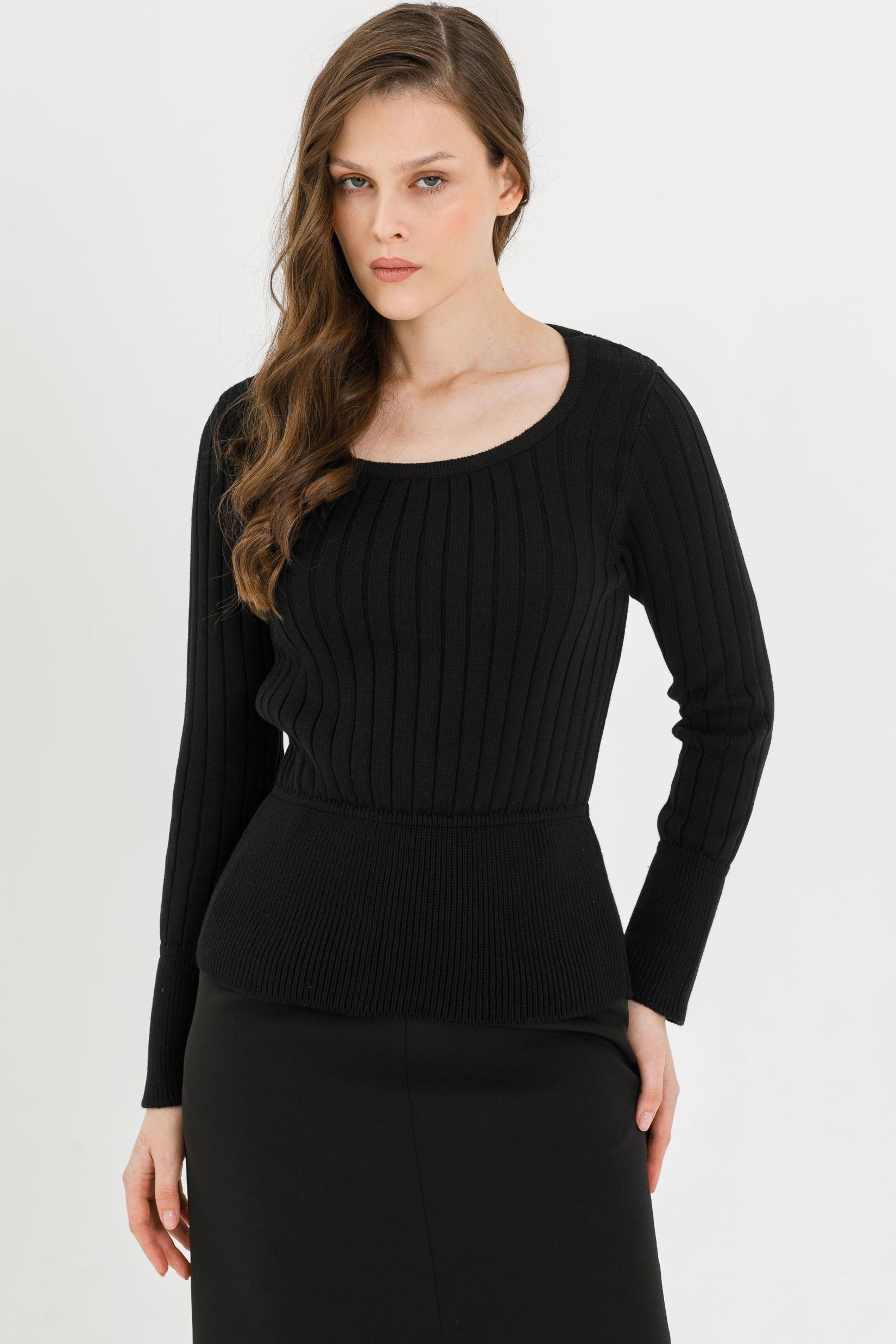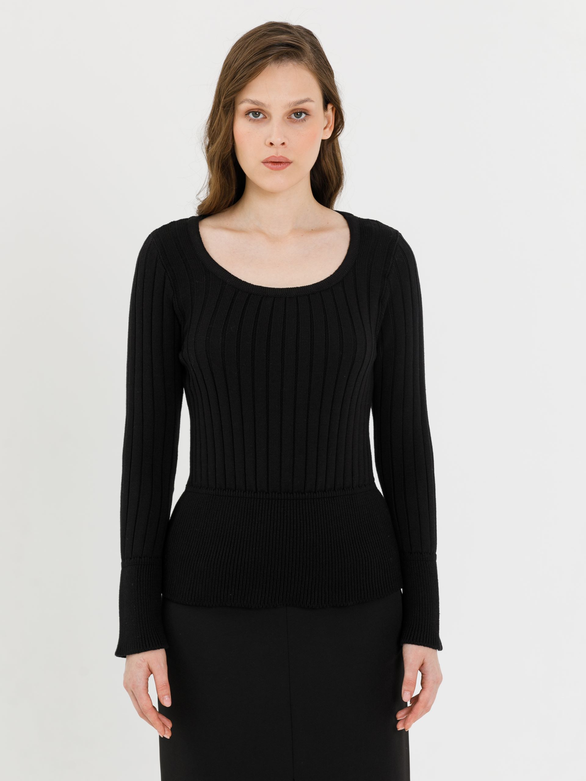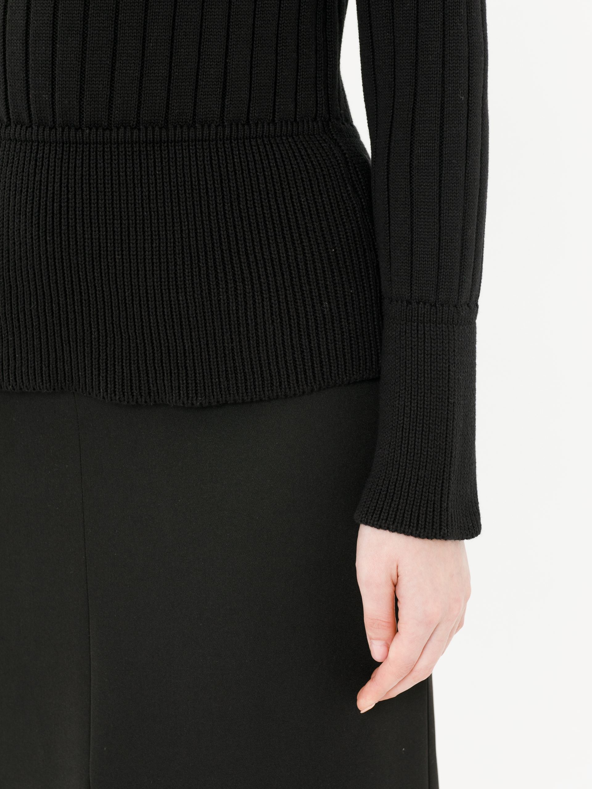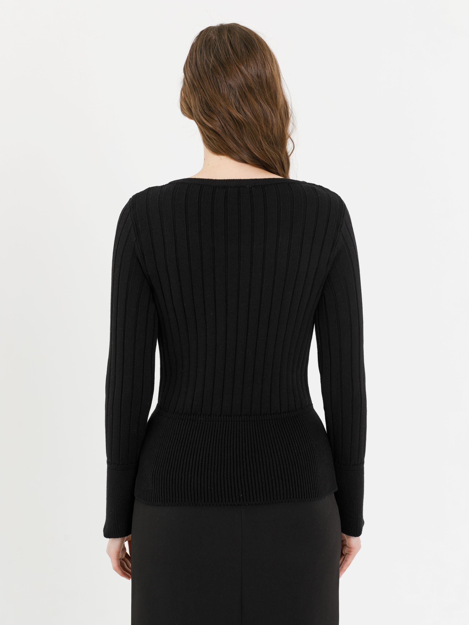 Джемпер вязаный чёрный от фабрики Priz. Модель прилегающего силуэта, круглый вырез горловины. Рукав втачной, длинный. Низ ровный. Комфорт и стиль на каждый день. Ремень-шнурок продается отдельно.