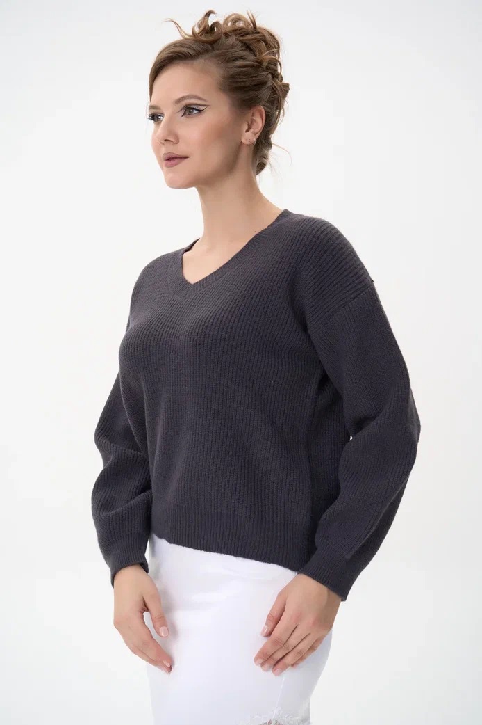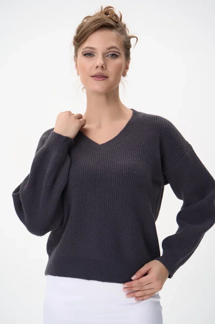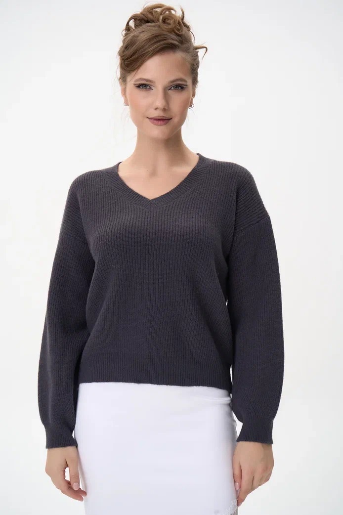 Джемпер вязаный из мягкого трикотажа в сером цвете