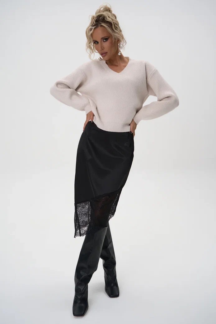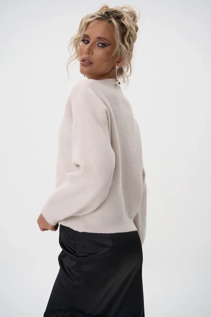Пуловер вязаный в цвете миндаль от бренда Elza с V-образным вырезом, который станет базой вашего осенне-зимнего гардероба. Модель выполнена из мягкой смесовой пряжи с высоким содержанием хлопка — приятной к телу и дышащей. Благодаря свободному силуэту и эластичной фактуре трикотажа, пуловер комфортно садится по фигуре разного типа — подчёркивает линию плеч, не обтягивает и создаёт аккуратный силуэт. Размер: единый (подходит на 44–52).