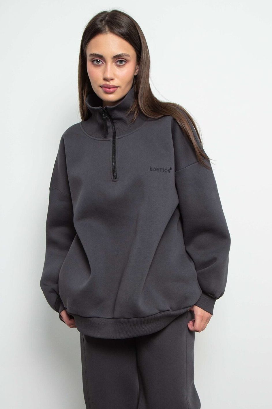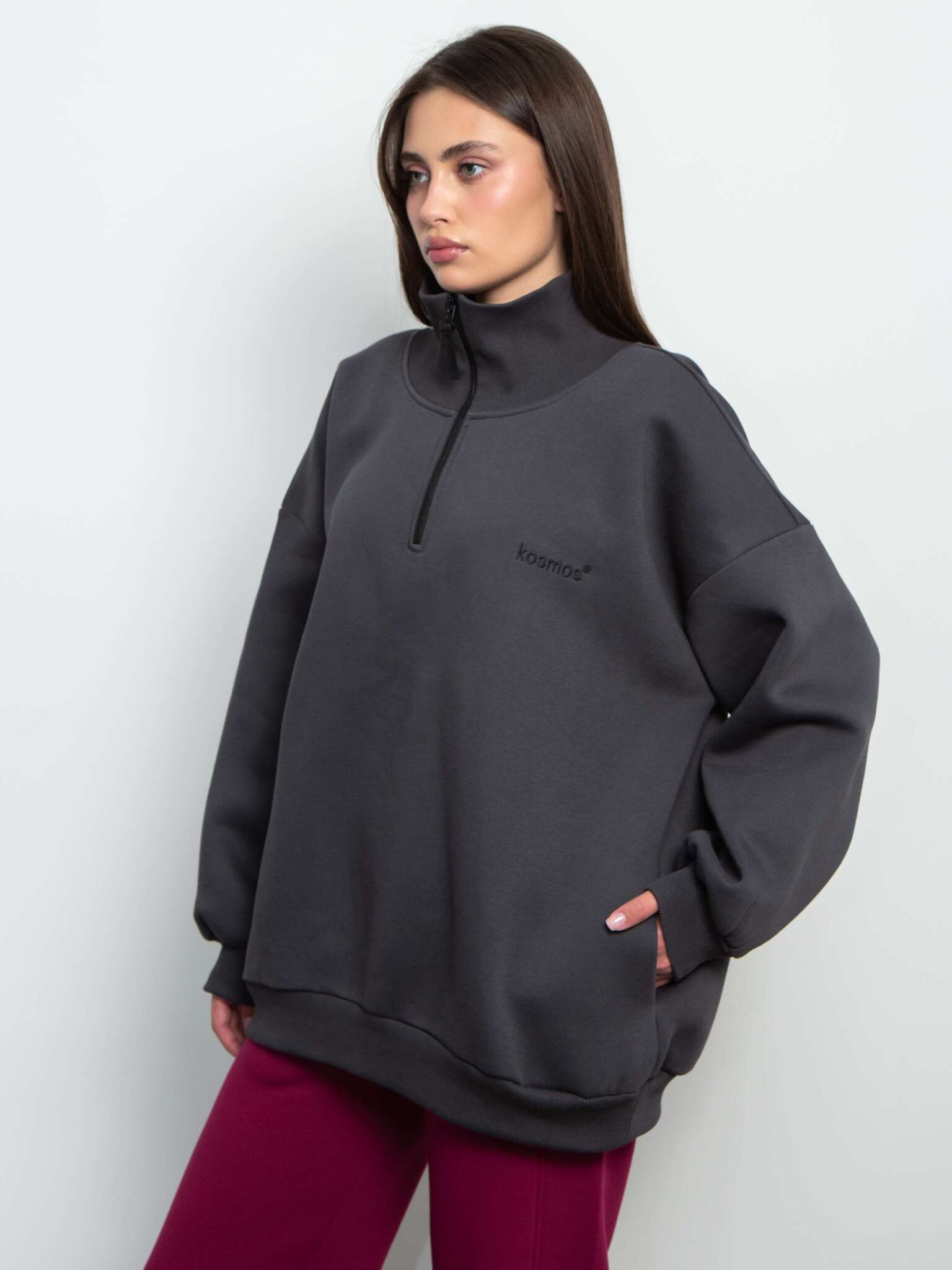 Джемпер тёмно-серый трикотажный со спущенными петлями