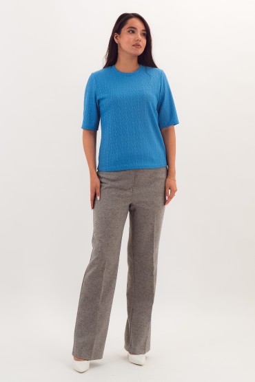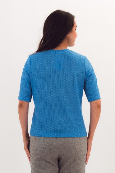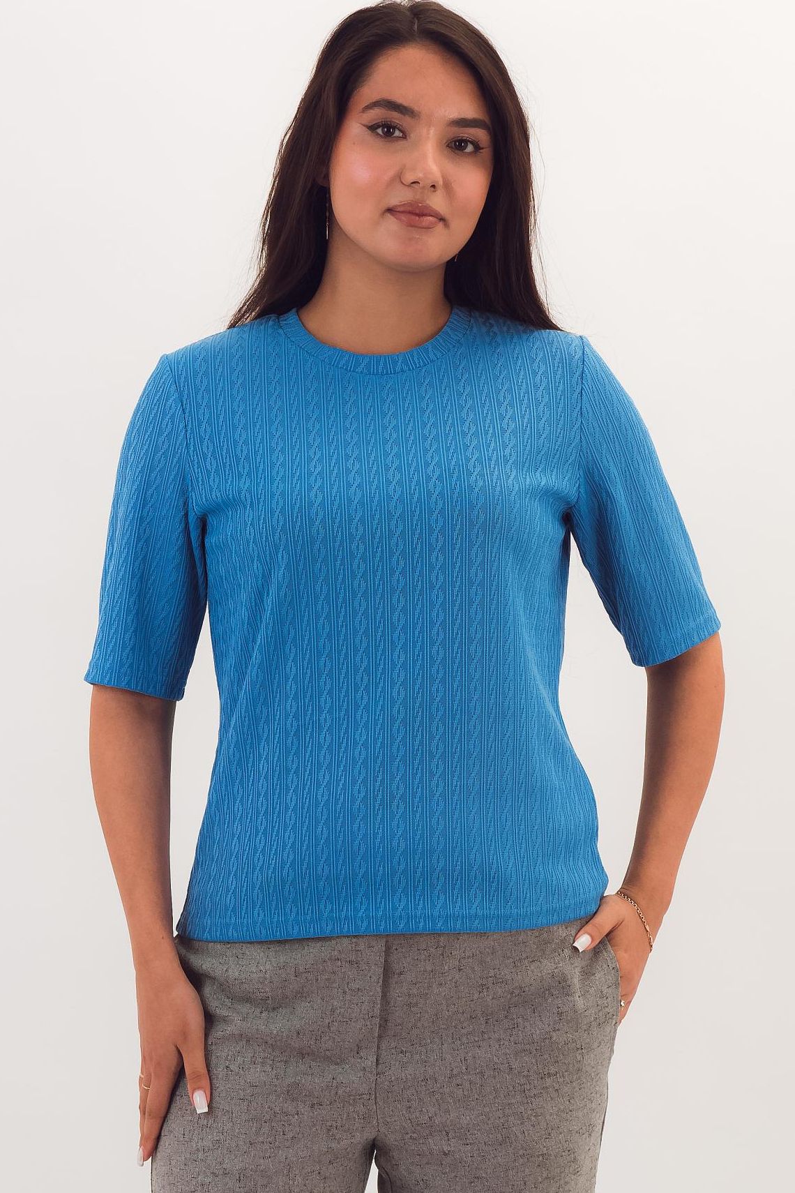 Футболка голубая из вязаного трикотажа от бренда Braslava. Модель прямого кроя, короткие втачные рукава. Круглый вырез горловины.Идеальный вариант на каждый день.