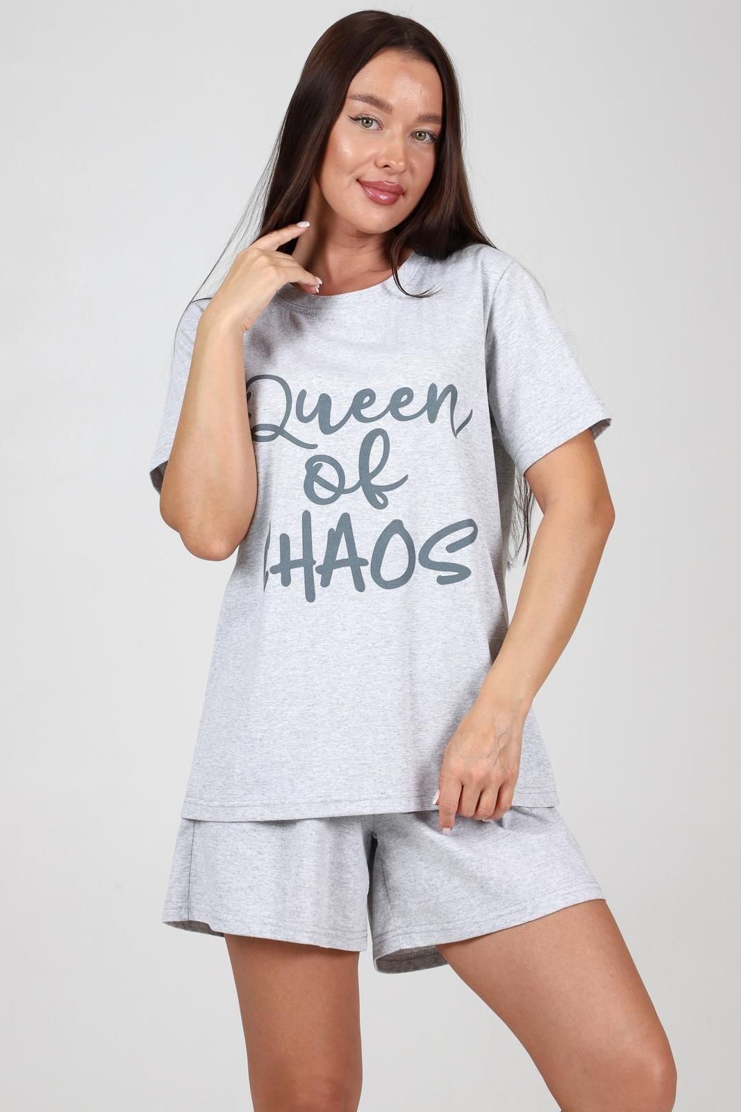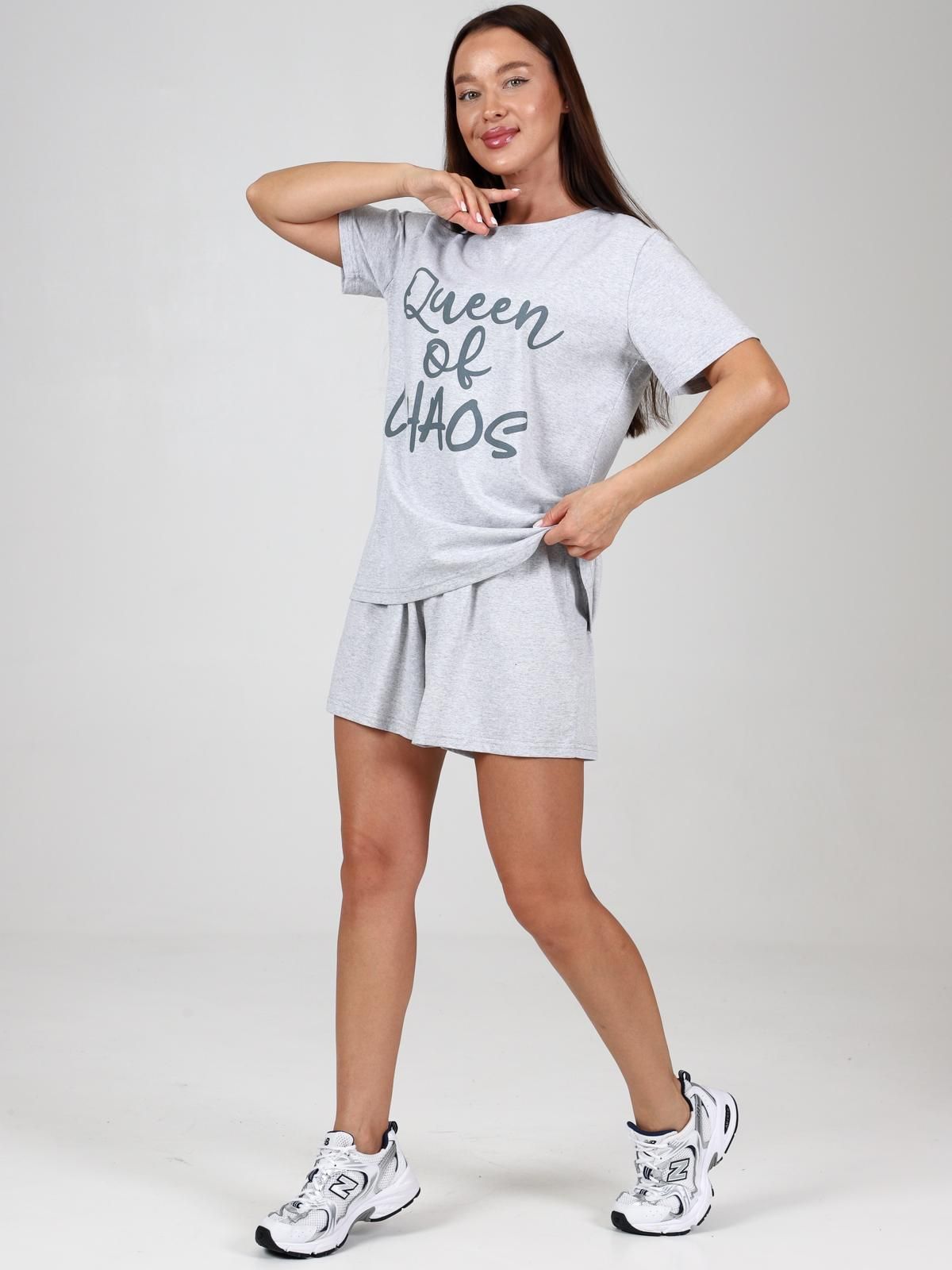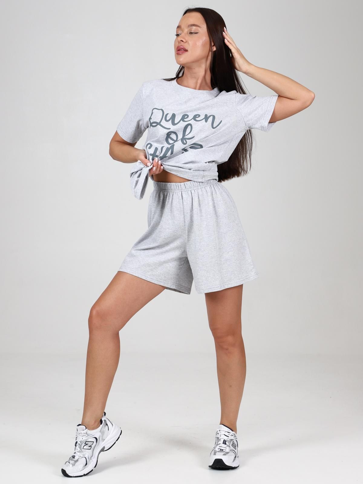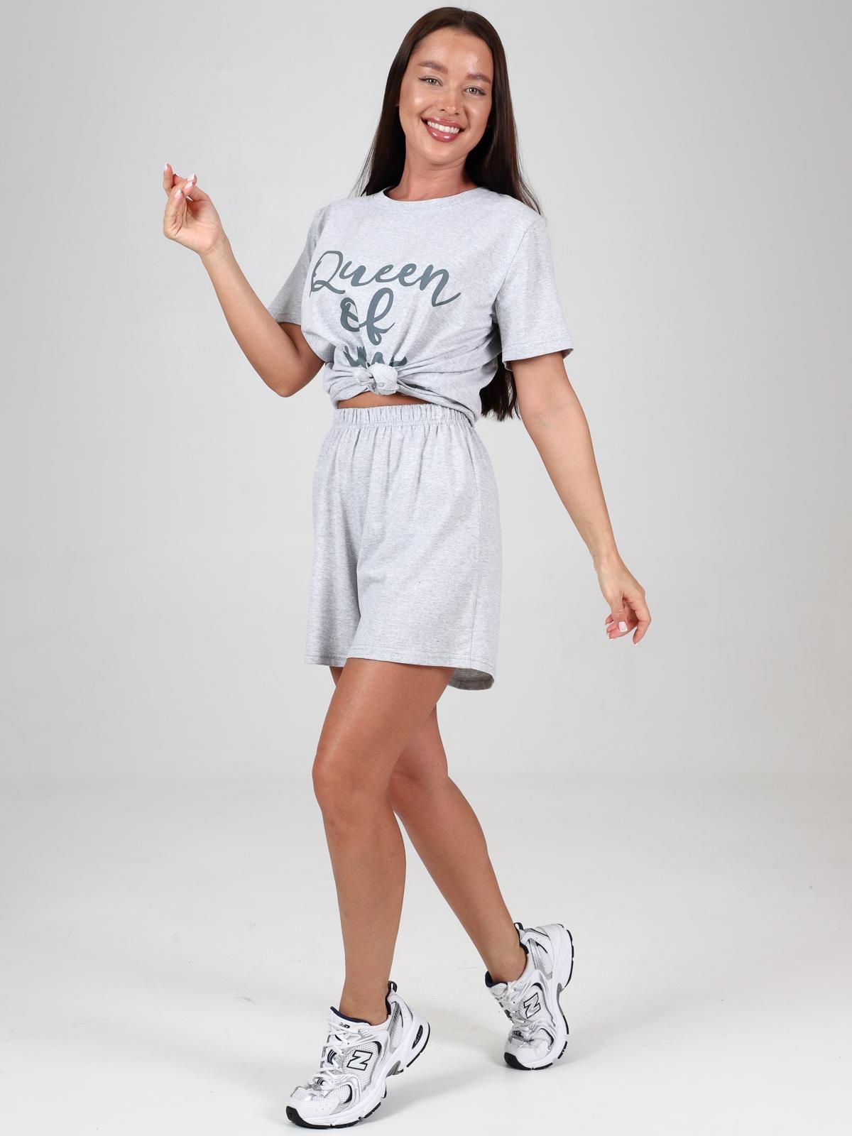 Костюм трикотажный с шортами в сером цвете от бренда Iv-capriz. На футболке принт. Горловина округлой формы. Короткие рукава. Шорты с эластичной резинкой. Идеальный вариант на каждый день.