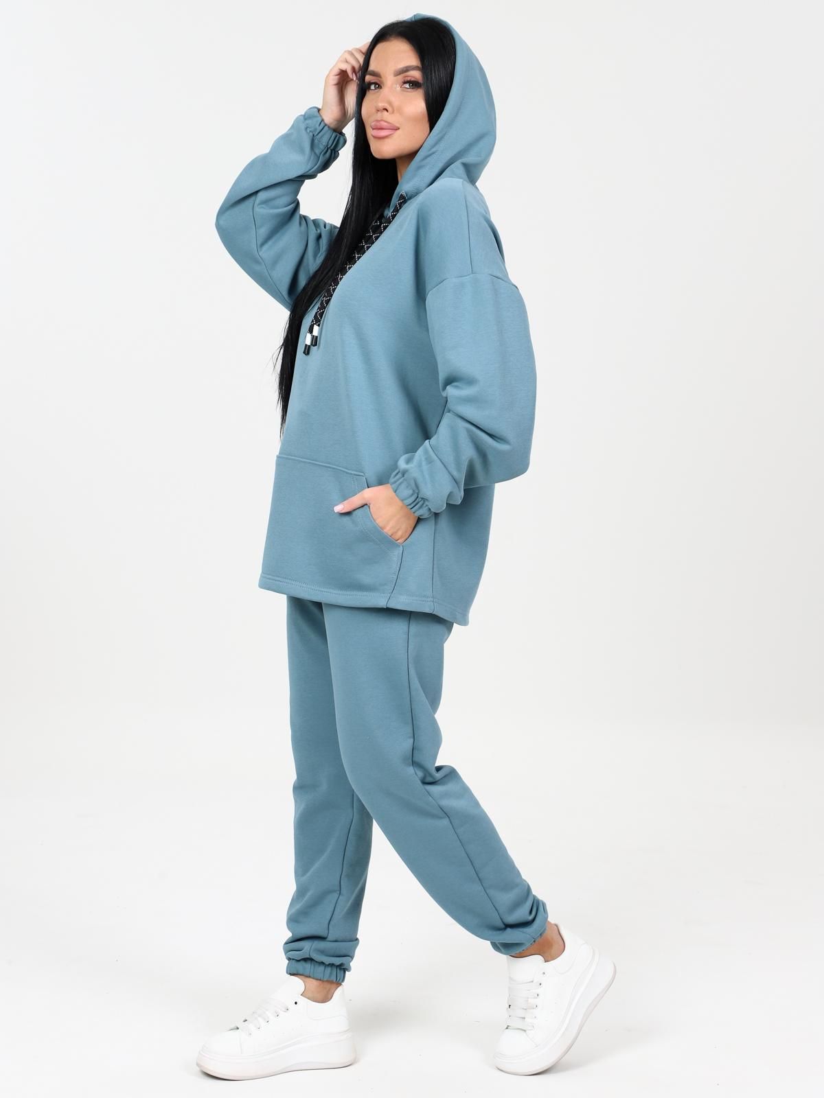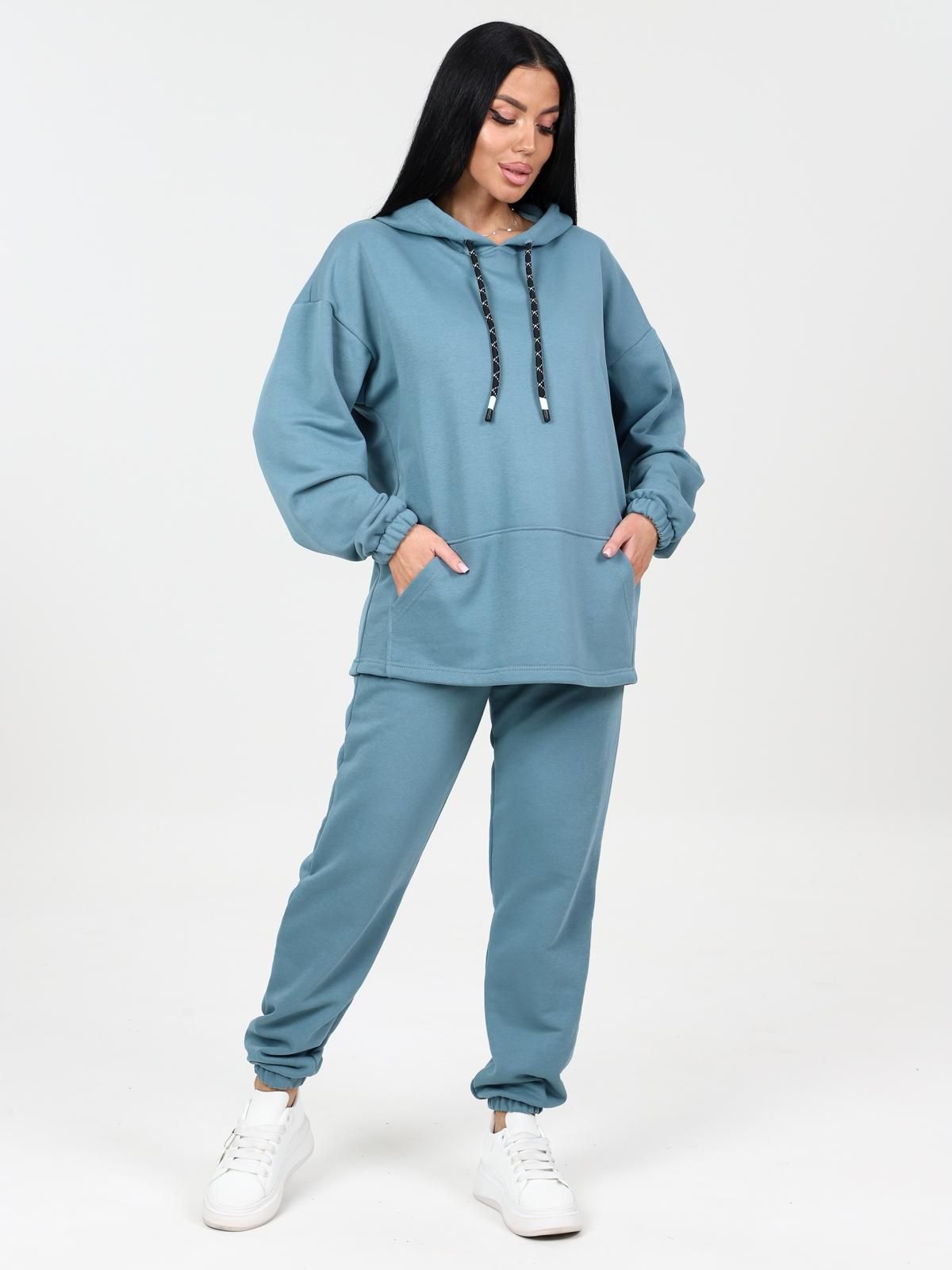 Костюм трикотажный с брюками от бренда Iv-capriz. Кофта прямого силуэта со спущенной линией плеча. Капюшон с завязками. Рукав длинный на манжете. По переду карман-кенгуру. Брюки с карманами в боковых швах, верх на поясе с эластичной тесьмой. Стильный вариант на каждый день.