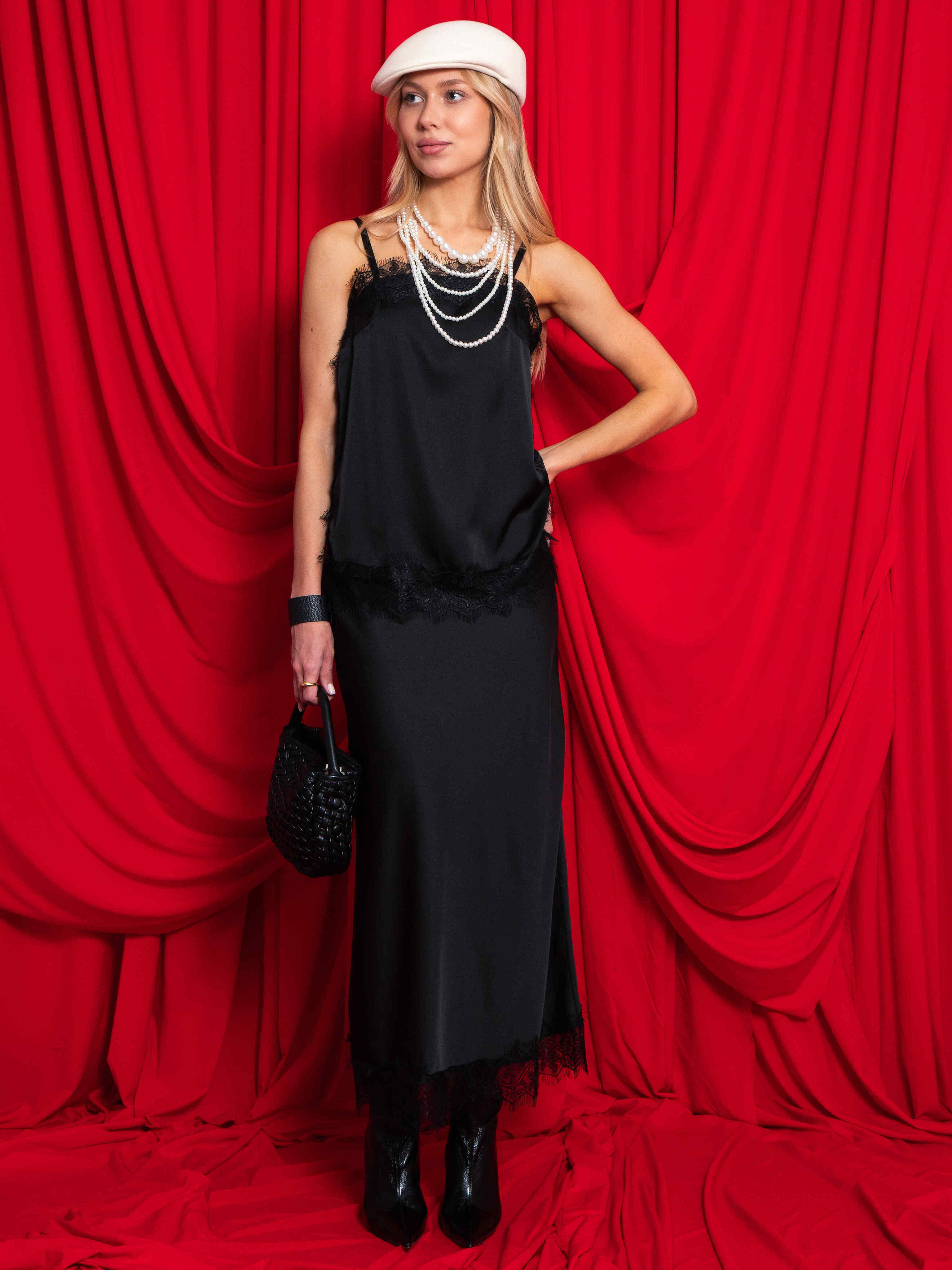 Топ чёрный в бельевом стиле на тонких бретелях с кружевом
