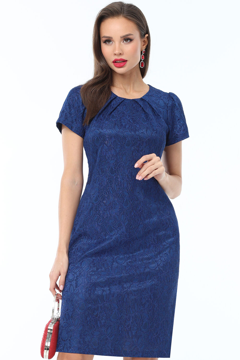 Платье тёмно-синее гипюровое с коротким рукавом Ода моде, хит