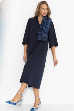 Платье трикотажное чёрное с поясом Роберта №4 горох