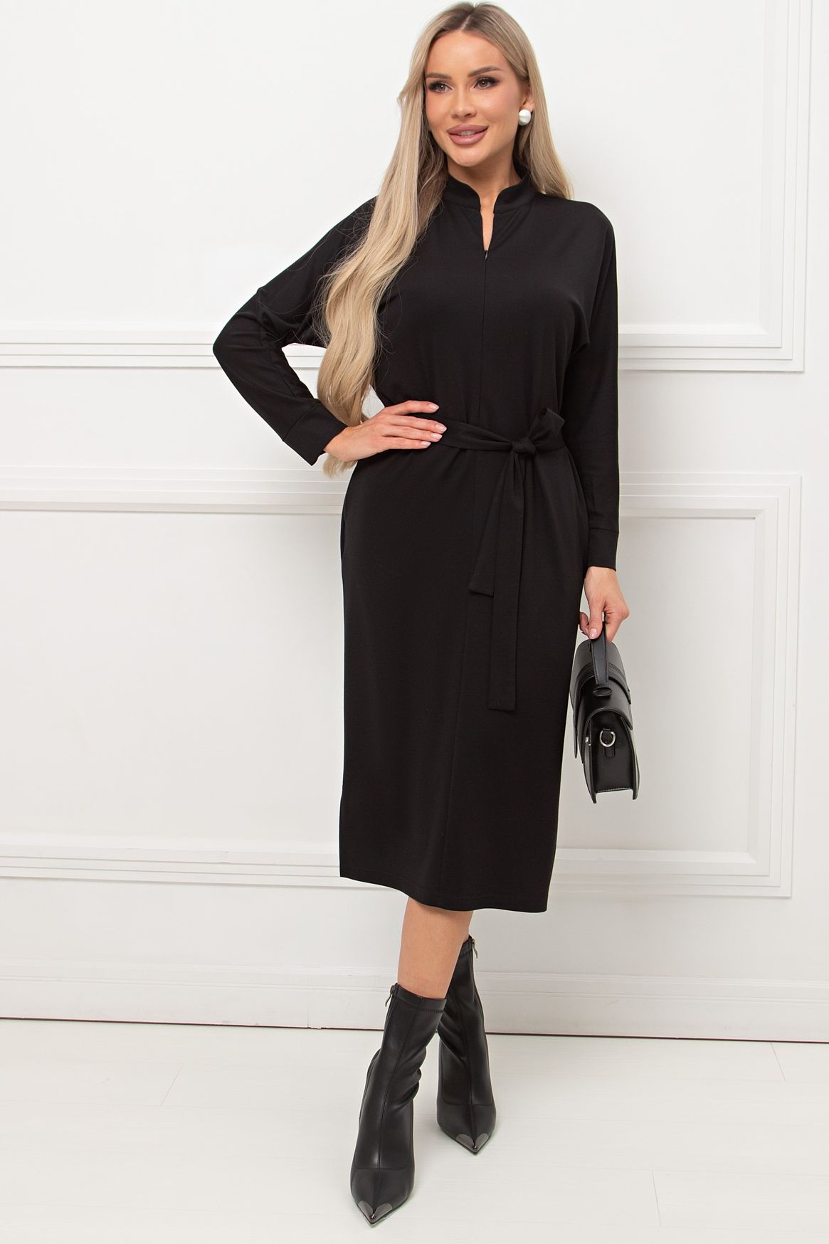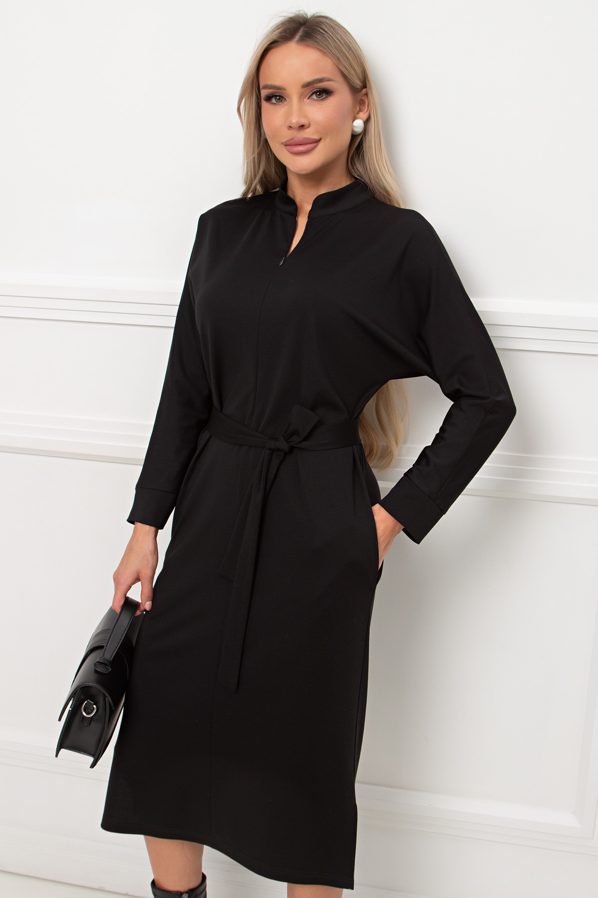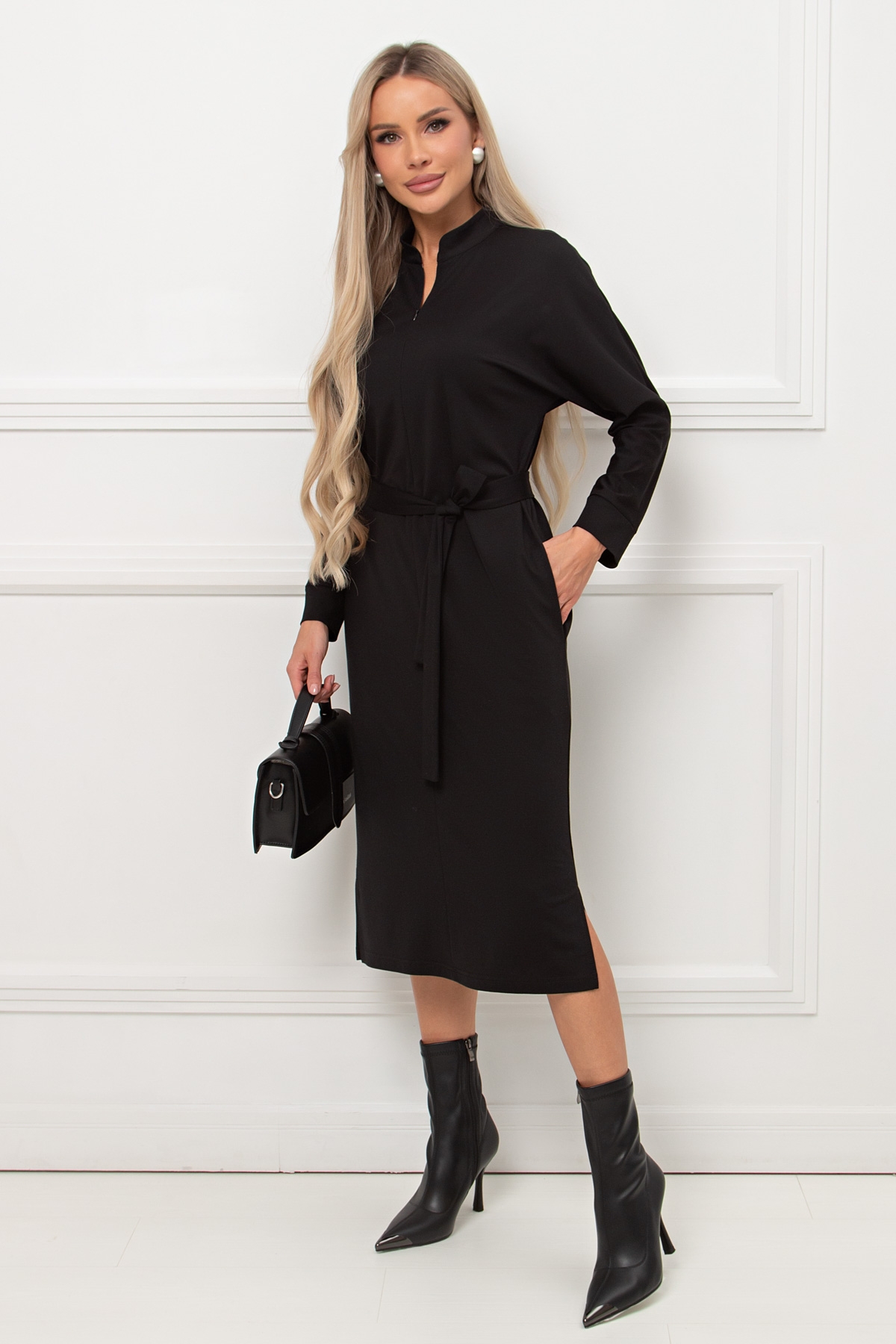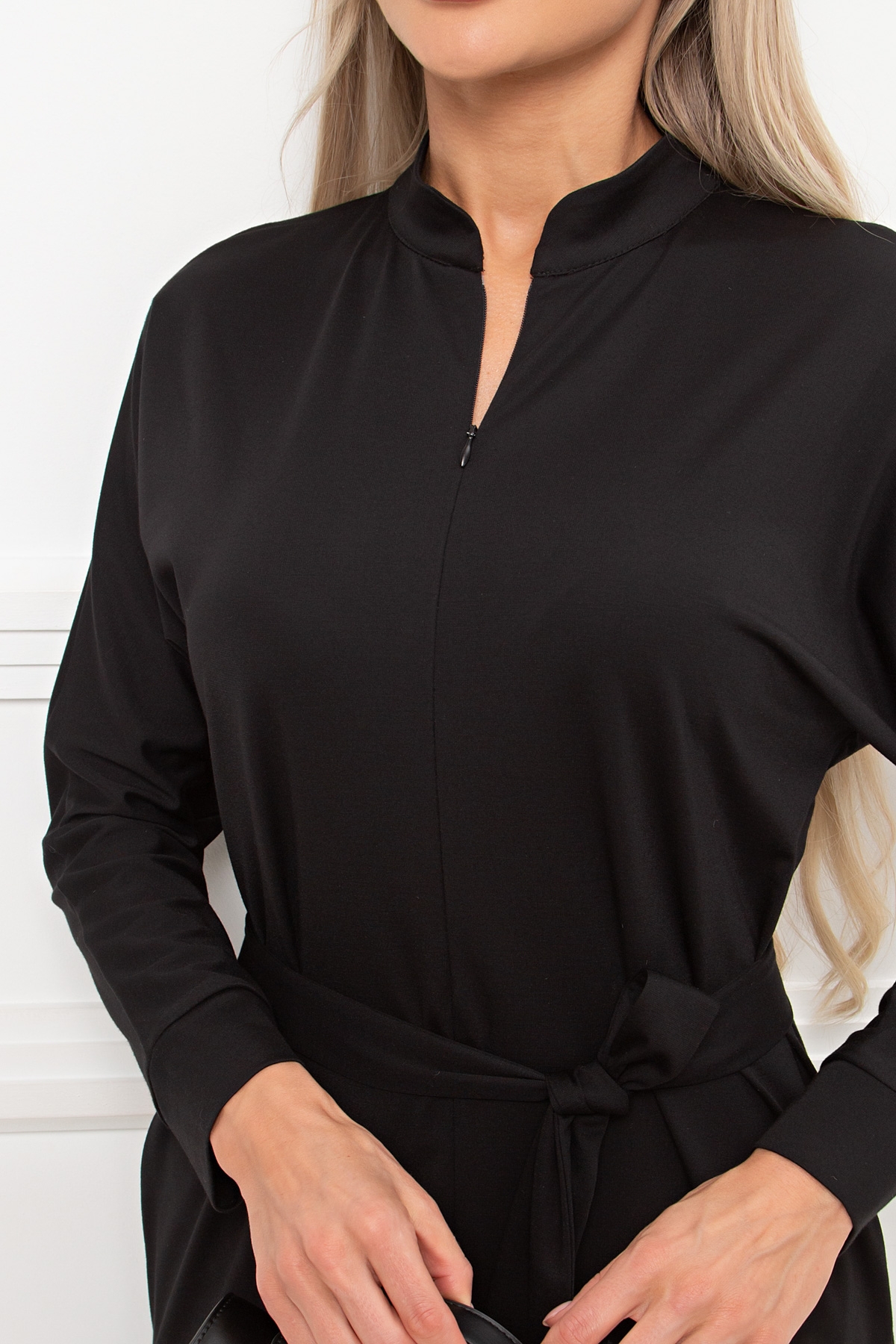Платье трикотажное чёрное с поясом Кэнти №8