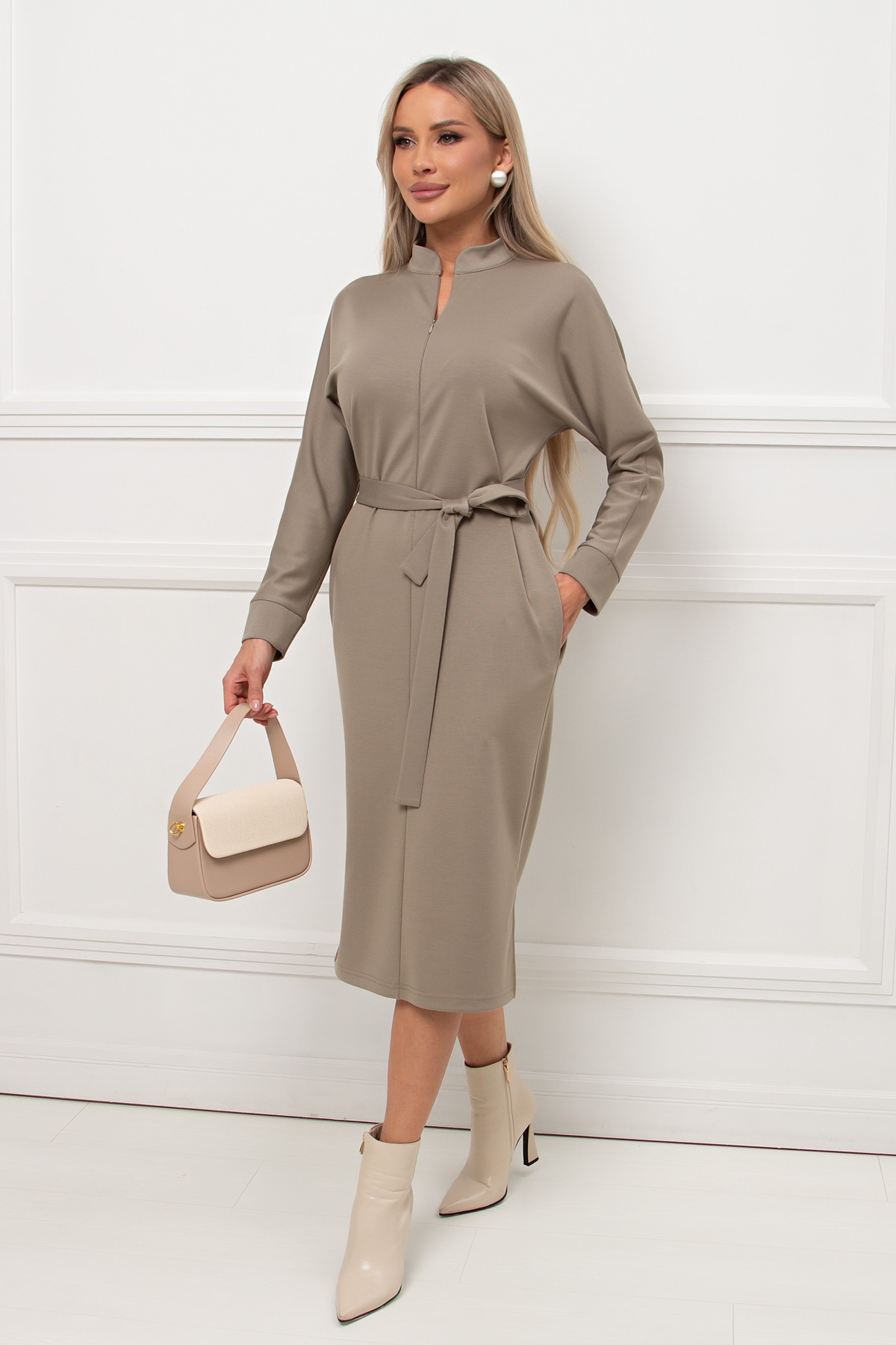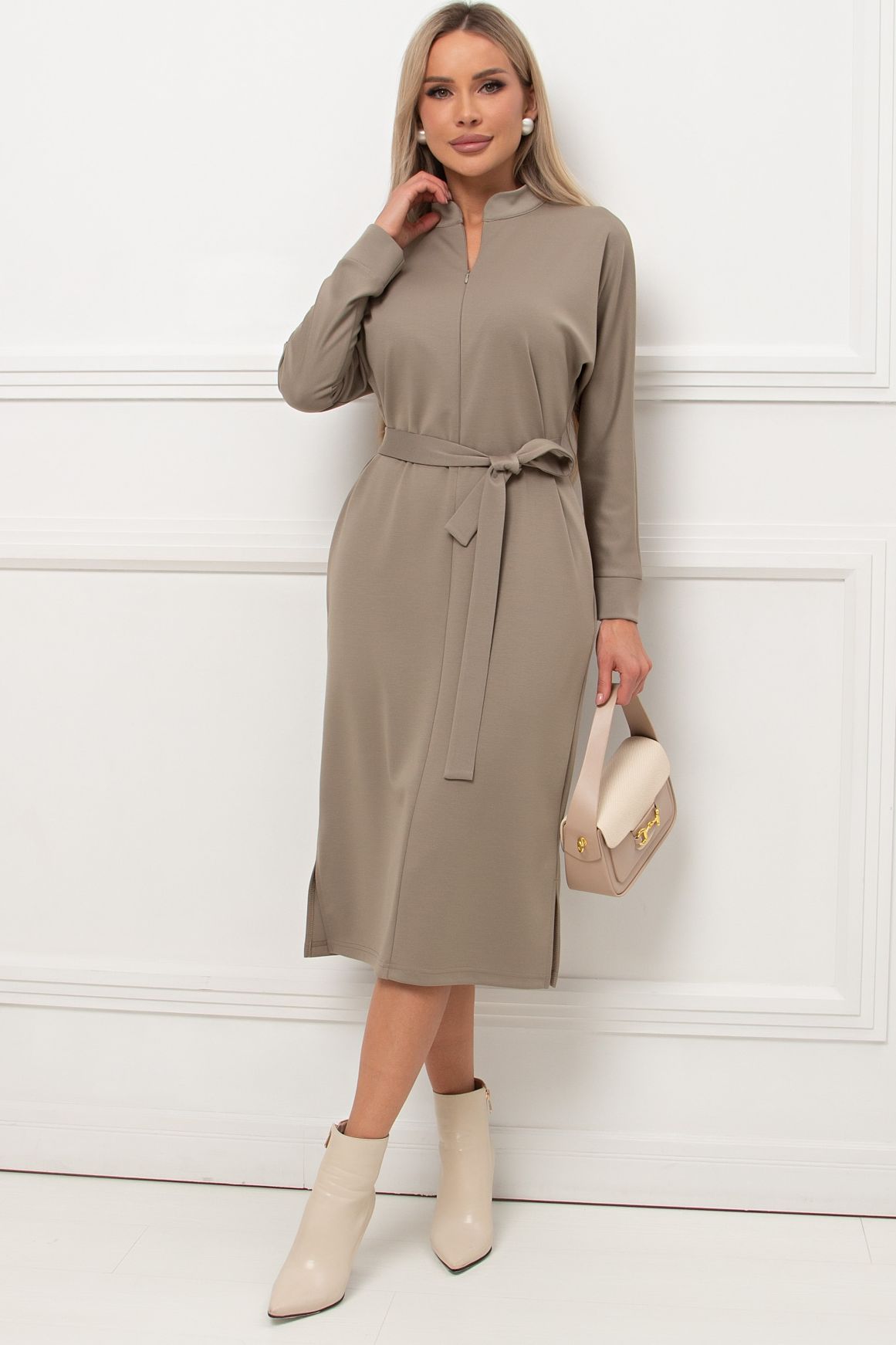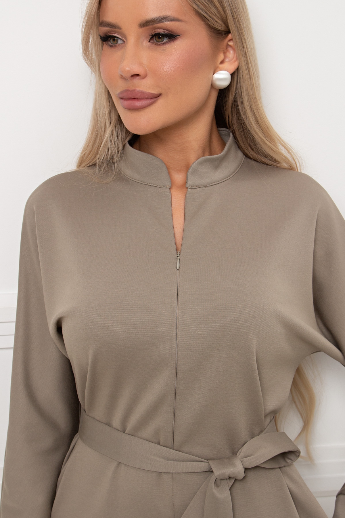 Платье трикотажное оливковое с поясом Кэнти №9