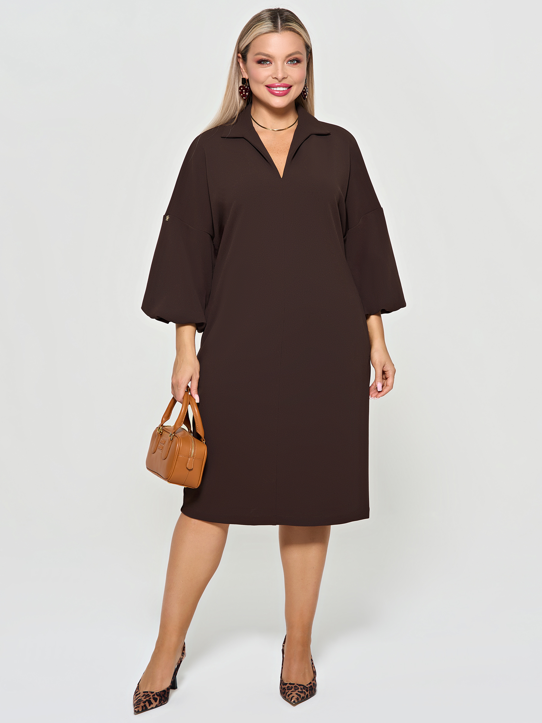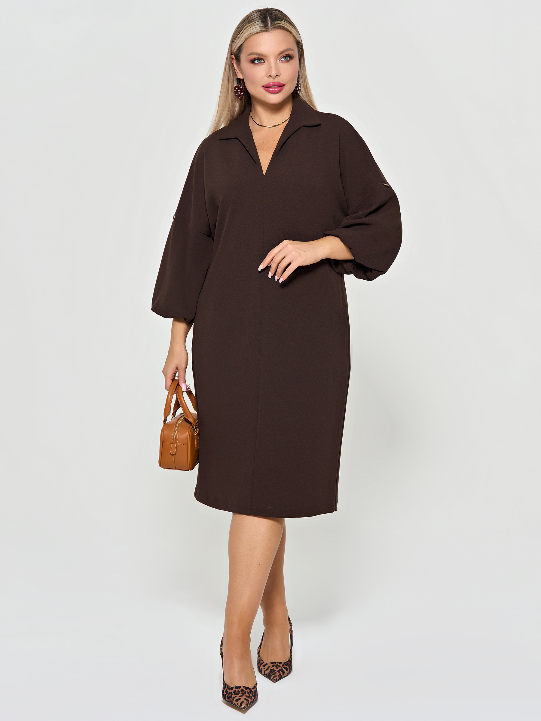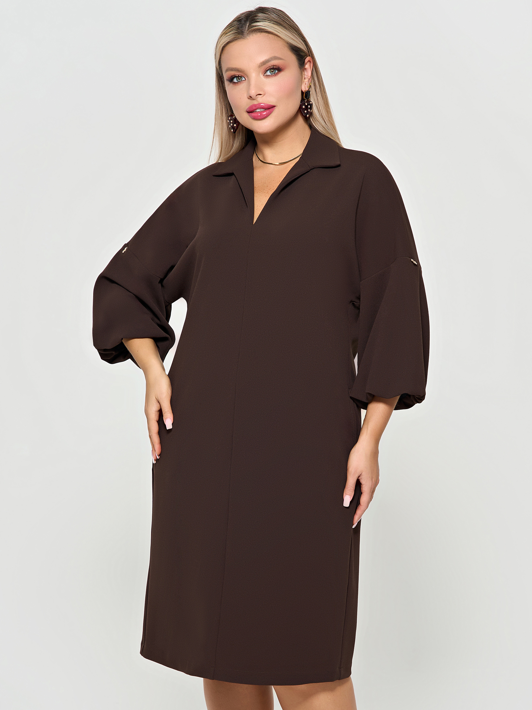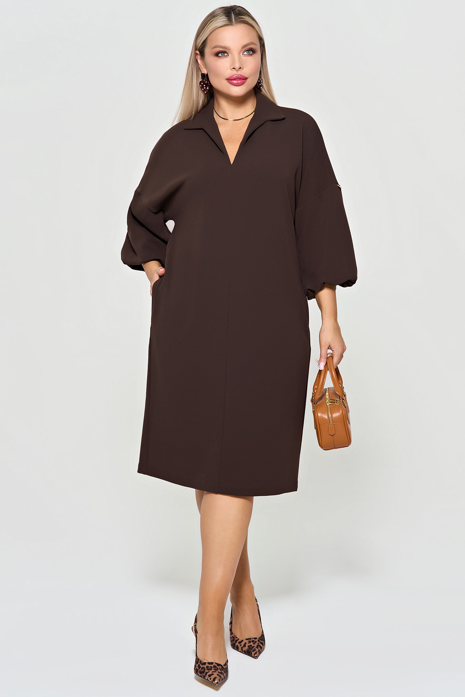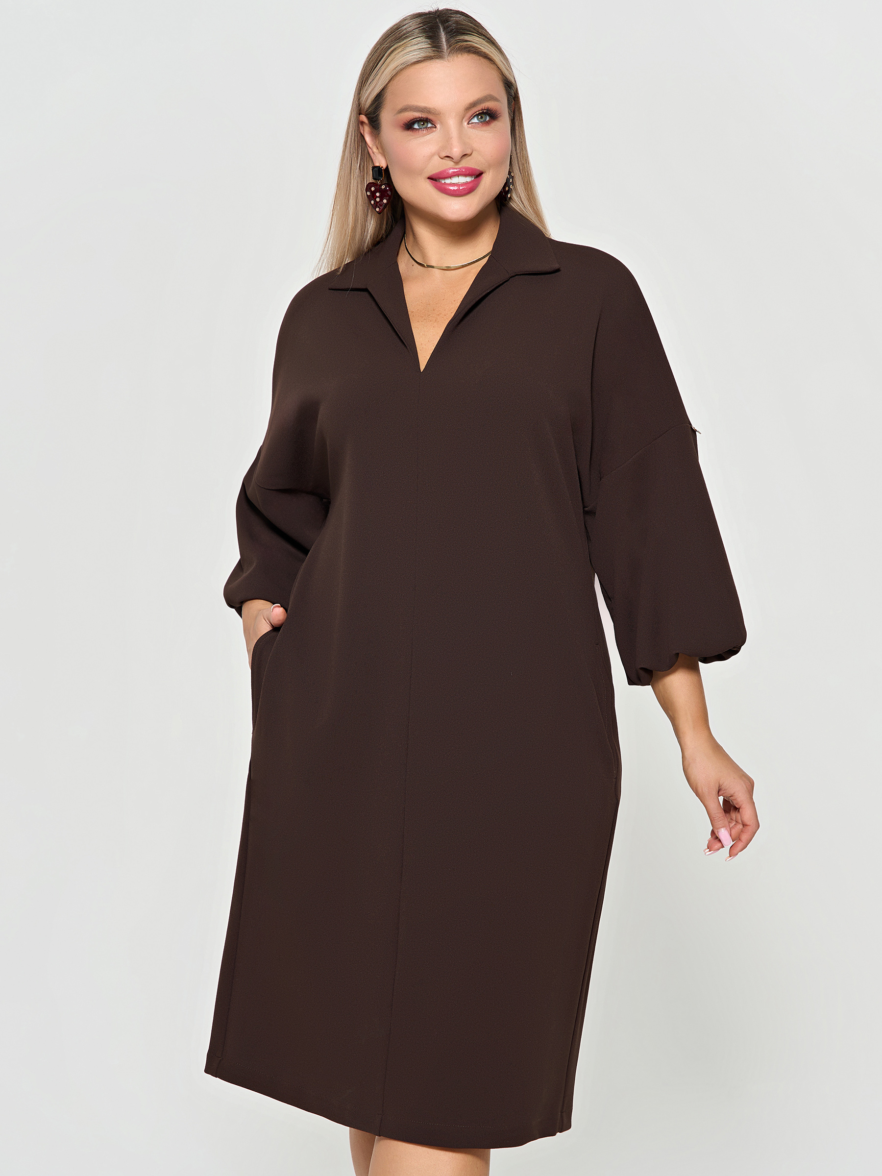 Платье трикотажное с карманами шоколадного цвета
