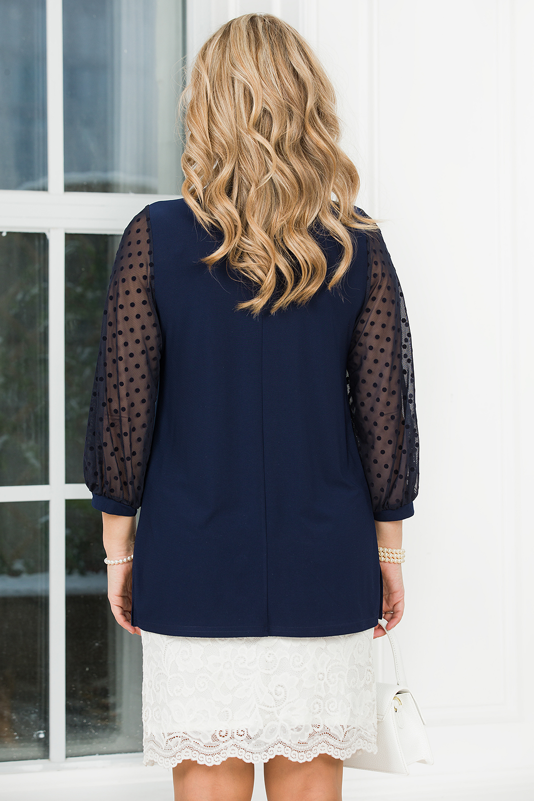 Туника тёмно-синяя с рукавами из сетки