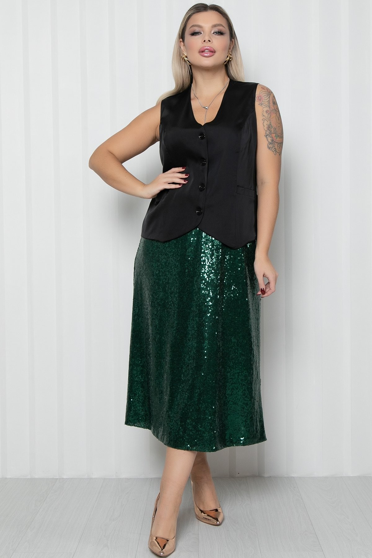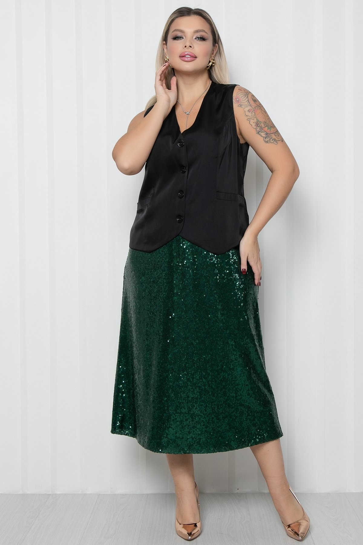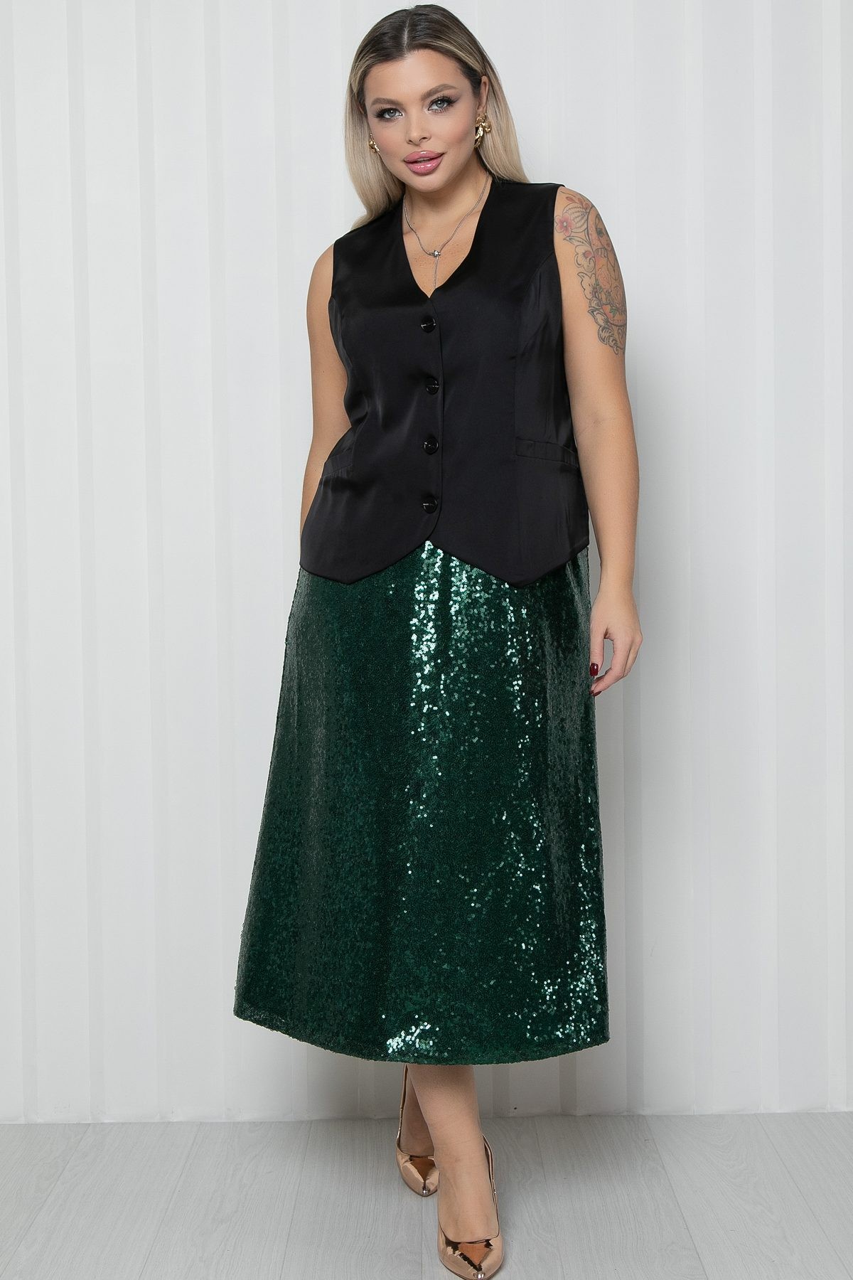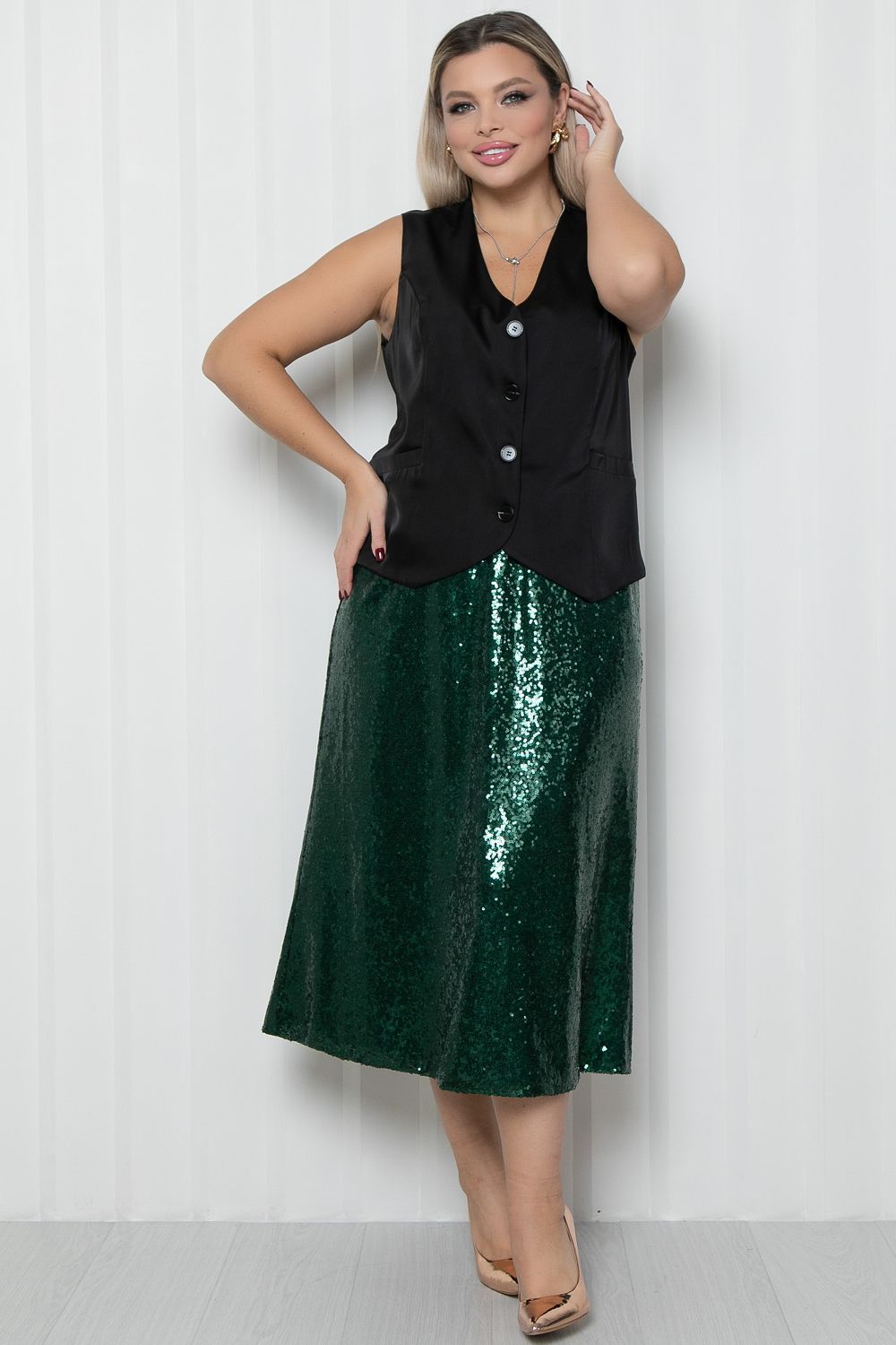 Юбка длинная зелёная из пайеток