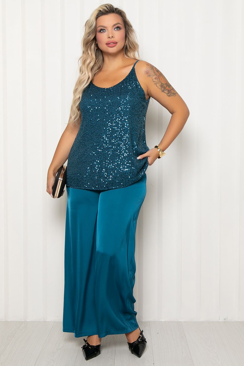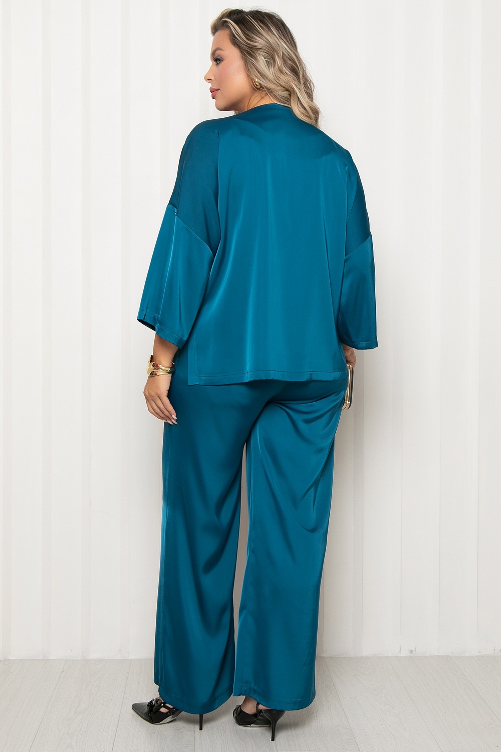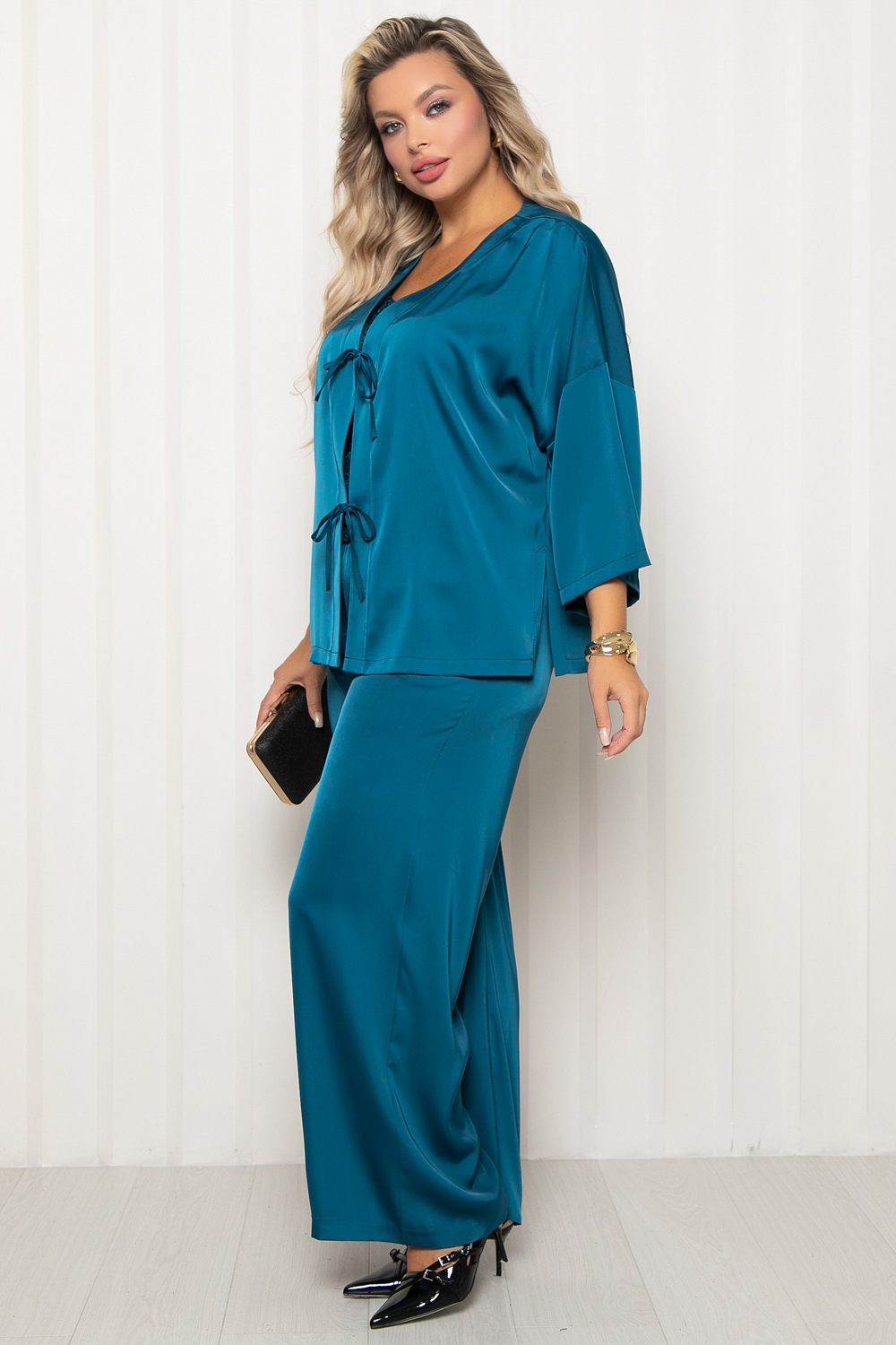 Брюки-палаццо из плотного шёлка цвета морская волна