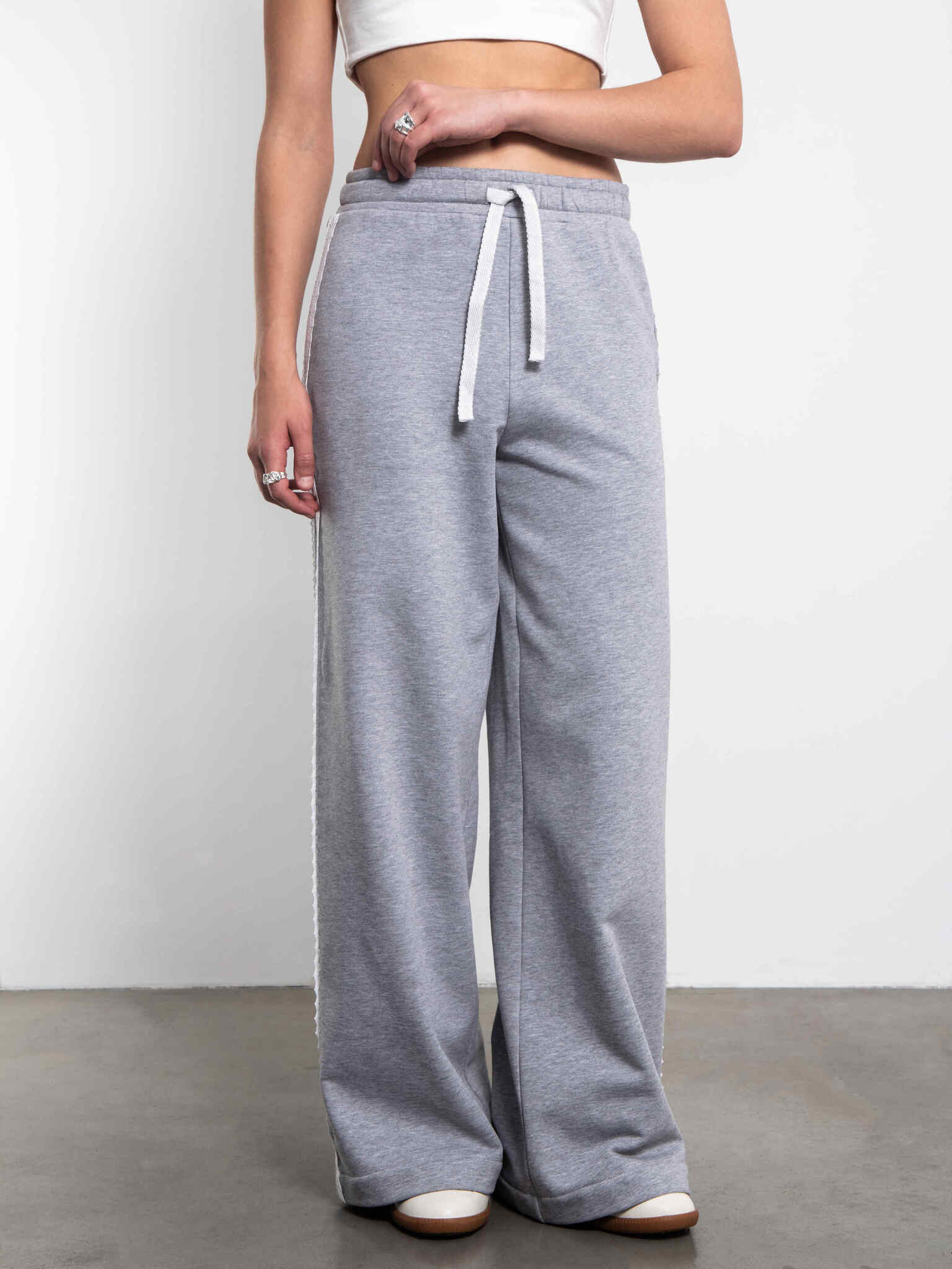 Cвитшот серый из футера с кружевом