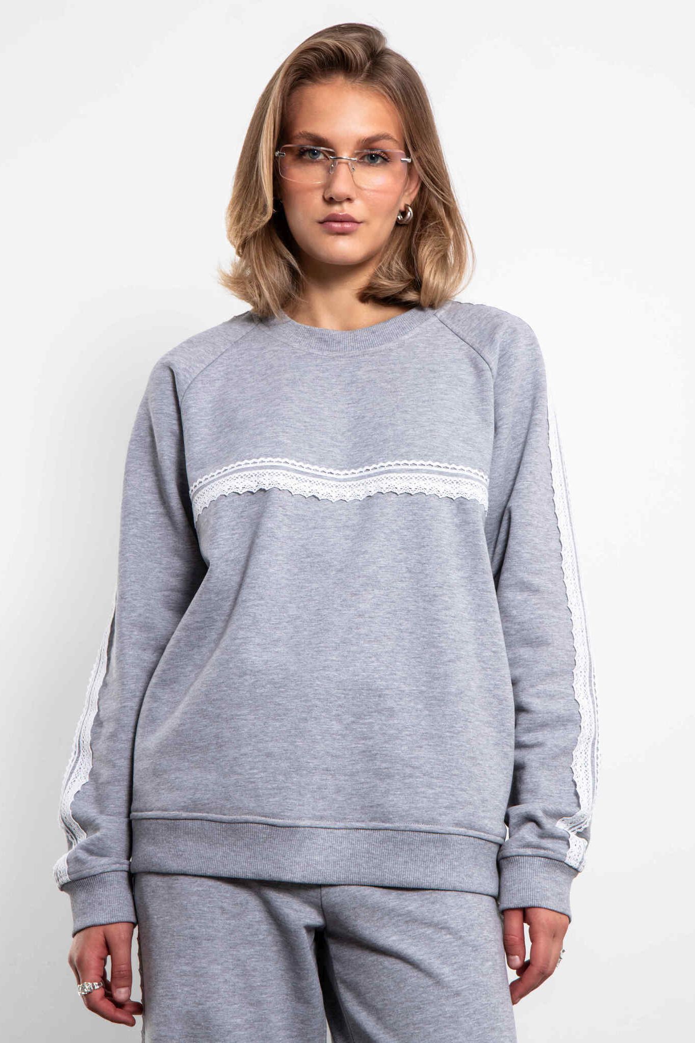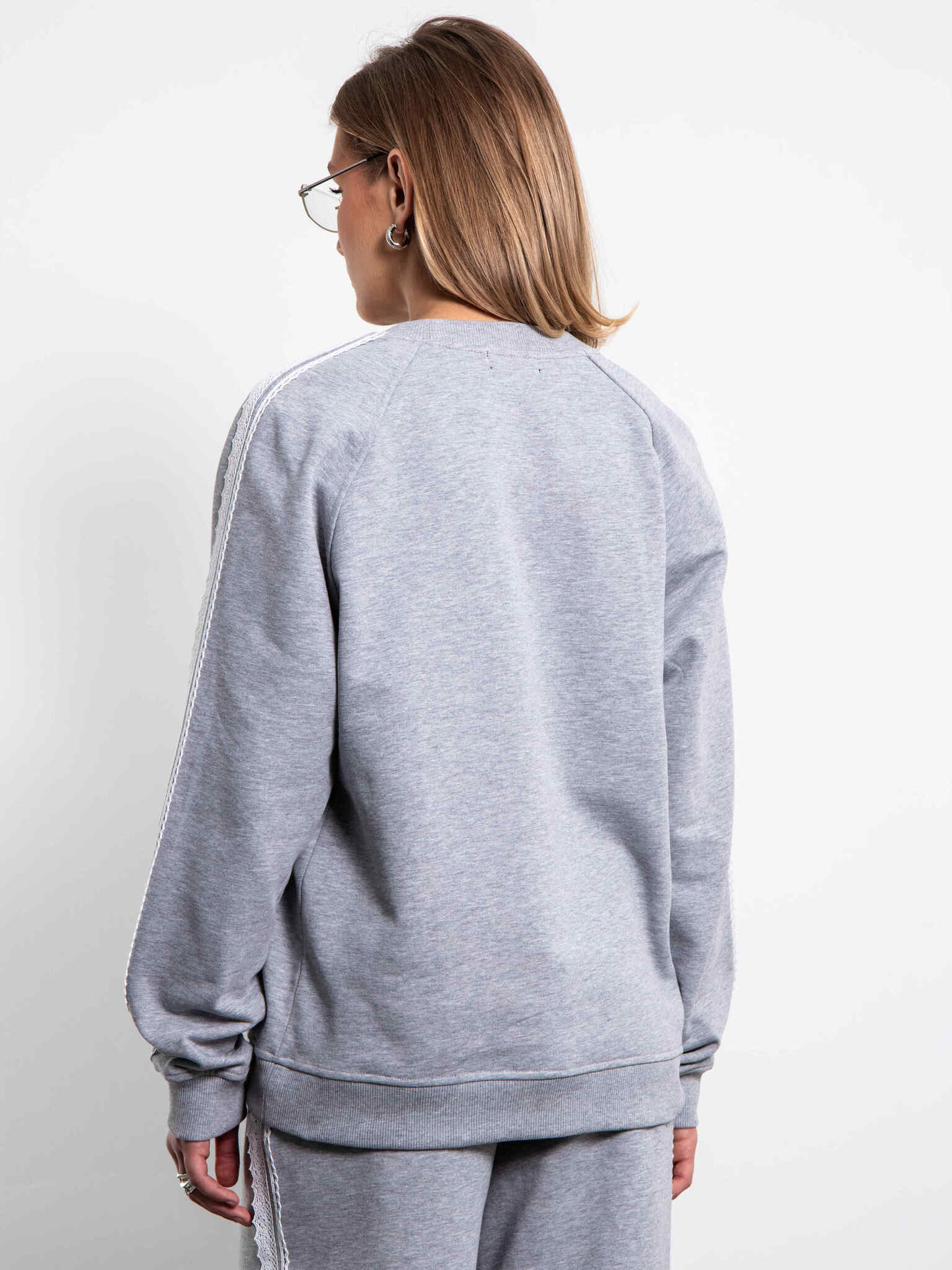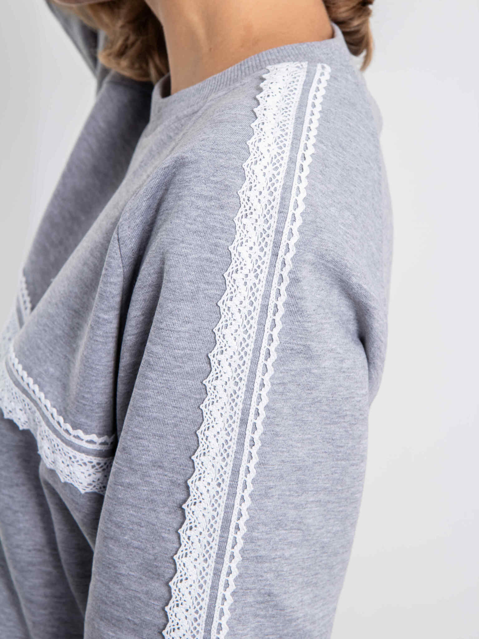 Cвитшот серый из футера с кружевом