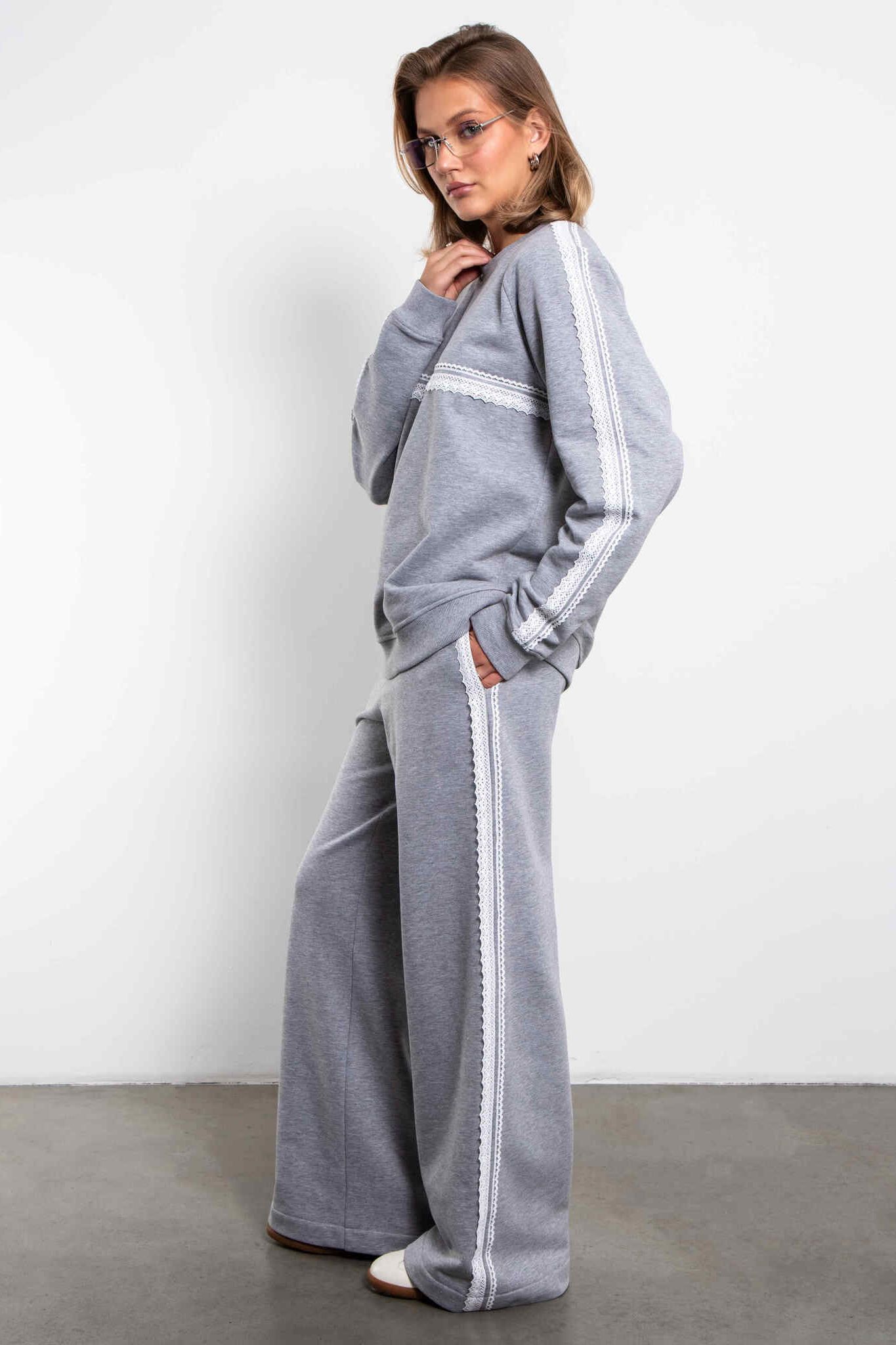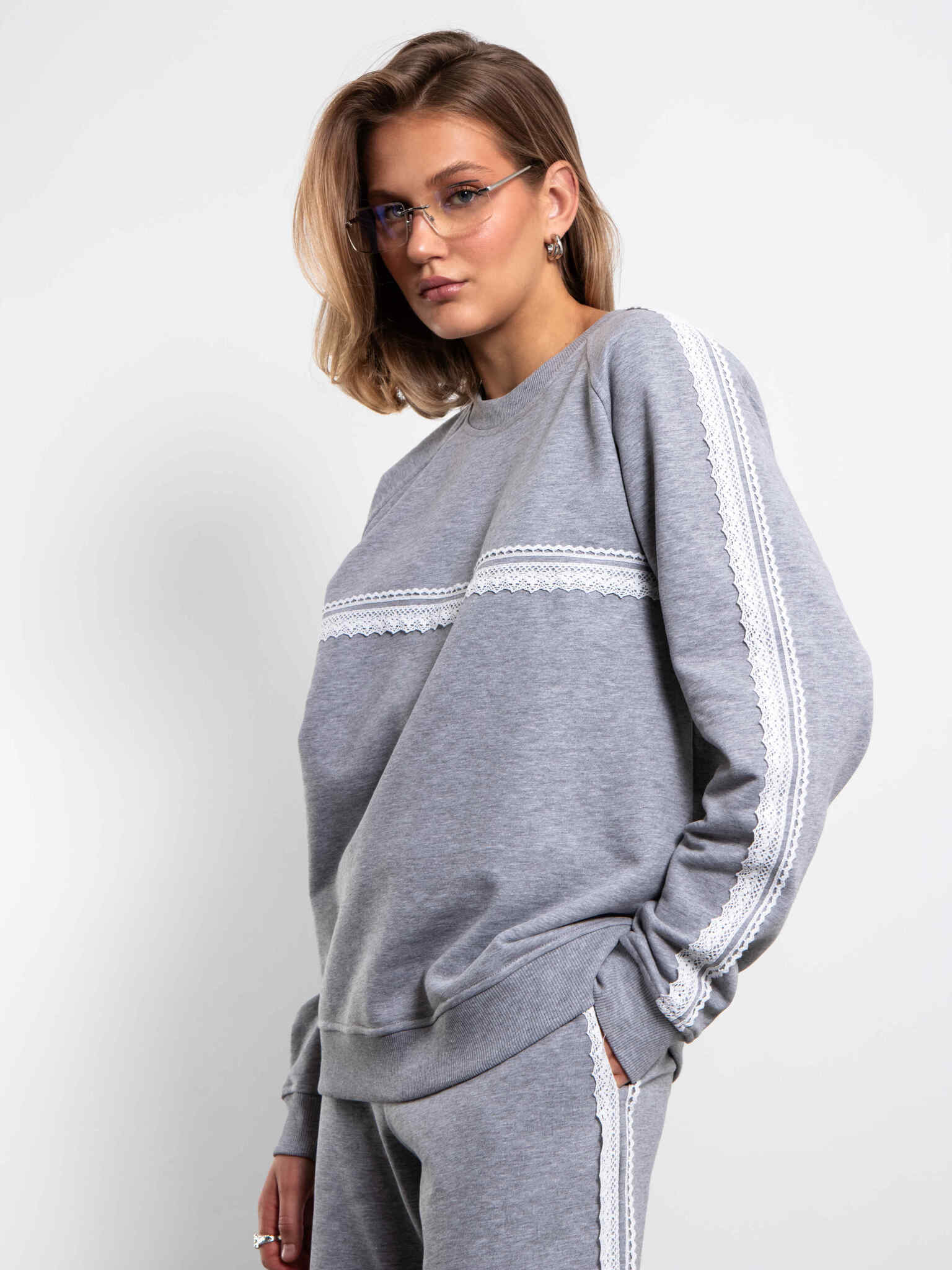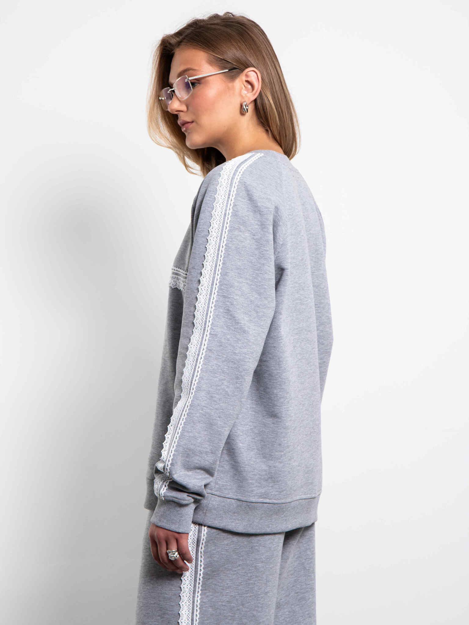 Cвитшот серый из футера с кружевом