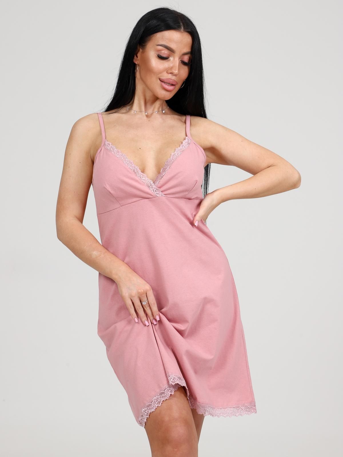Сорочка ночная на бретелях от бренда Iv-capriz. Топ полуприлегающего силуэта, выполнена из трикотажного полотна кулирка цвета сухая роза. V-образный вырез. Идеальный вариант для комфртного сна.