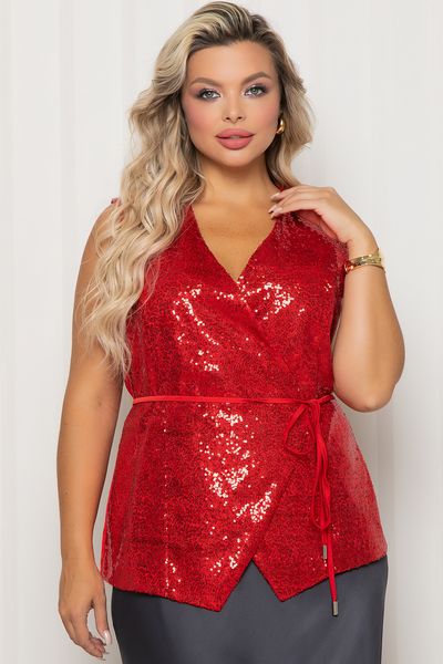 Жилет красный с пайетками на запах