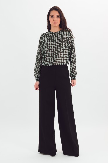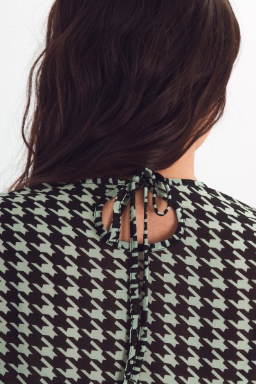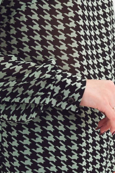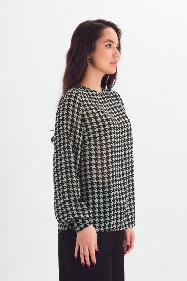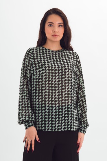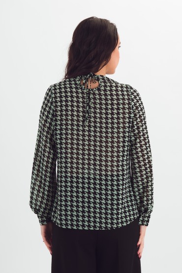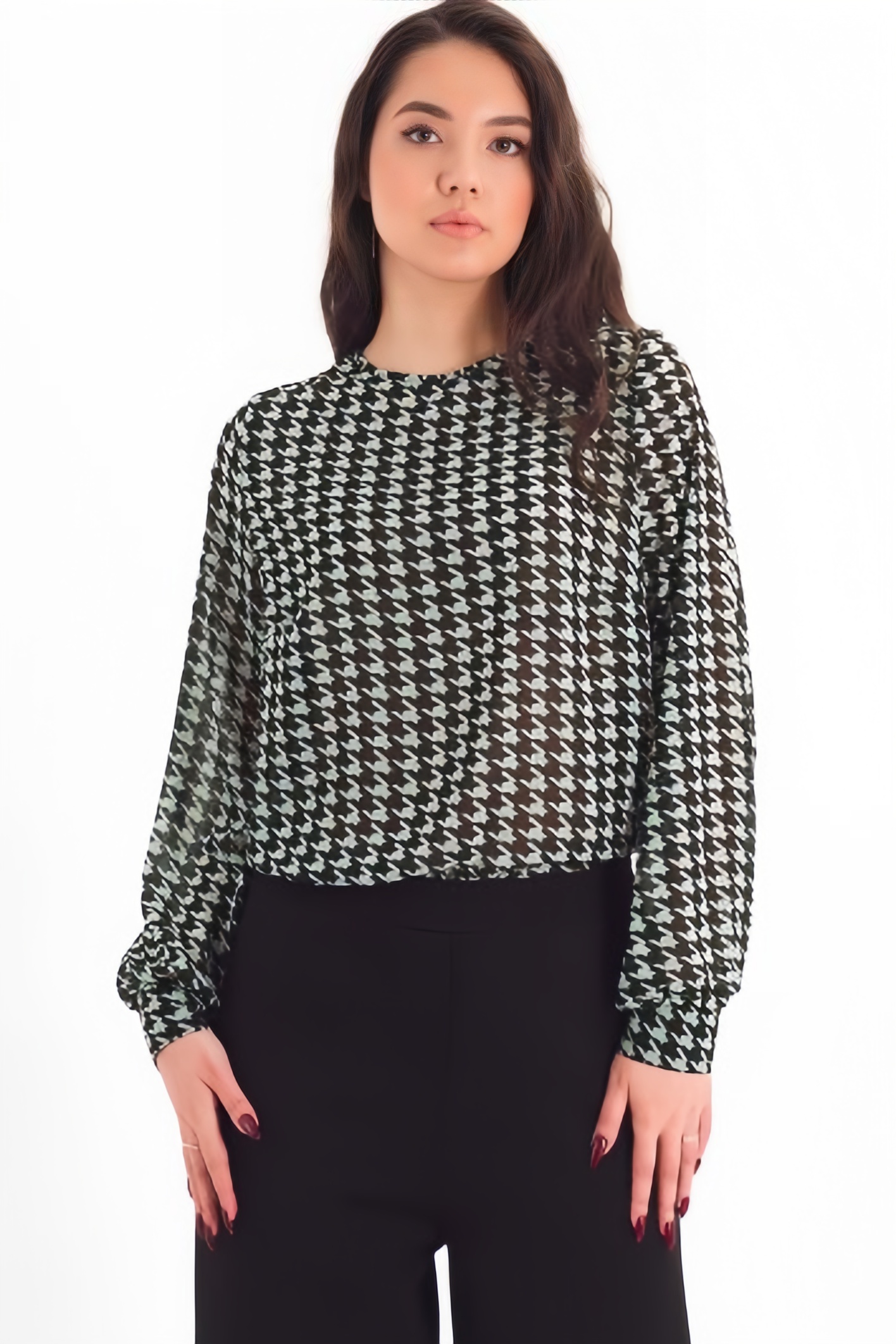 Блузка шифоновая чёрно-зелёная с длинными рукавами