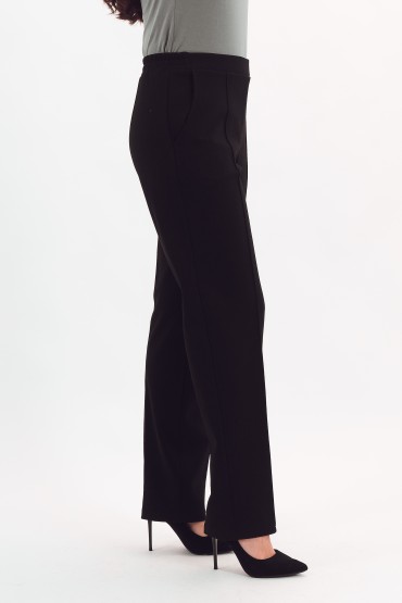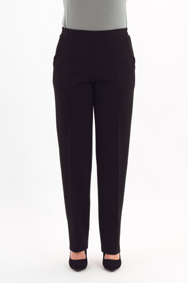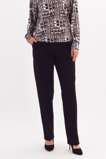 Брюки классические чёрные трикотажные от бренда Braslava невероятно удобны за счет удобного пояса без застежки и с резинкой. В функциональные карманы можно спрятать нужные мелочи. Идеальный вариант на каждый день.