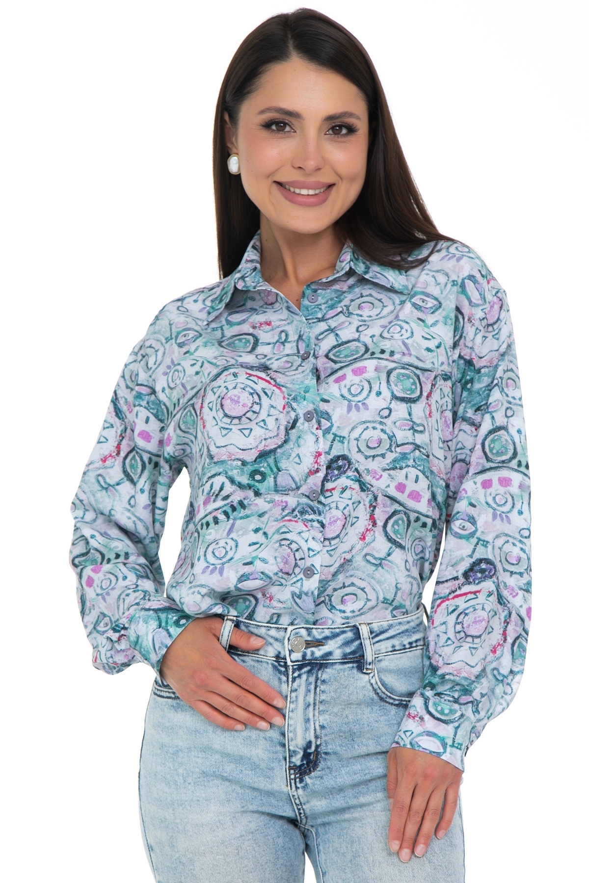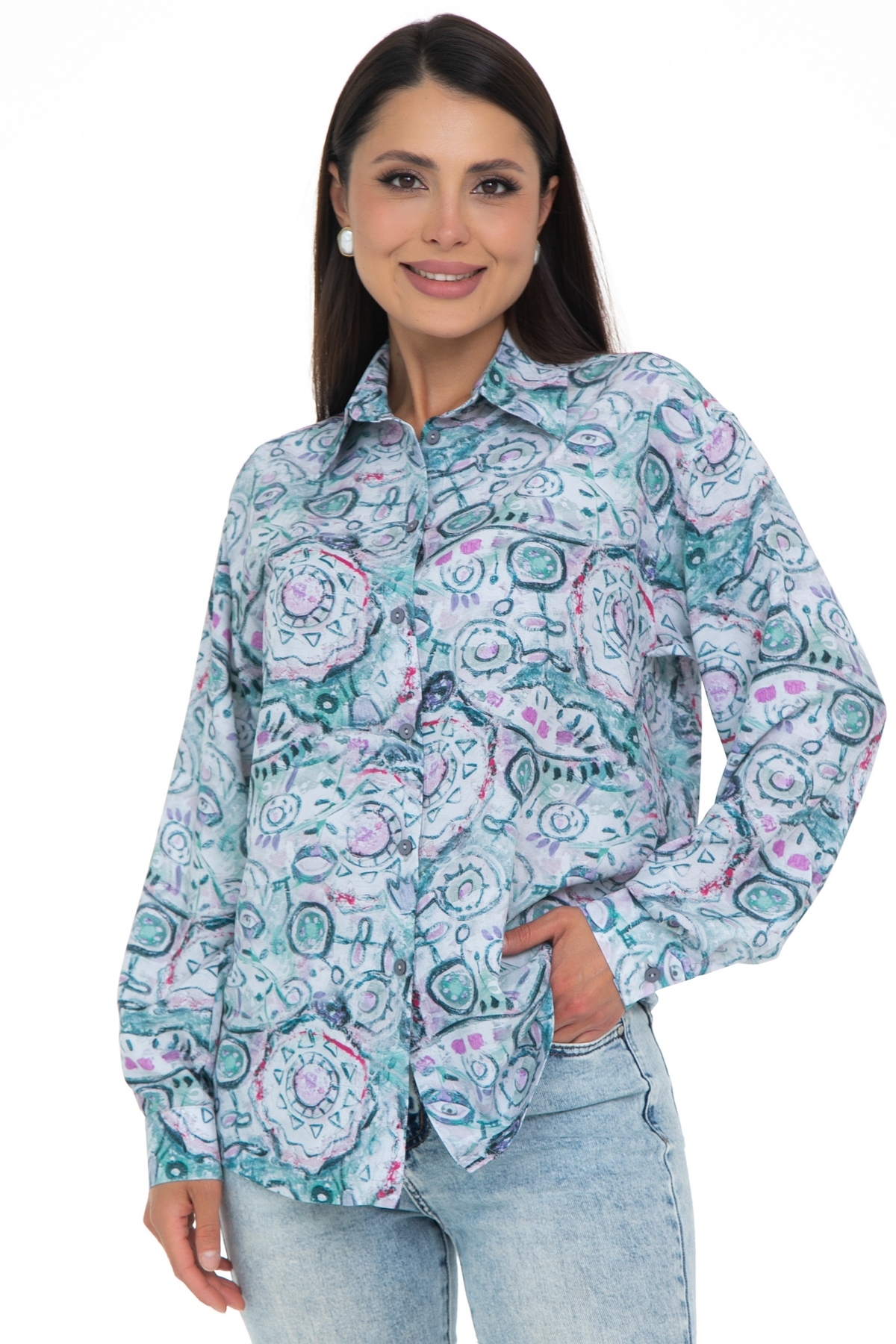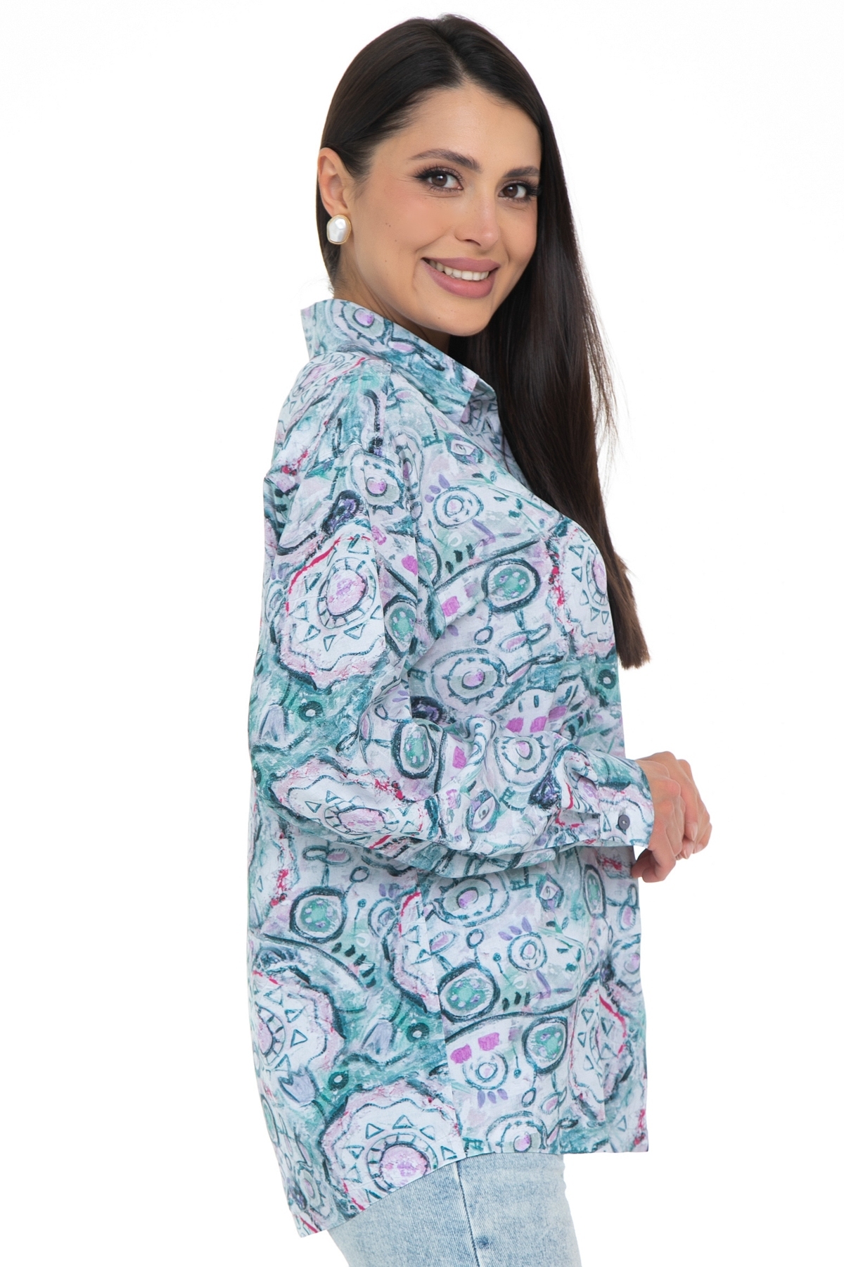 Рубашка удлинённая с принтом