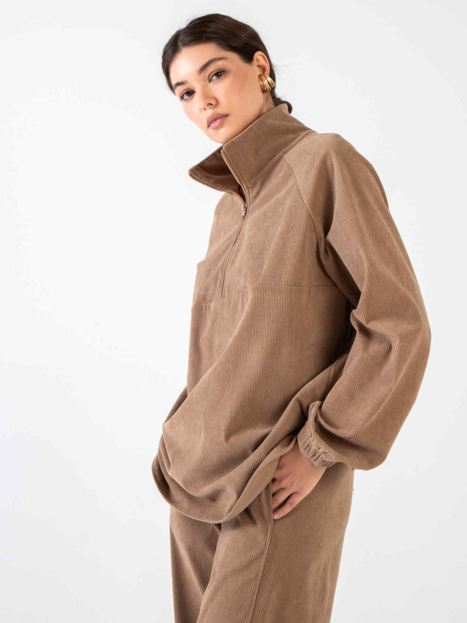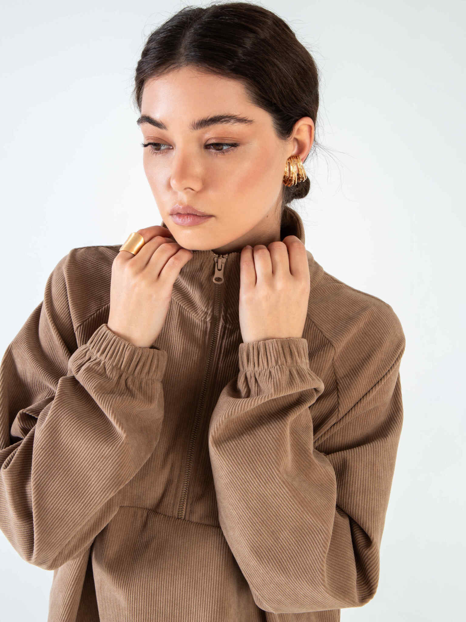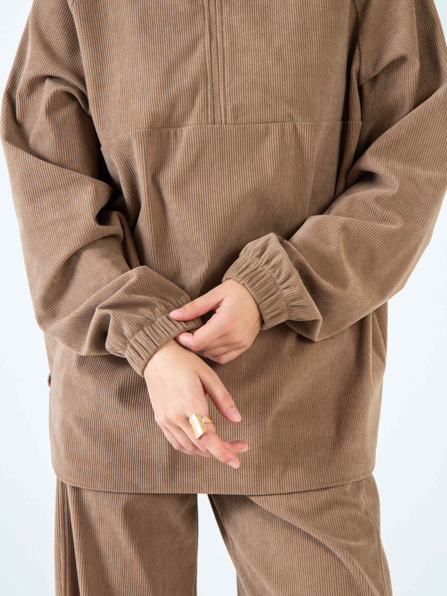 Анорак вельветовый песочного цвета от бренда Kosmos. Модель свободного прямого силуэта, с прямым низом. Длинные рукава посажены на резинку. Анорак дополнен застёжкой на молнию Универсальная модель актуального цвета прекрасно сочетается с базовыми джинсами, юбками и брюками.