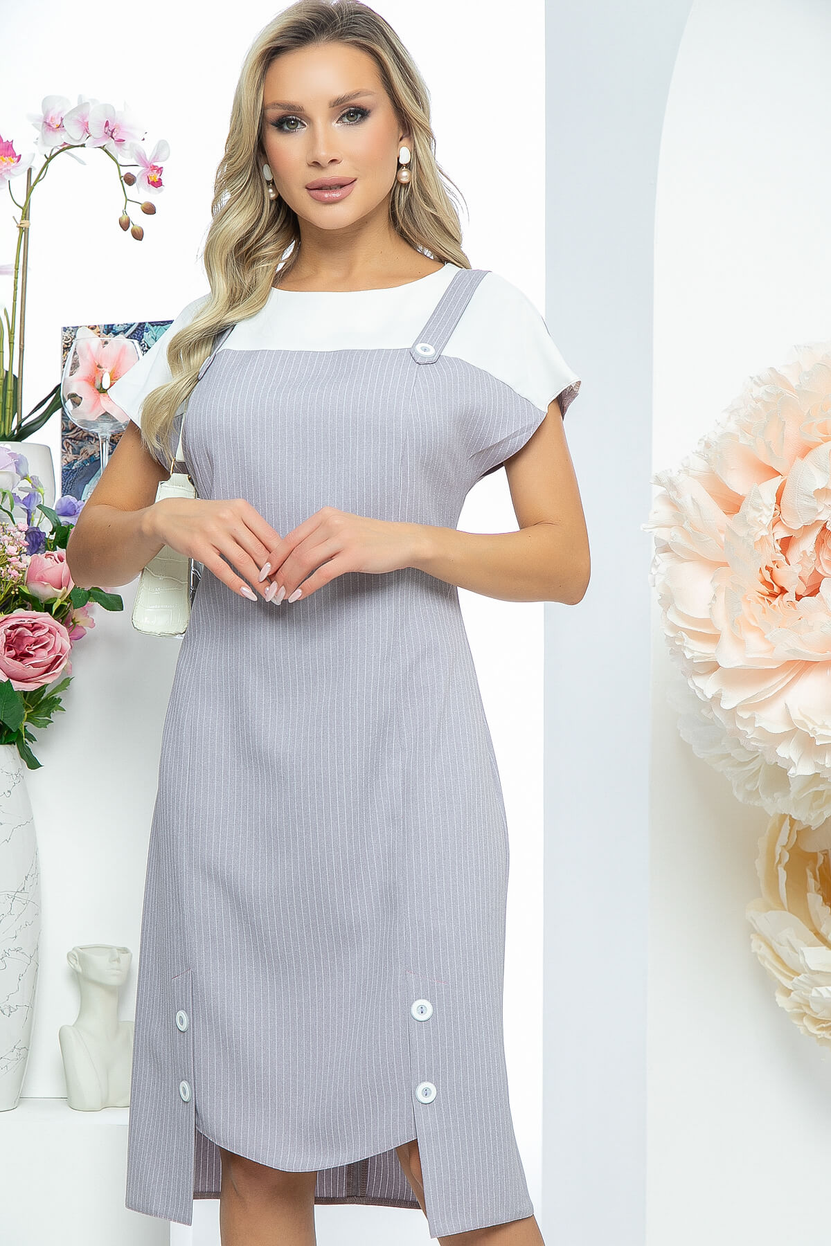 Стильное женское платье от компании Taiga. Модель прямого силуэта, выполнена из костюмного полотна в лиловом цвете с принтом "полоска". Вырез горловины-округлый. Рукав цельнокроеный, короткий. Застёжка-потайная молния. Без карманов. Низ фигурный, по переду декоративные пуговицы. Прекрасный выбор для любого мероприятия. Рекомендована ручная стирка при 30 С. Допуск отклонения длины при массовом производстве 1-3 см является нормой.